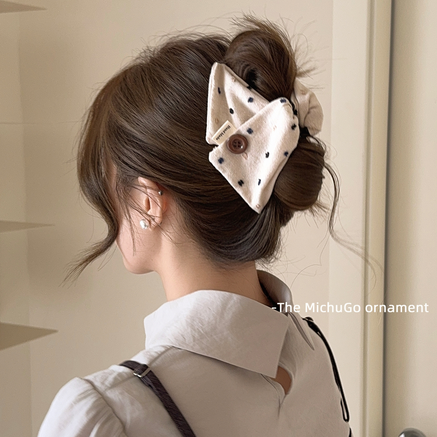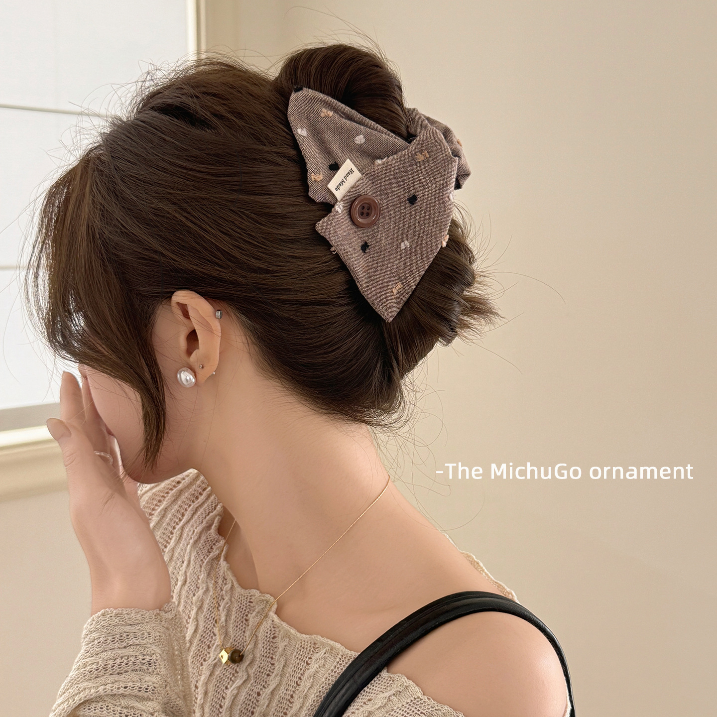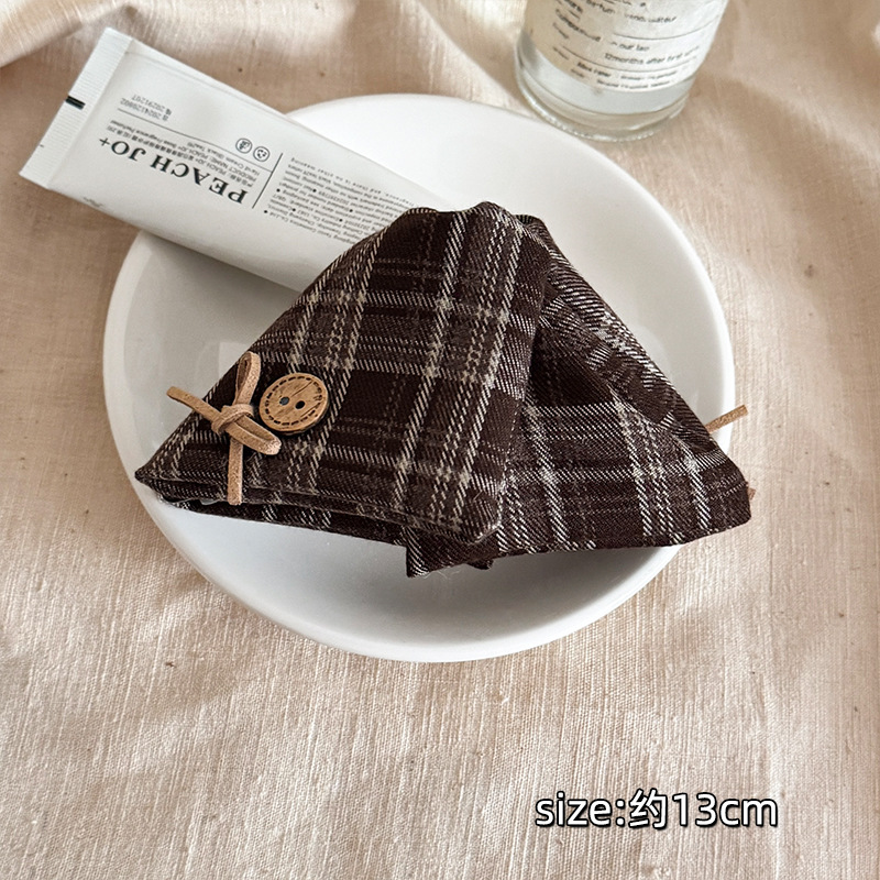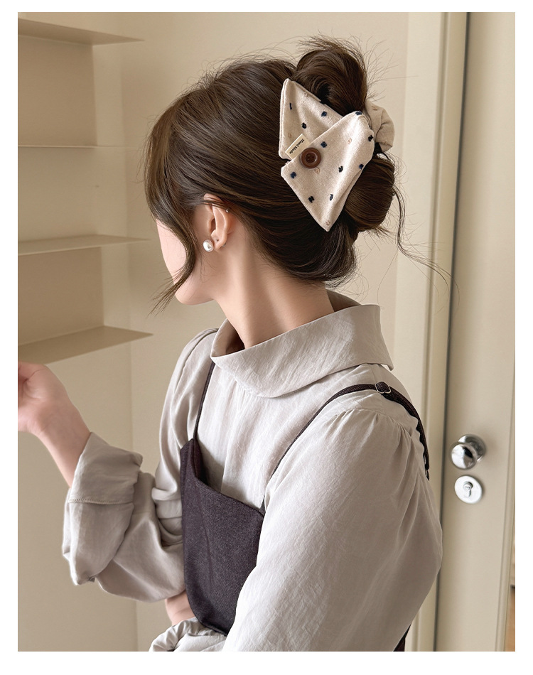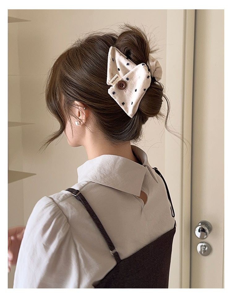 韩系布艺纽扣三角发夹女后脑勺盘发抓夹网红新款鲨鱼夹子发卡发饰
