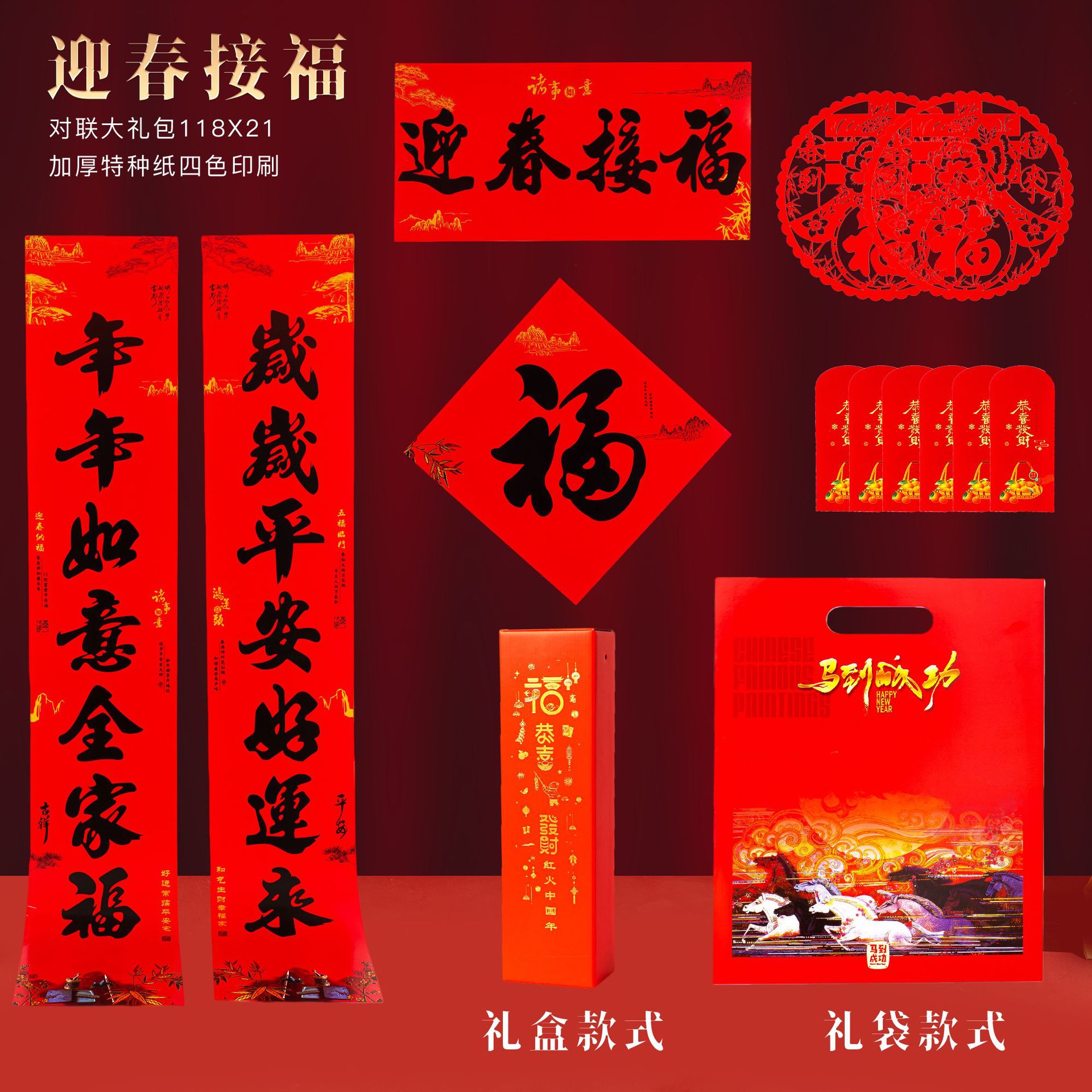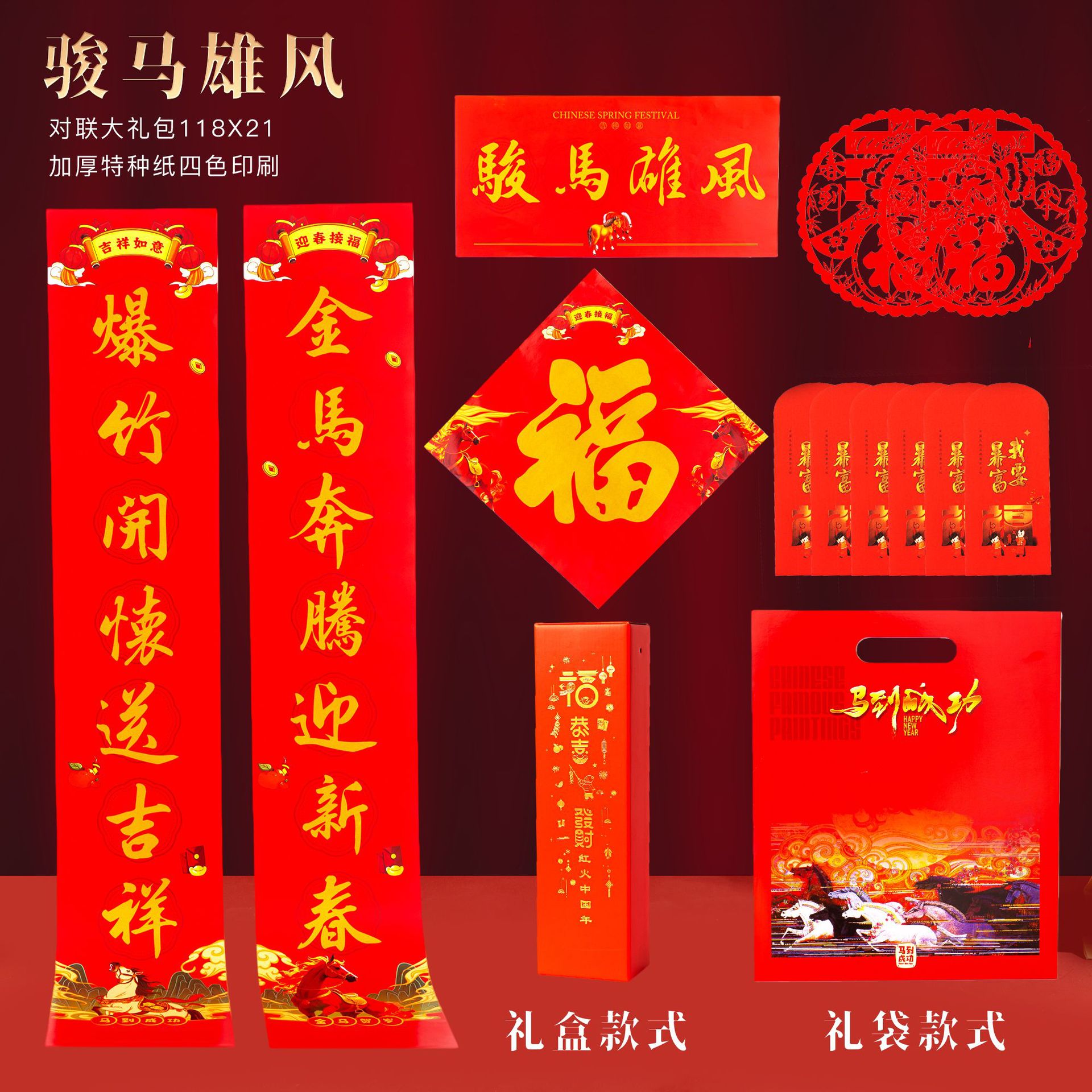2026马年春节广告对联定制春联大礼包专版现货套装批发定做印logo