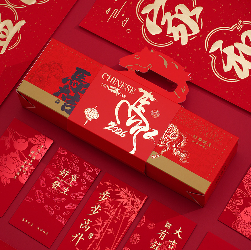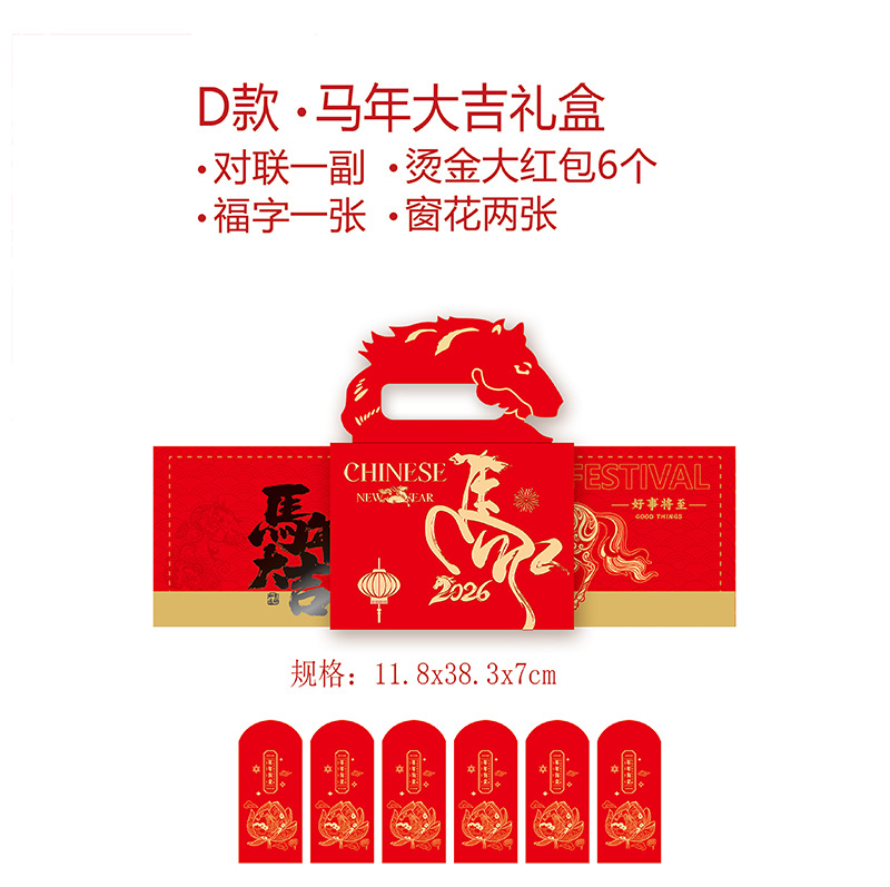 2026广告对联定制马年春联套装大礼包高档礼盒加印烫金印logo福字