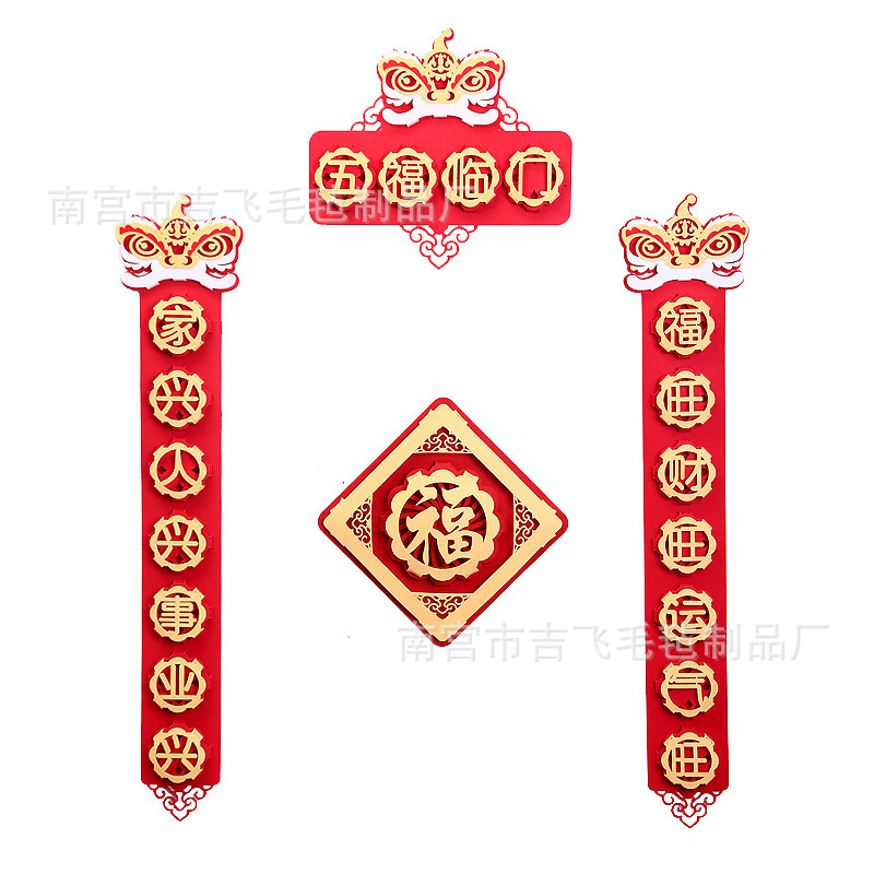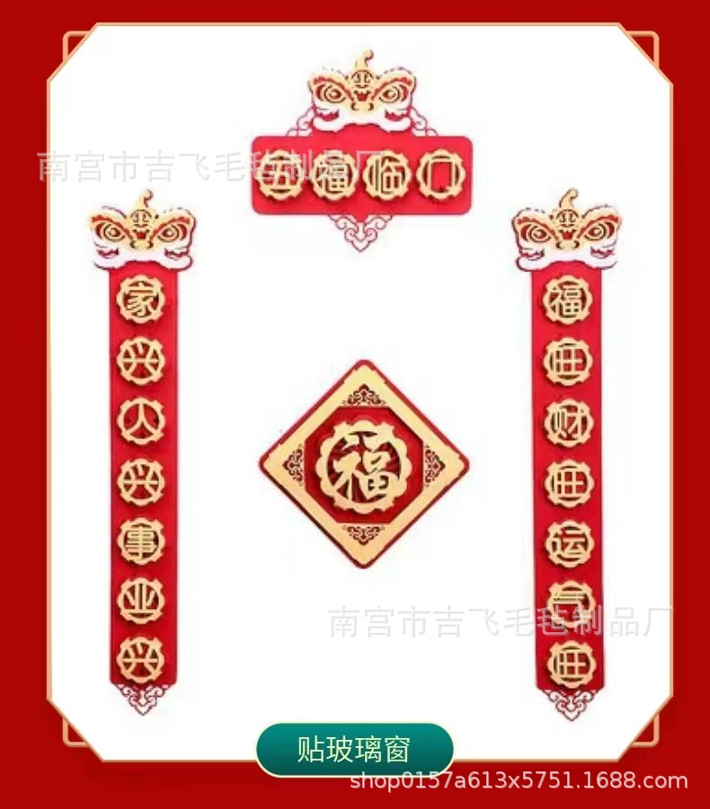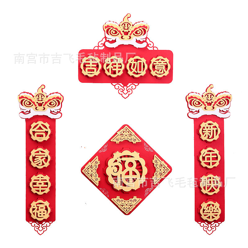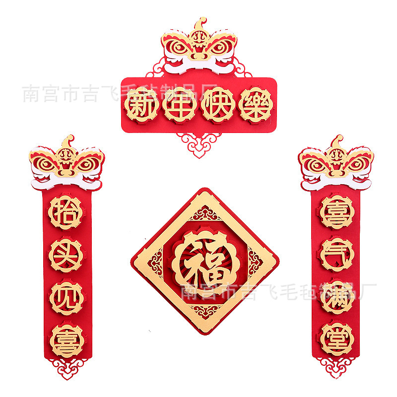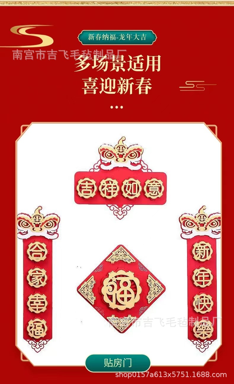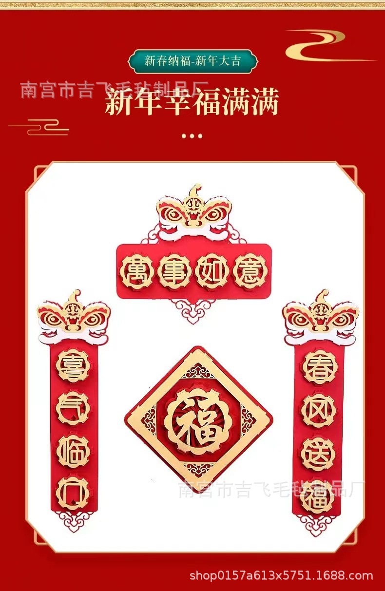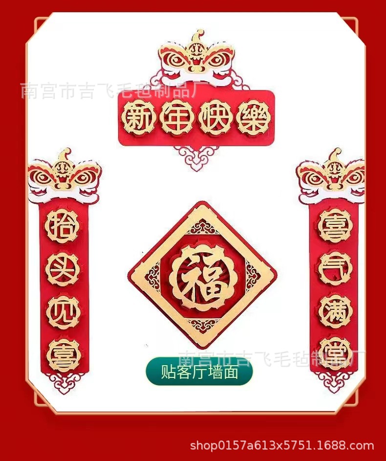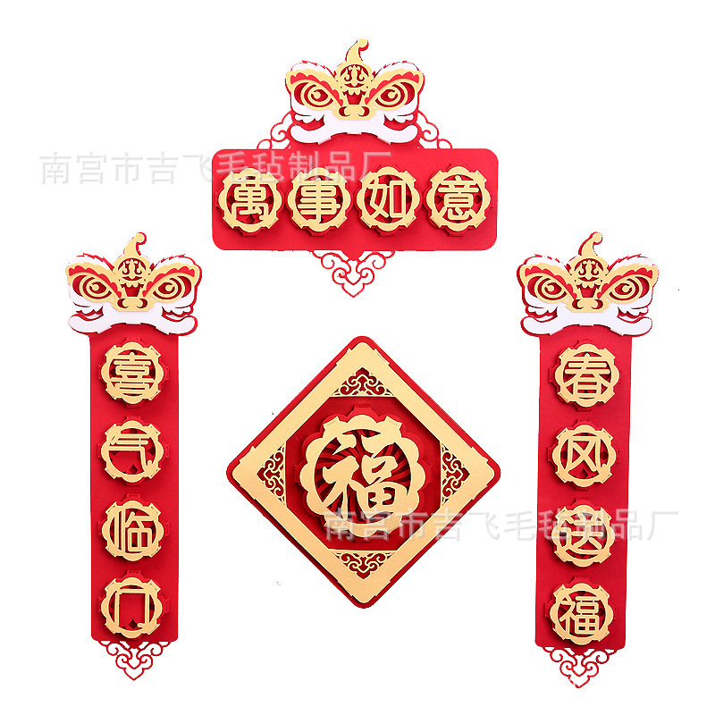 新品毛毡春联对联DIY3D立体2026新年创意醒狮创意春联