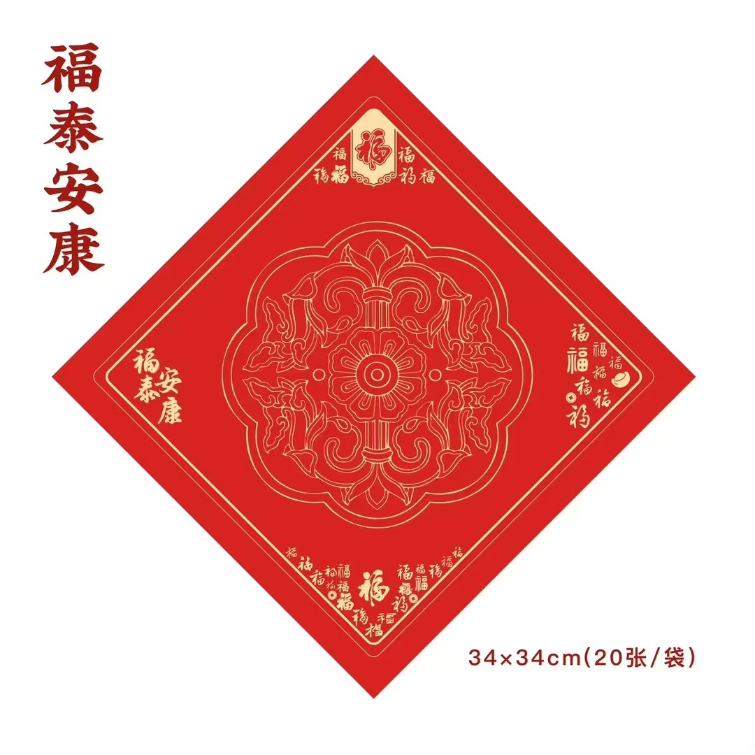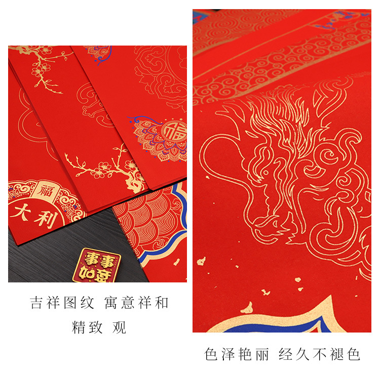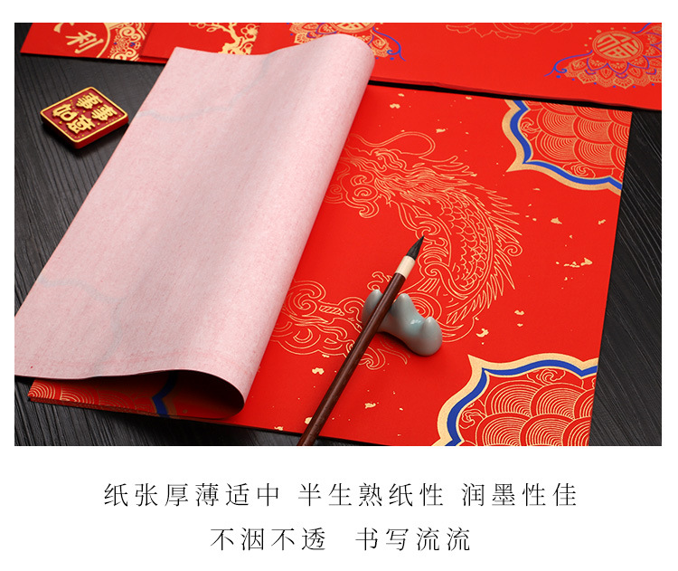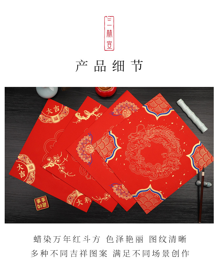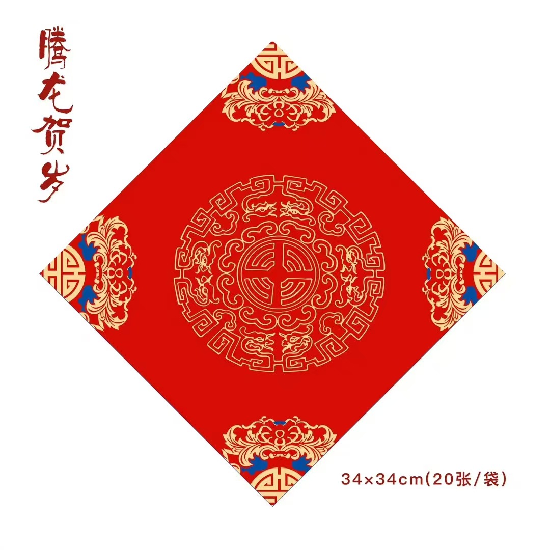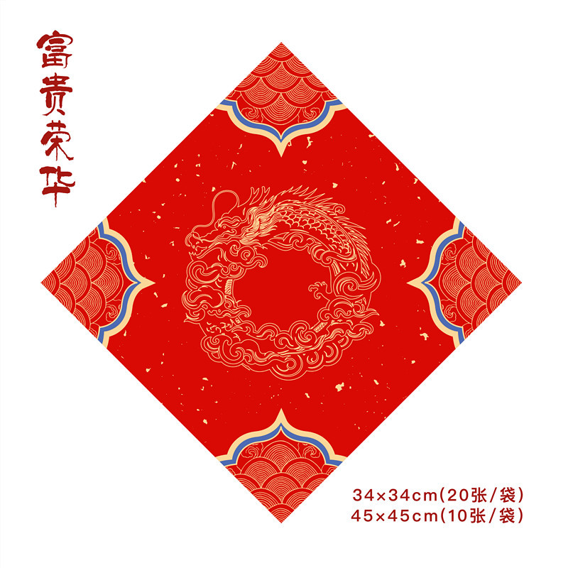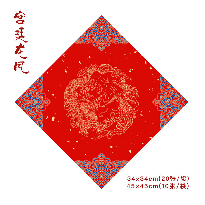 蜡染斗方宣纸龙凤对联福字宫廷春联半生熟手写空白万年红蜡染批发