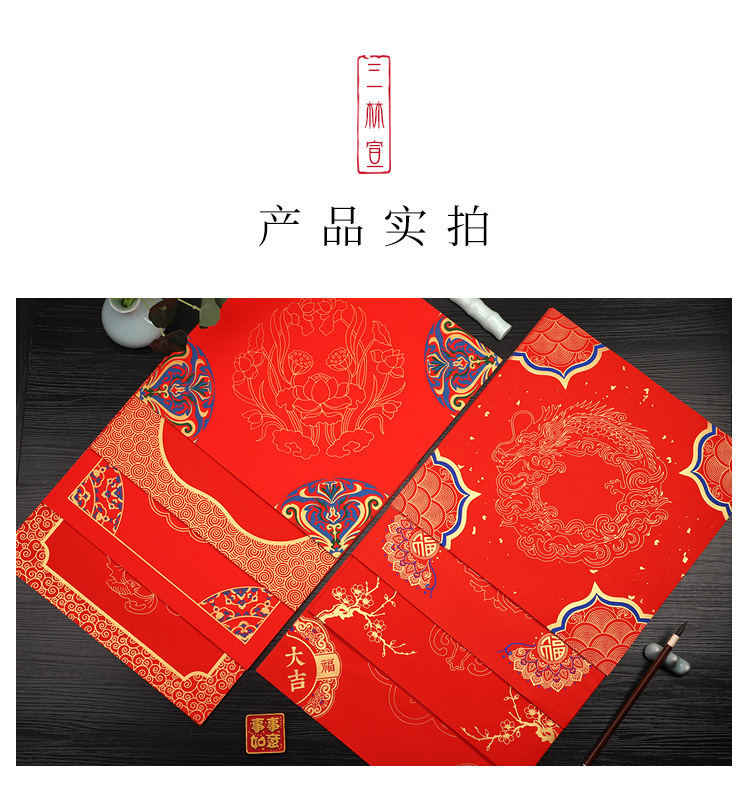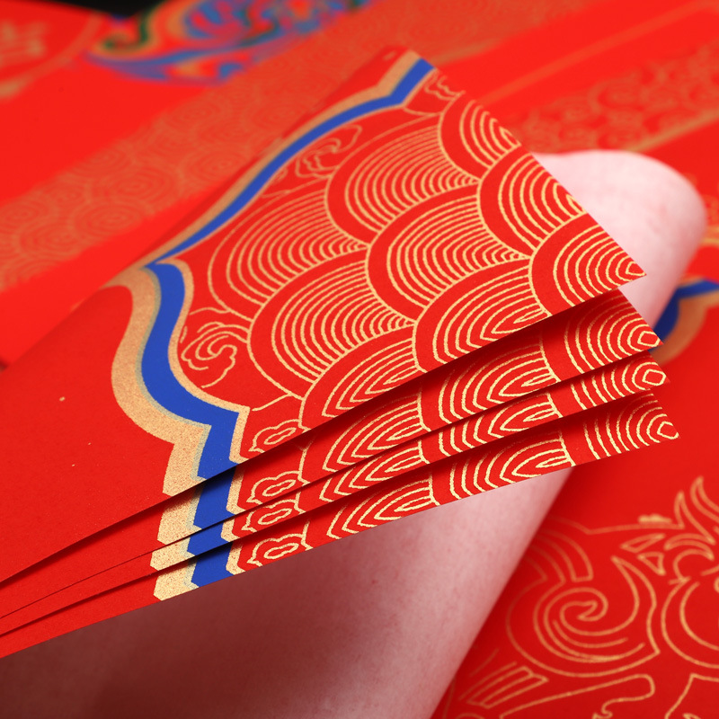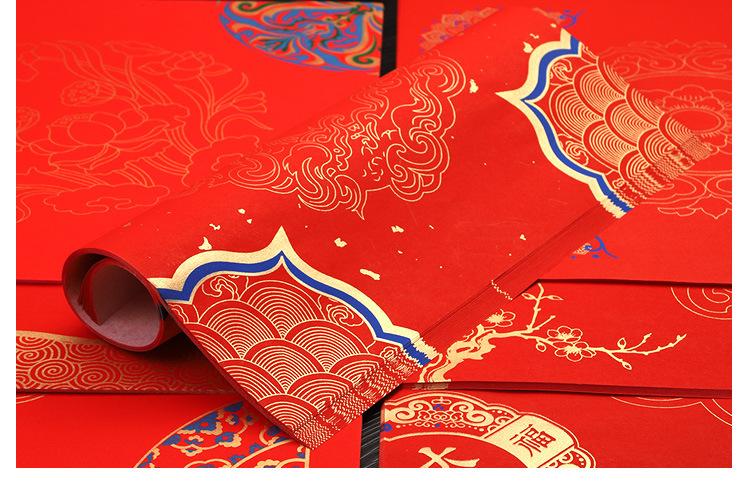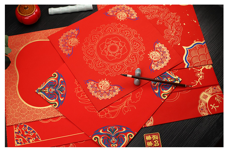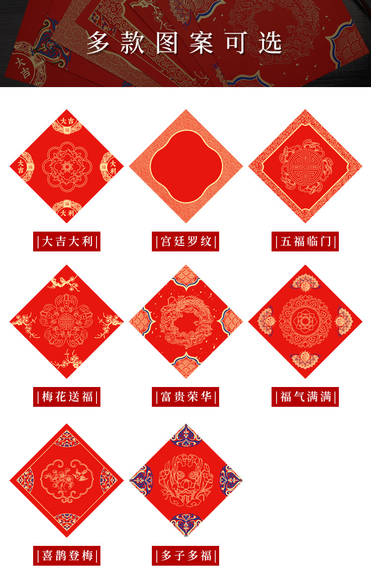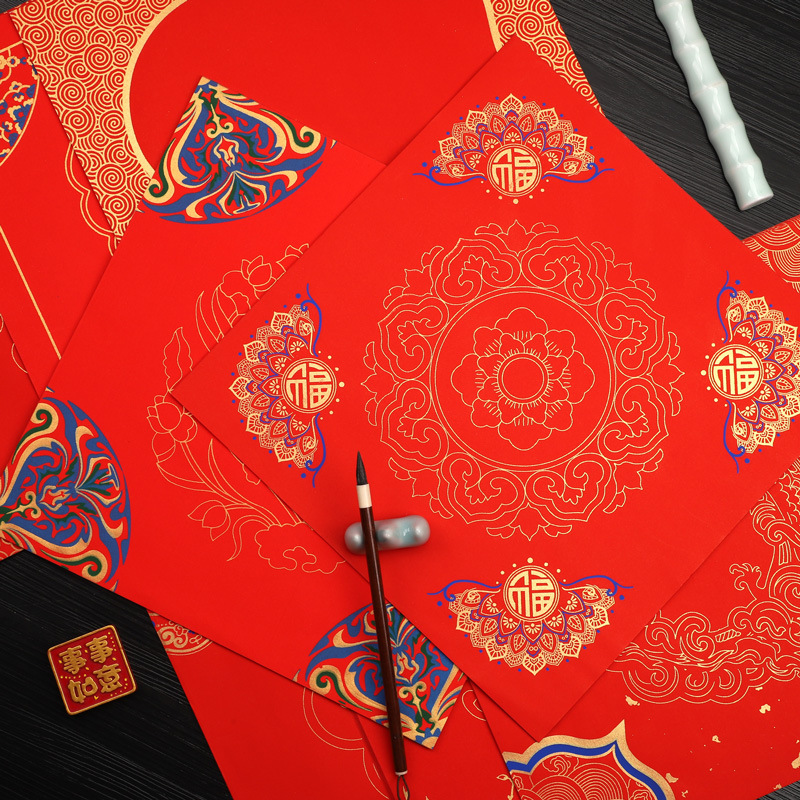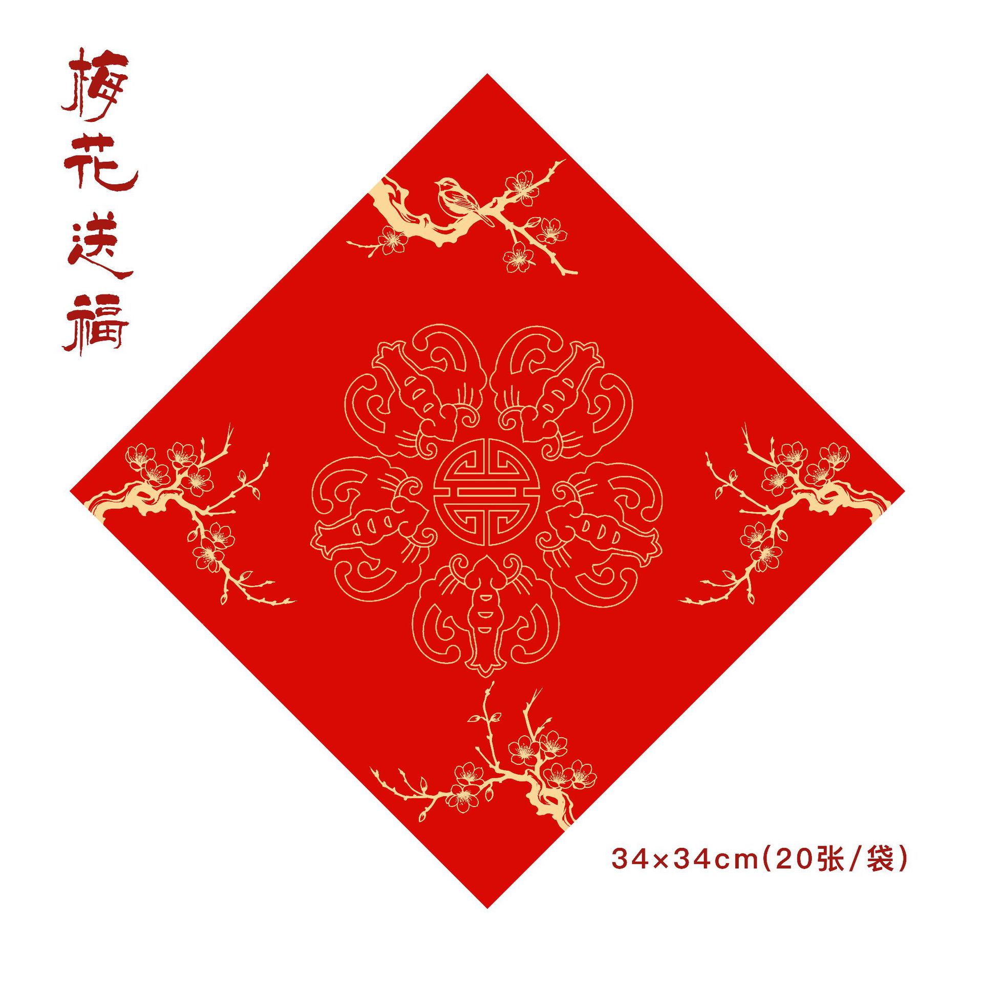 蜡染斗方宣纸龙凤对联福字宫廷春联半生熟手写空白万年红蜡染批发