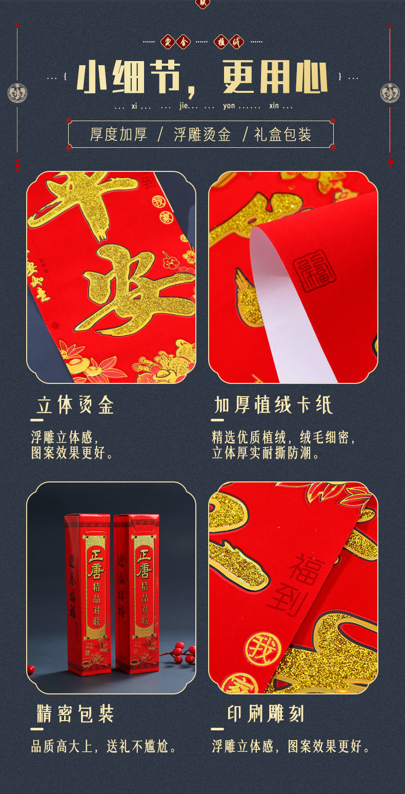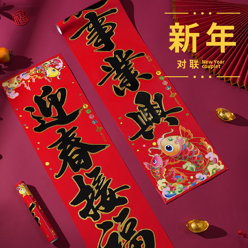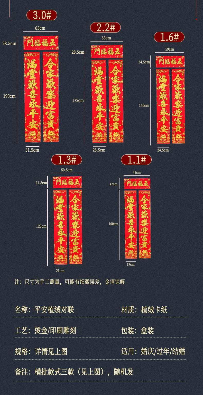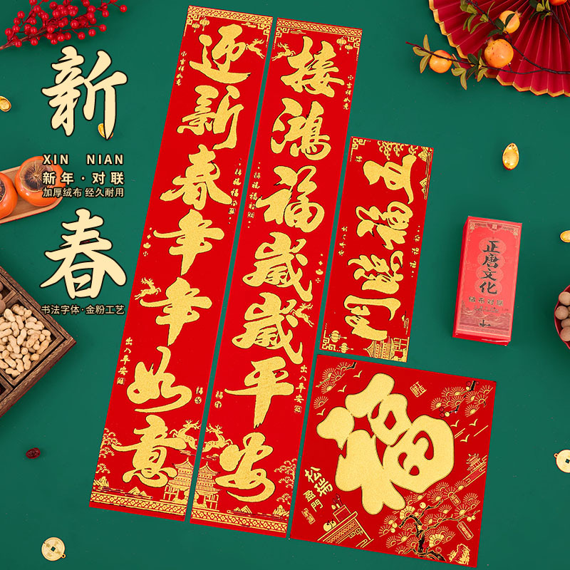 正唐新款植绒对联2026年马年加厚铜板纸门贴新年过年春节绒布春联