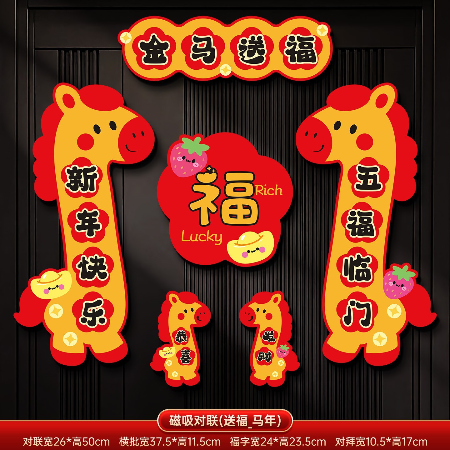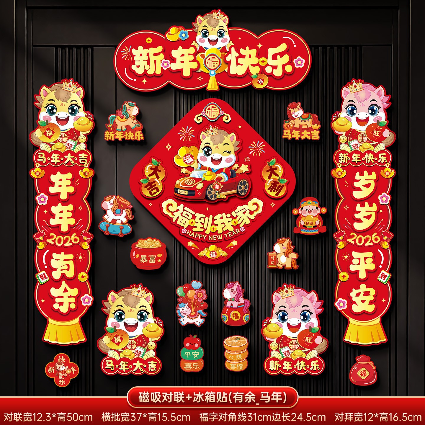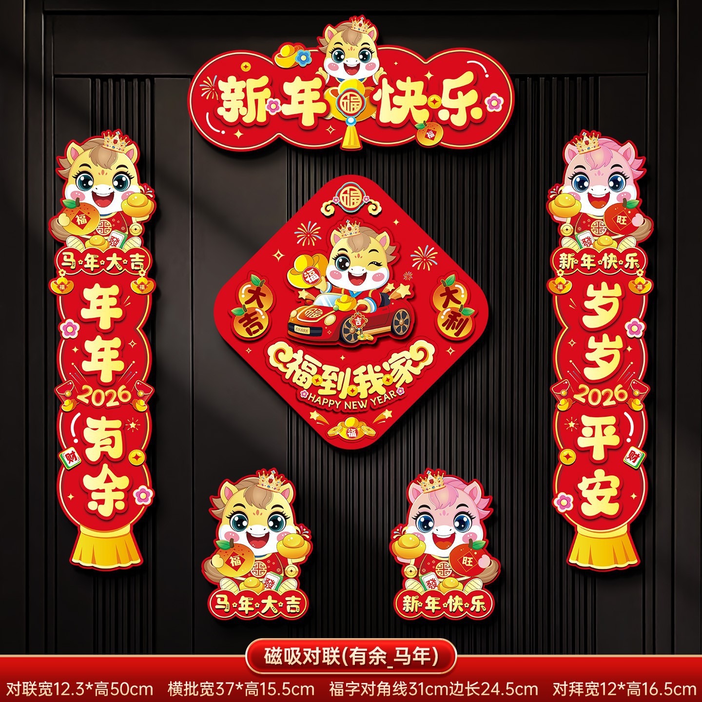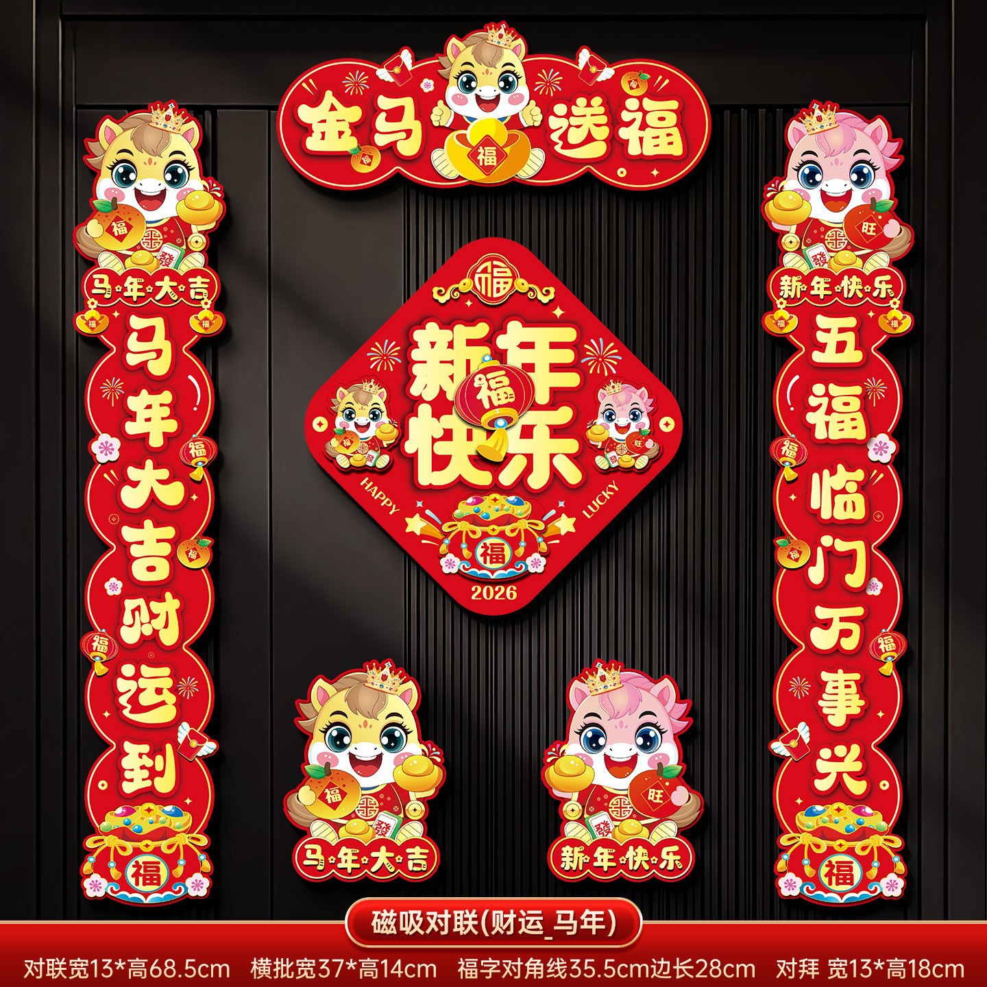 马年磁吸对联春联批货2026新款过年春节福字门贴新年装饰年货布置
