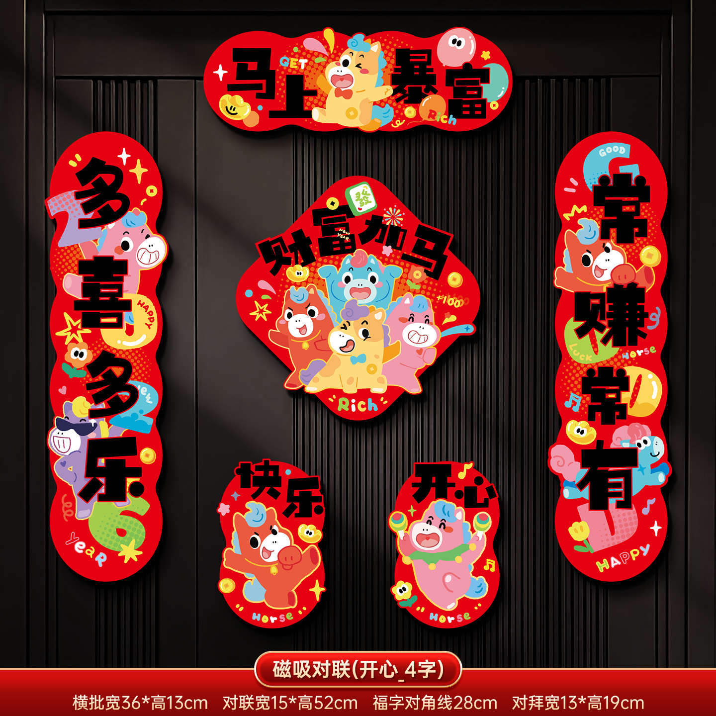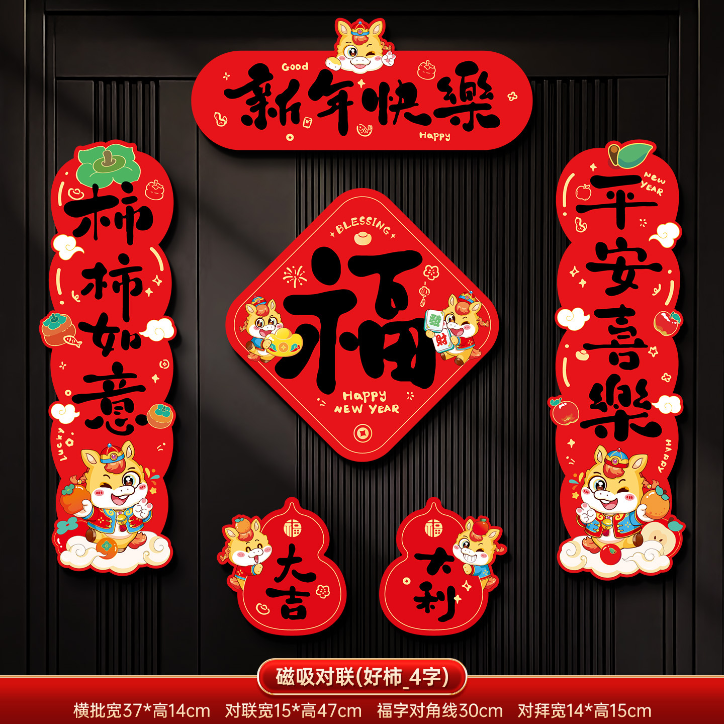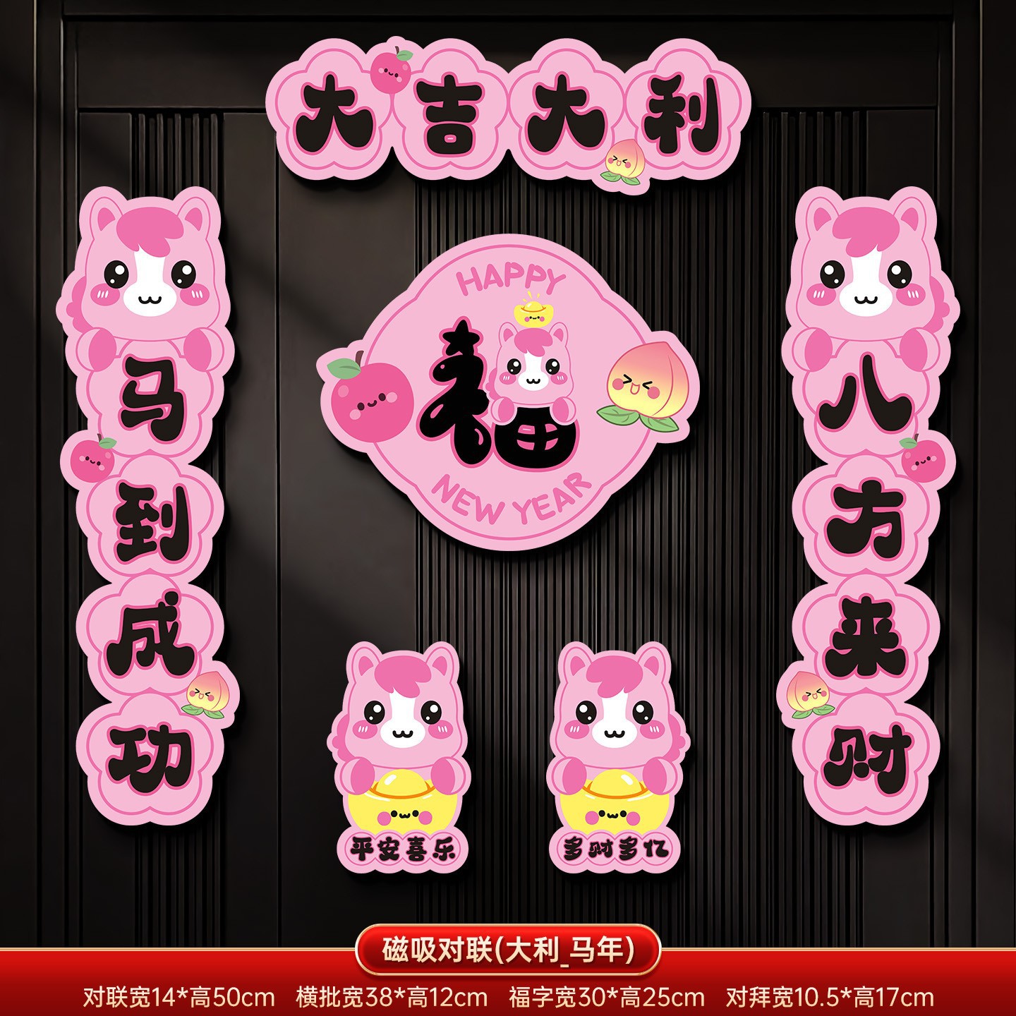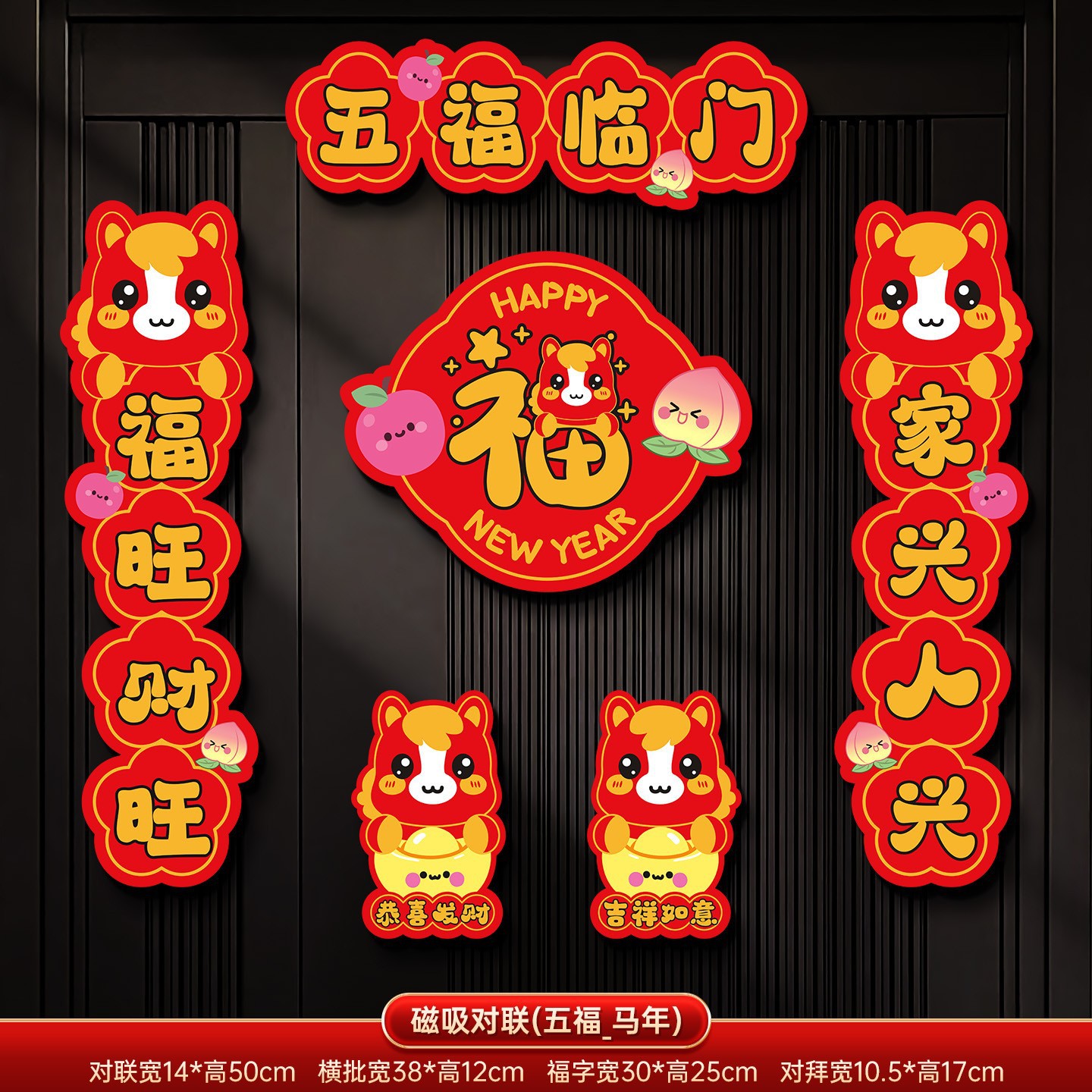 马年磁吸对联春联批货2026新款过年春节福字门贴新年装饰年货布置