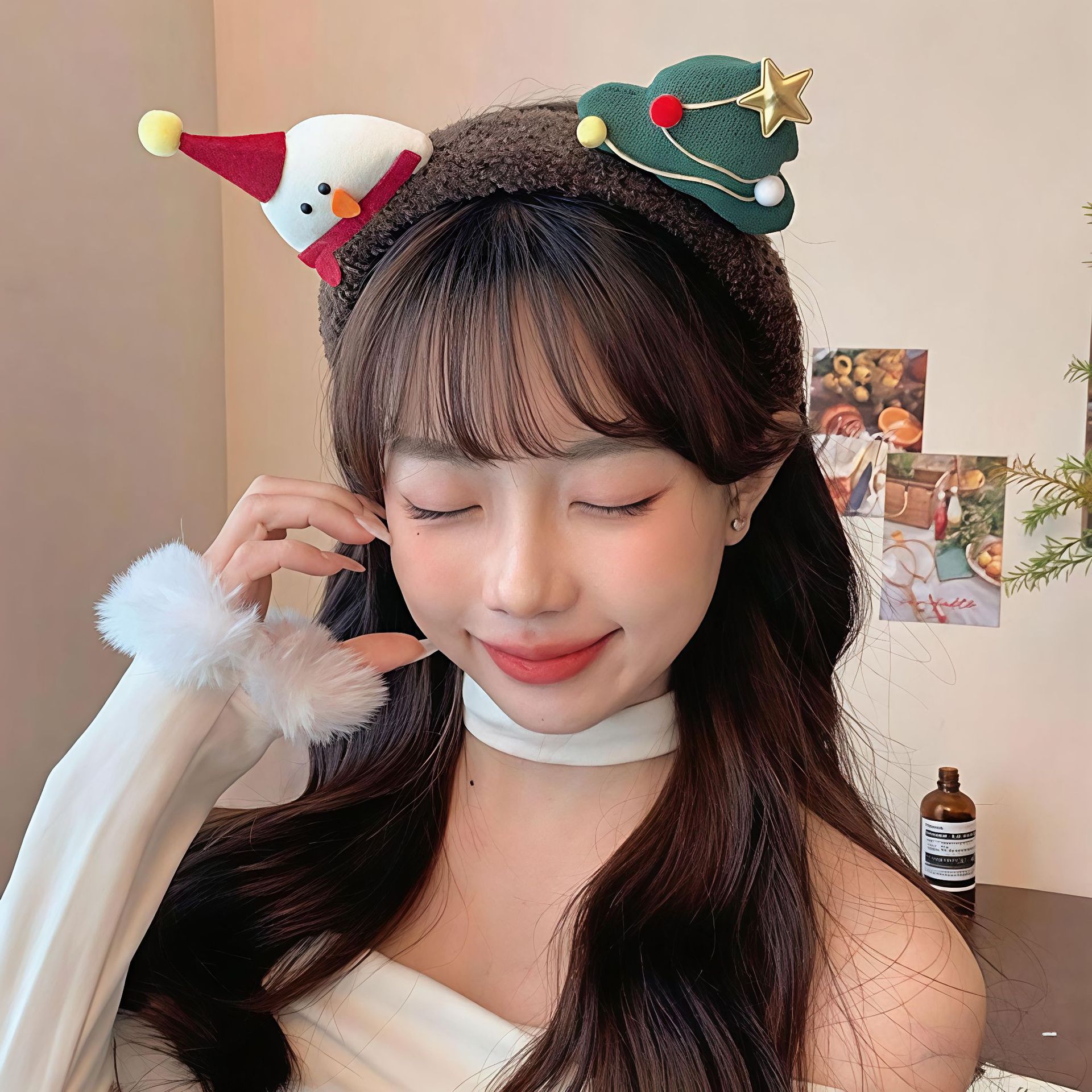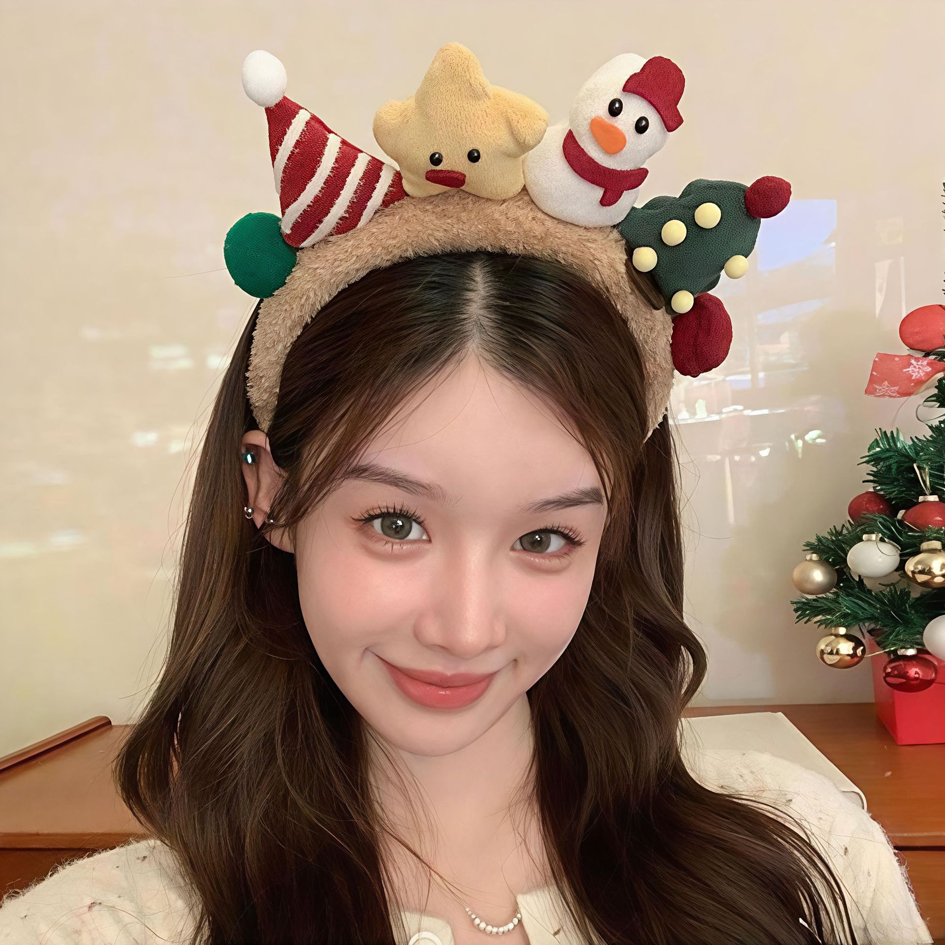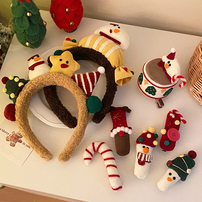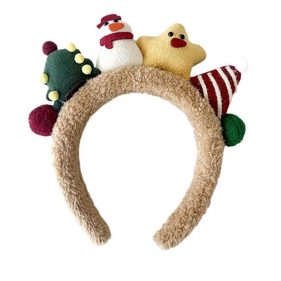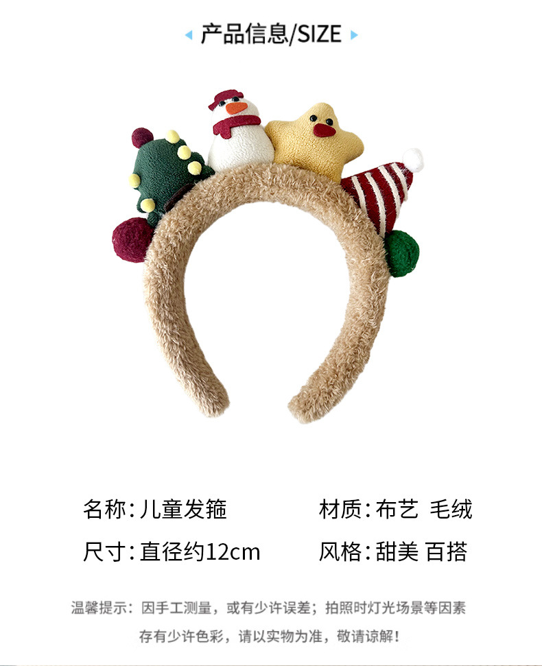 毛绒星星雪人发箍头饰女可爱圣诞树糖果麋鹿头箍发饰洗脸化妆发卡