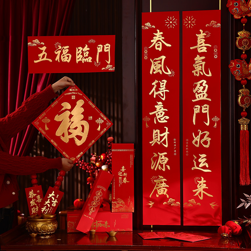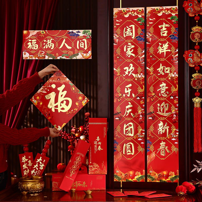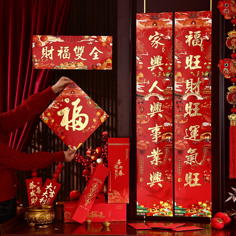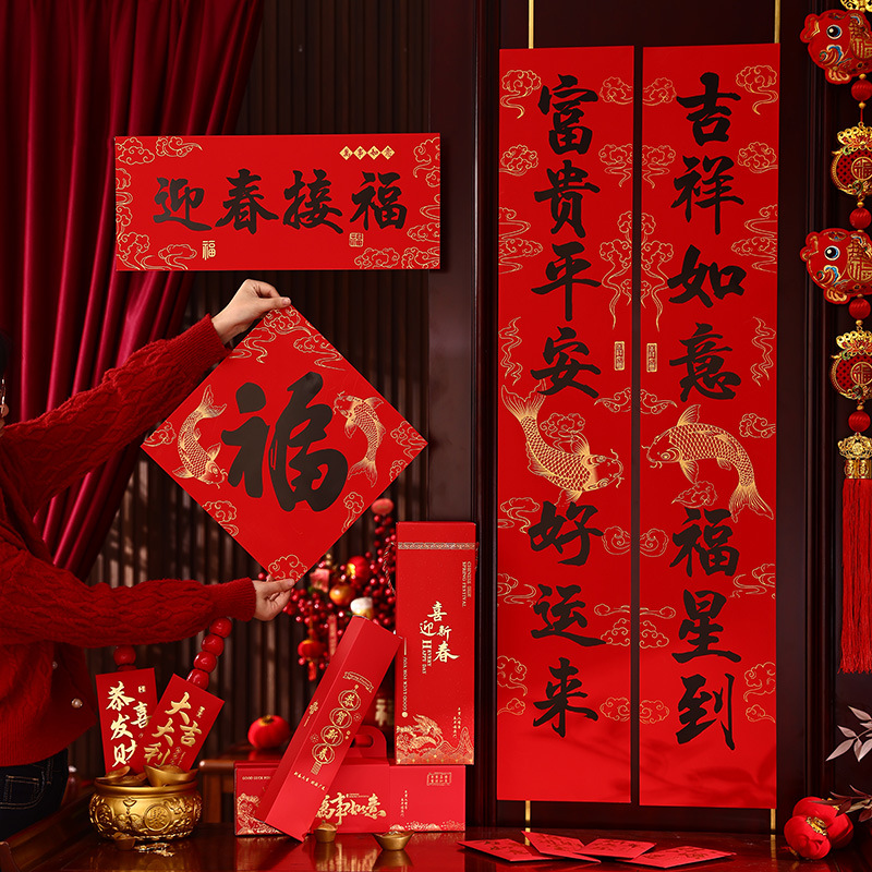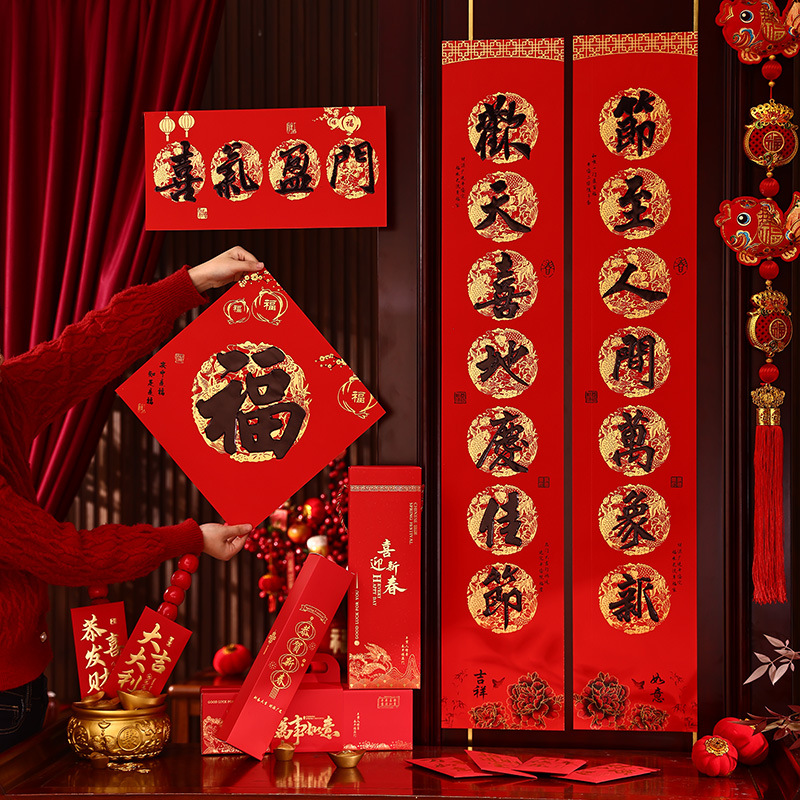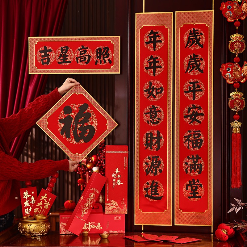 2026马年广告对联定制礼盒高端植绒烫金大礼包现货印logo春联批发