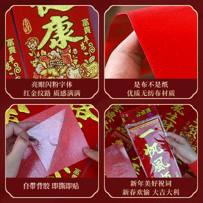 迷你小对联2026新年春节门头装饰绒布烫金自带胶四字挥春出入平安
