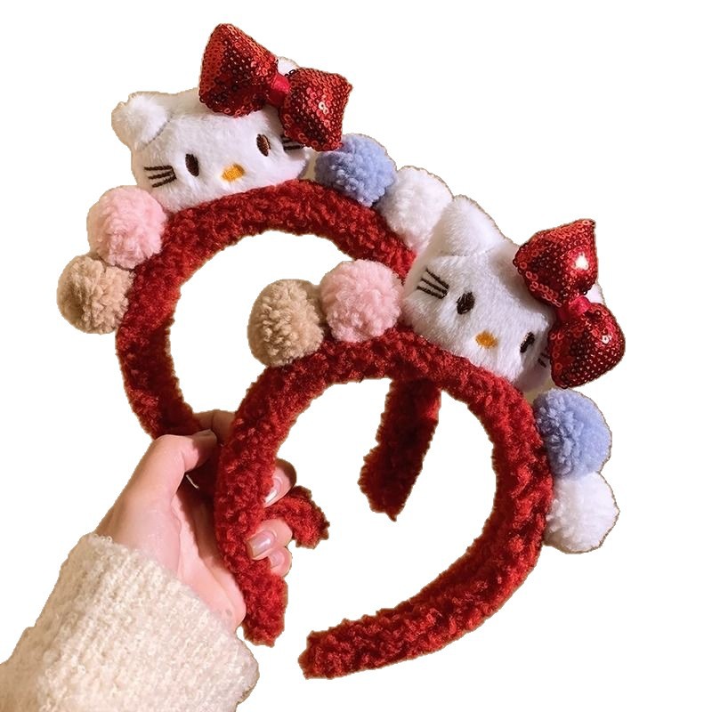 卡通可爱红色kitty猫洗脸发箍女发卡毛绒头箍发饰2025新年发箍