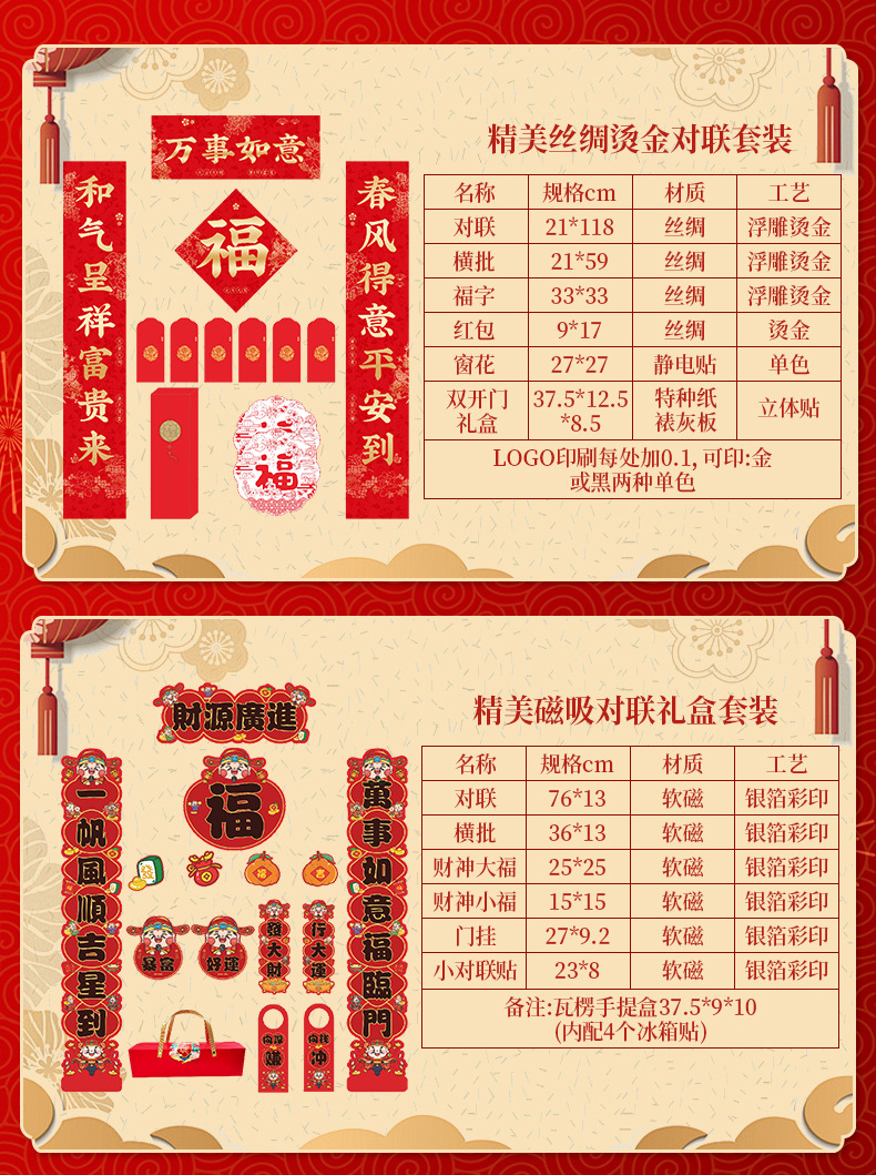 2026新年烫金对联套装春节新款创意年货春联大礼包礼盒装印制LOGO