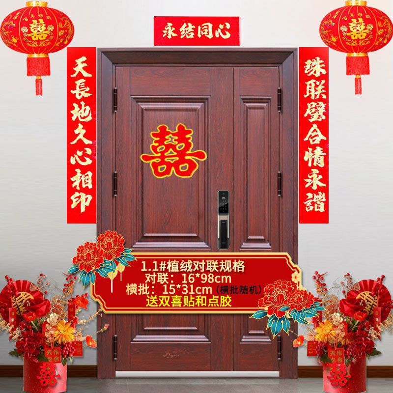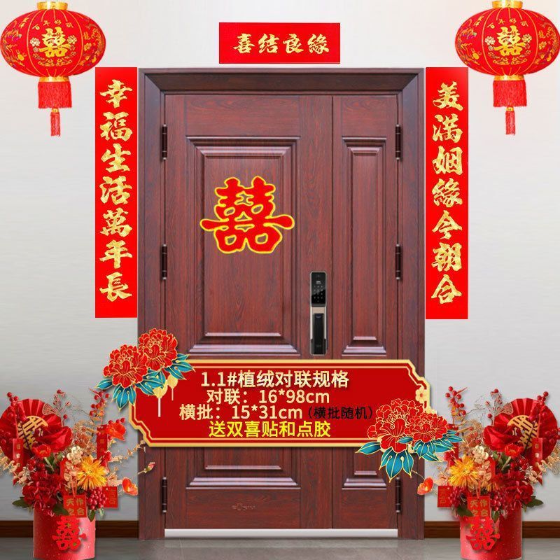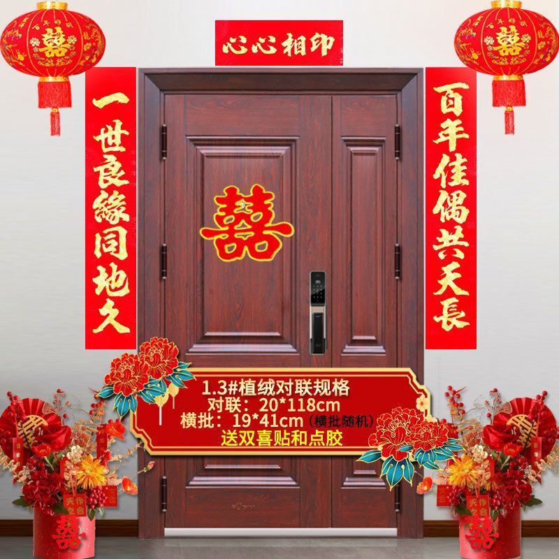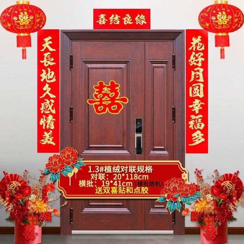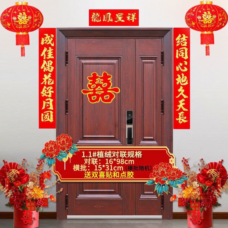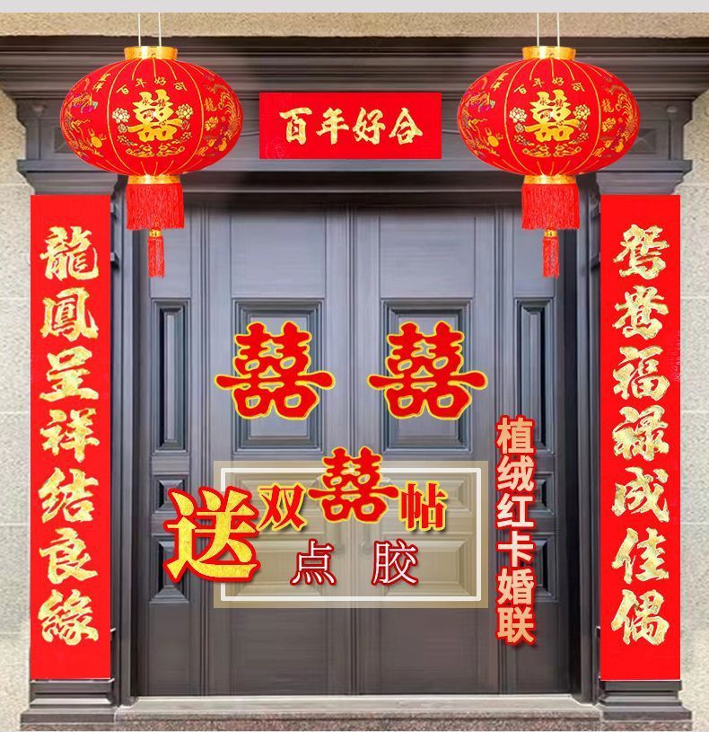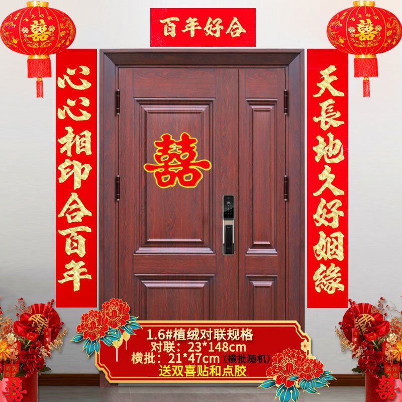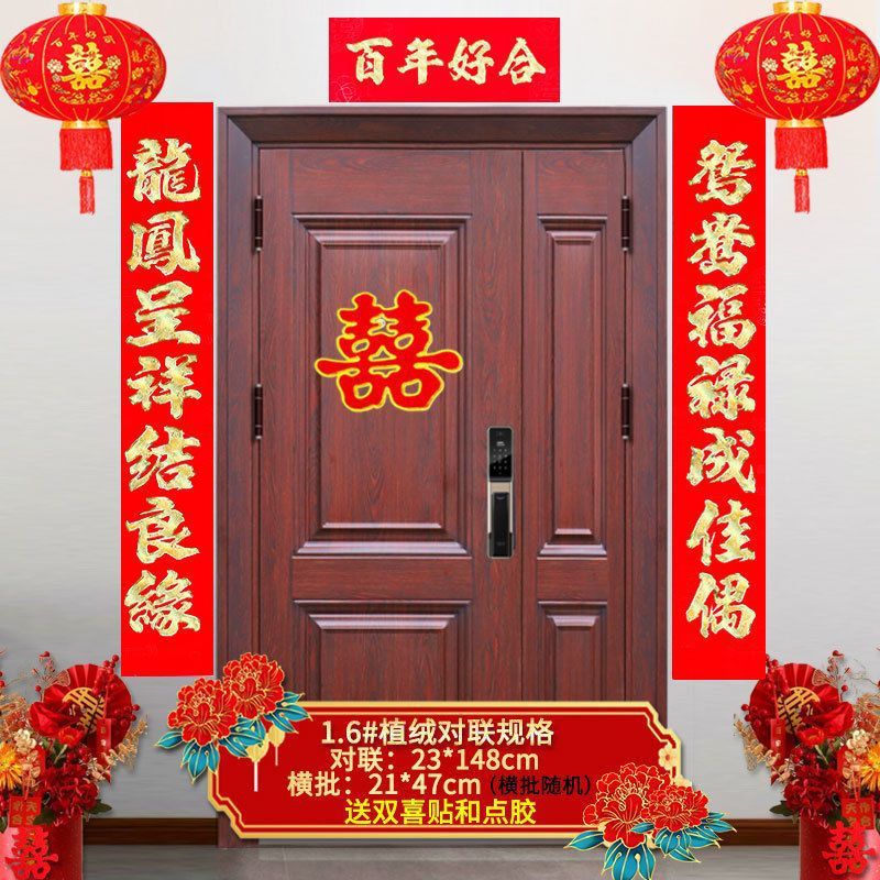 植绒结婚对联烫金喜字男方嫁女农村大门口喜联房间新婚房婚庆用品
