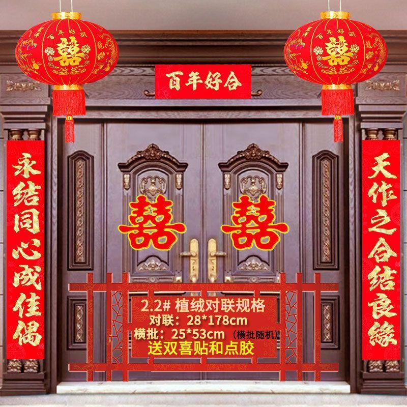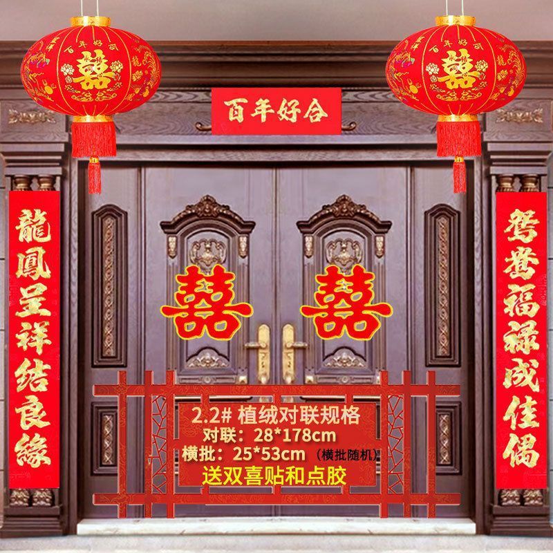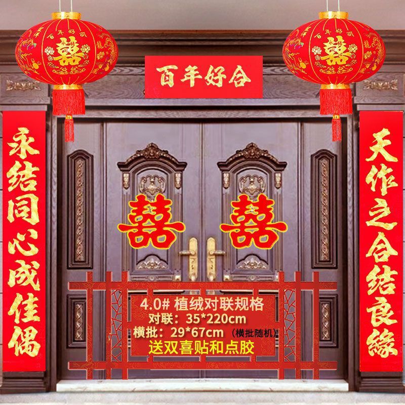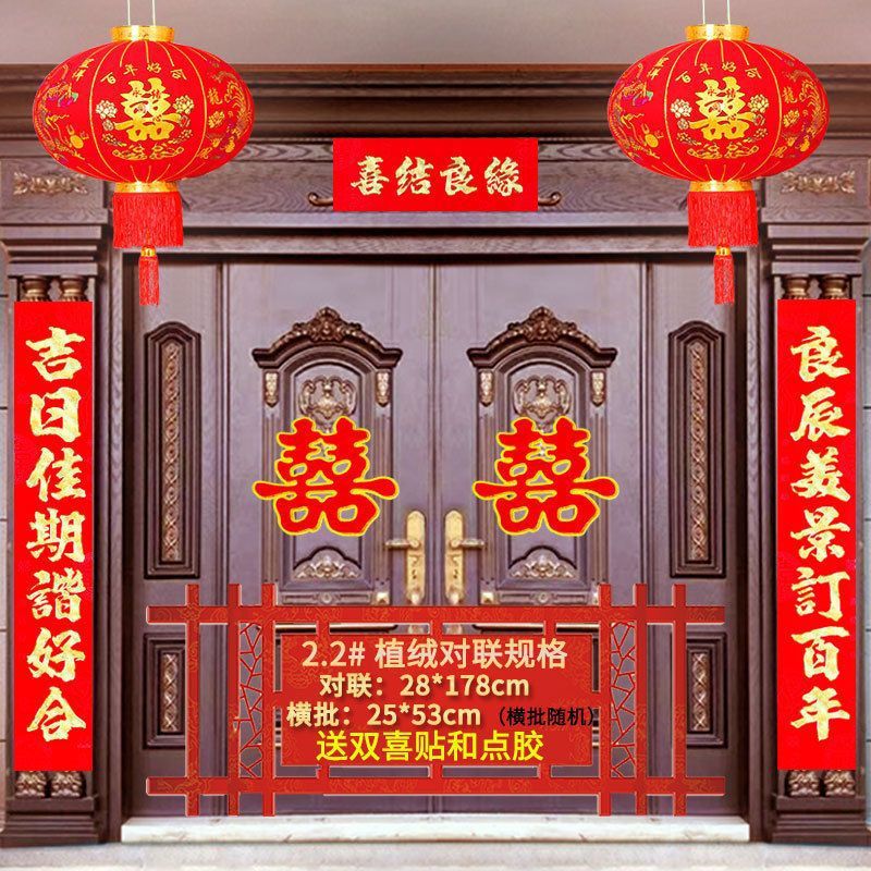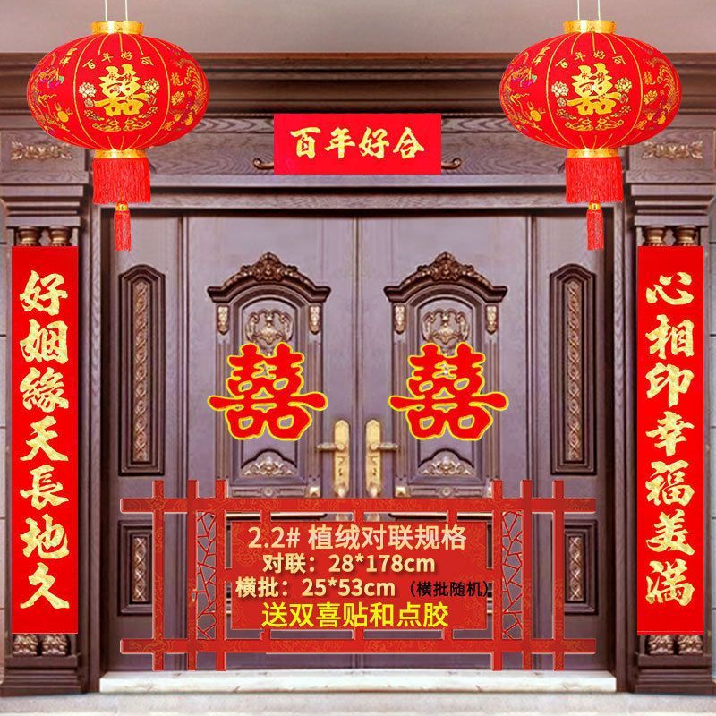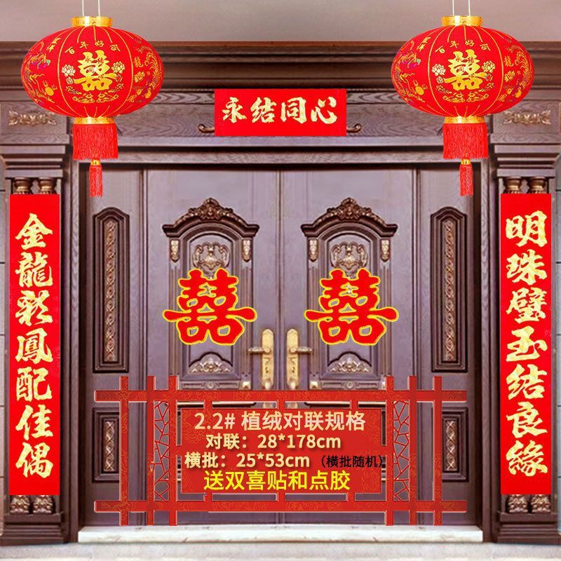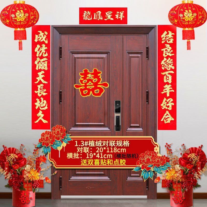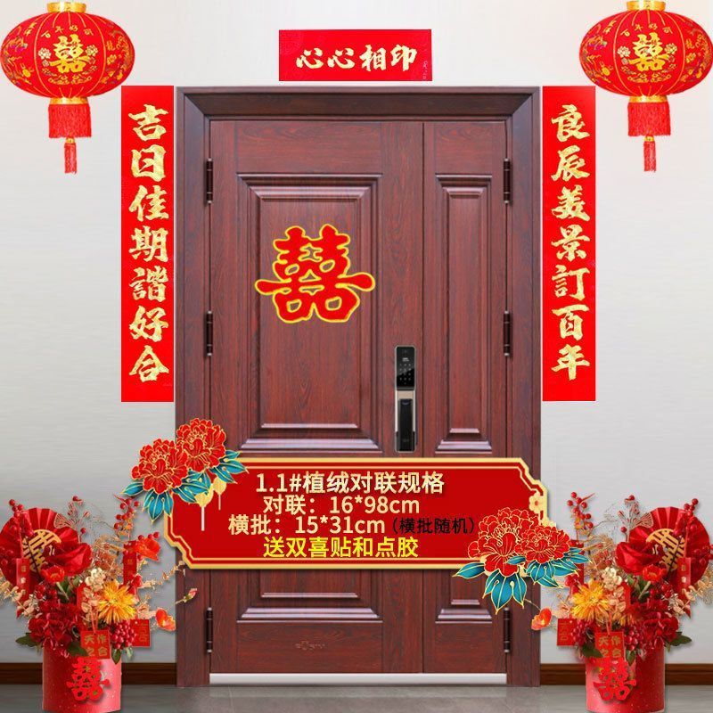 植绒结婚对联烫金喜字男方嫁女农村大门口喜联房间新婚房婚庆用品