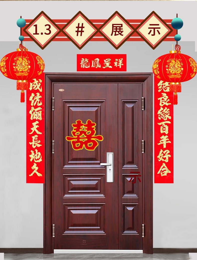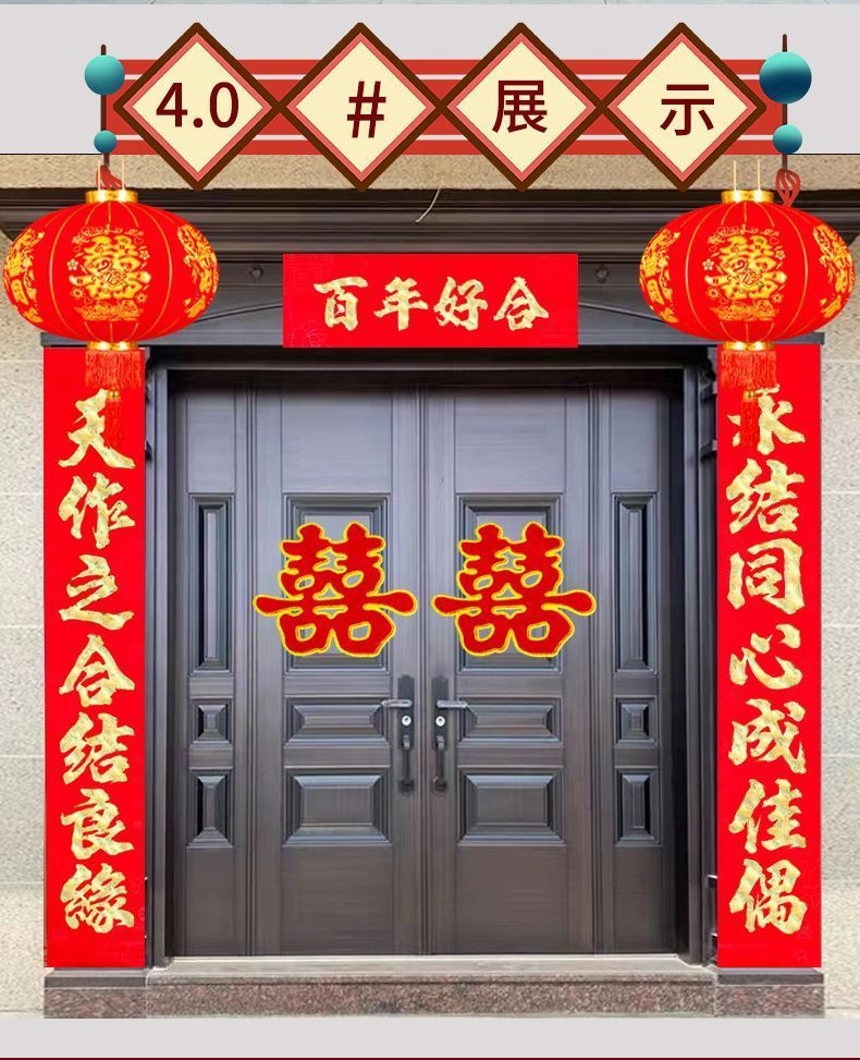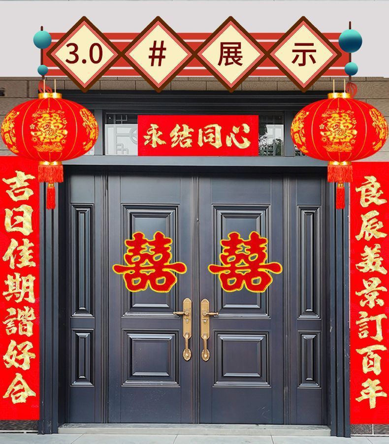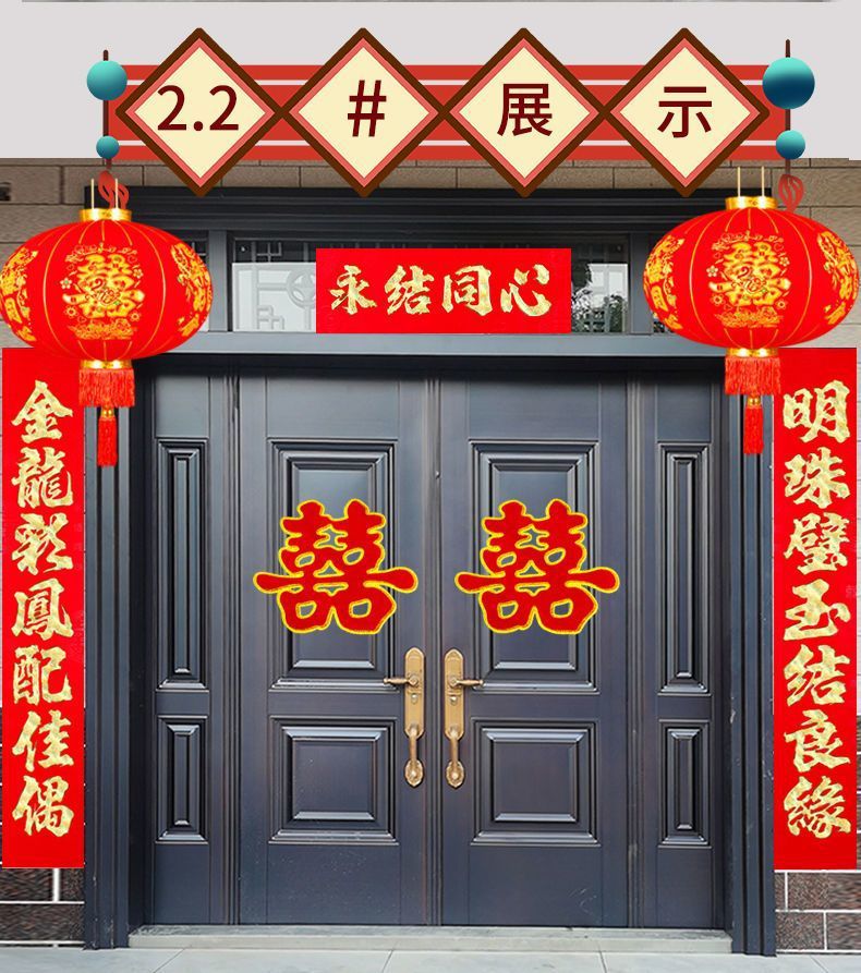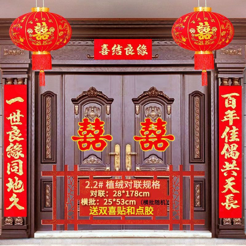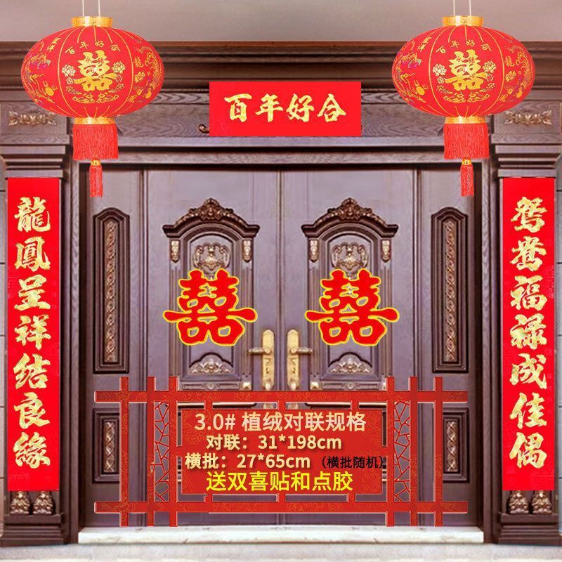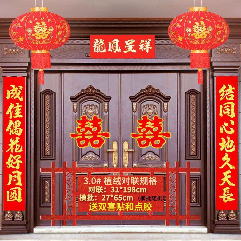 植绒结婚对联烫金喜字男方嫁女农村大门口喜联房间新婚房婚庆用品