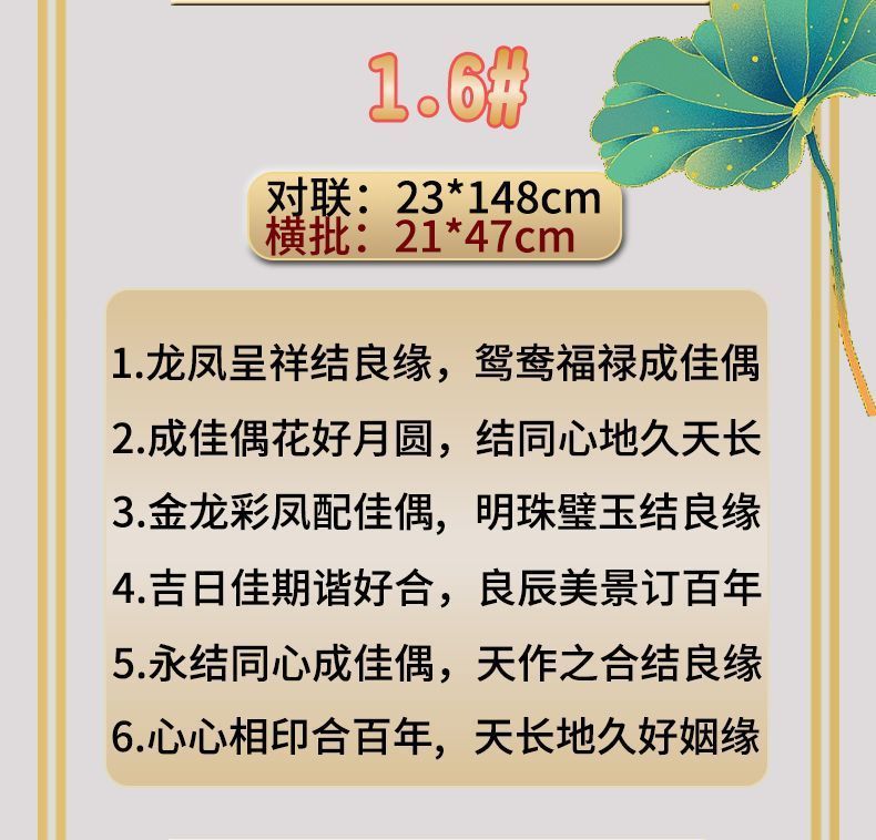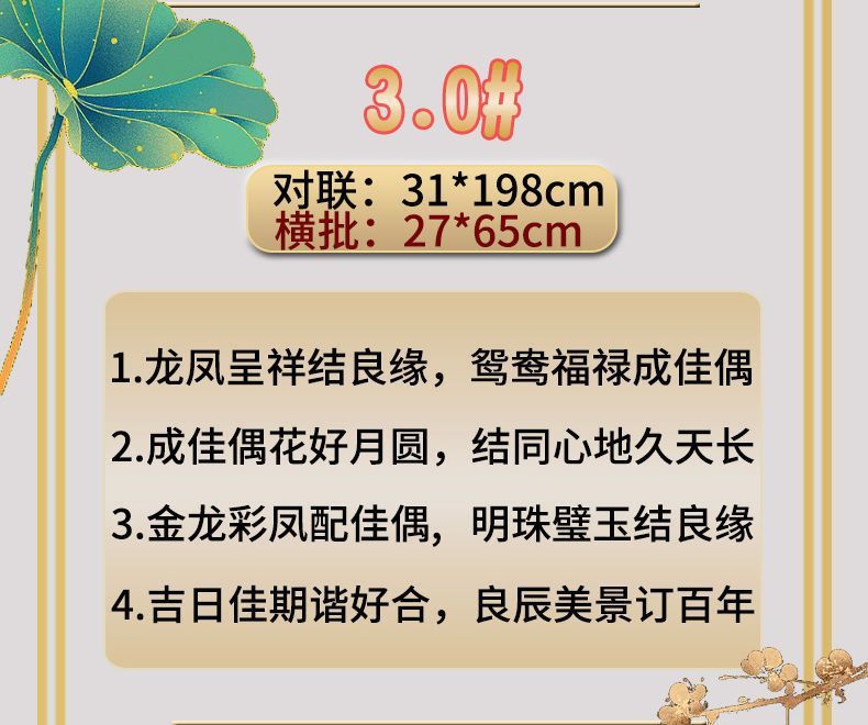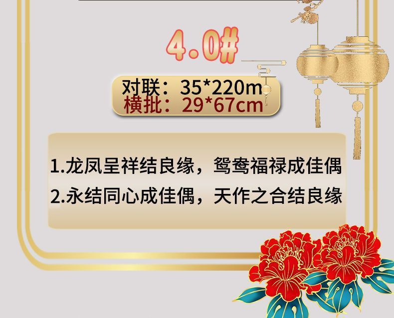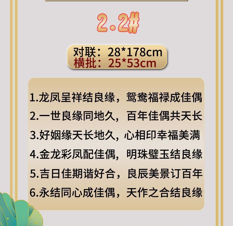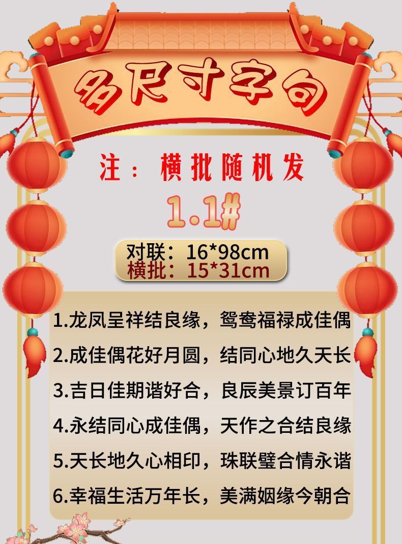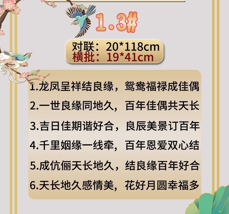 | 植绒婚联【送2张喜贴+点胶】横批随机 | USD $2.84 | 585 piece available |