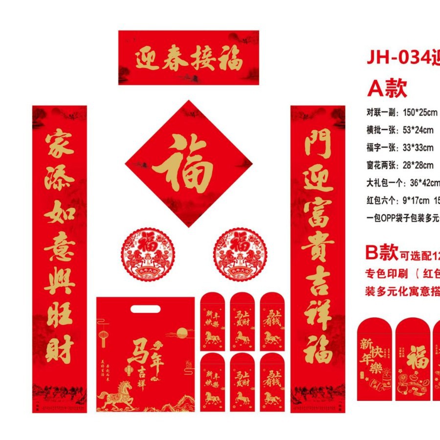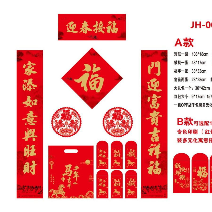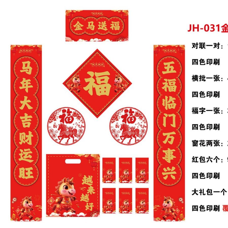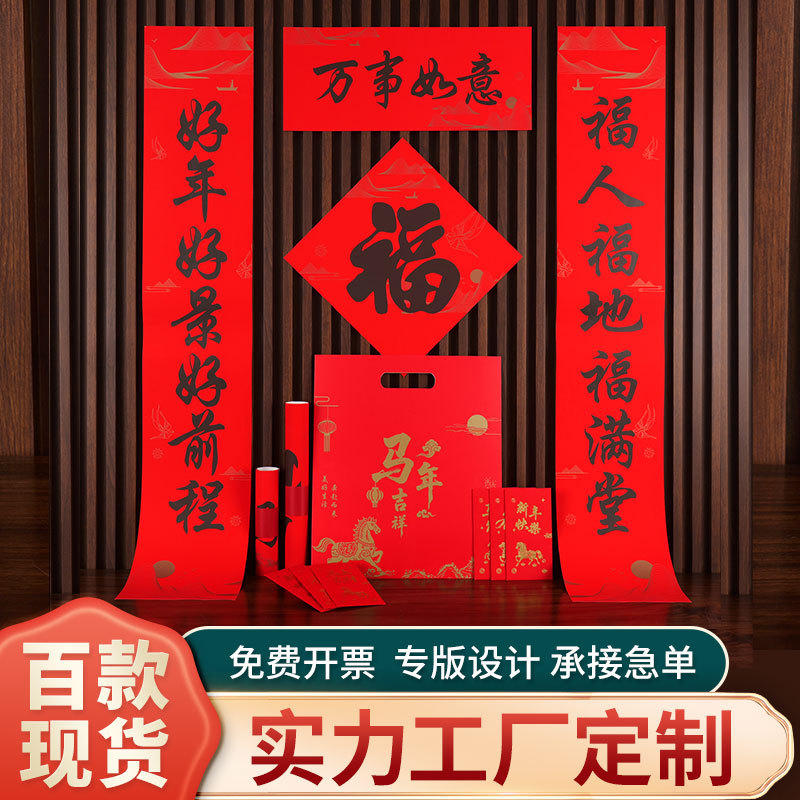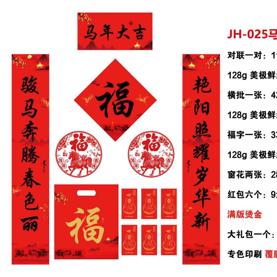 马年2026年全开对联异形春联保险广告烫金新年套装福袋大礼包喜庆