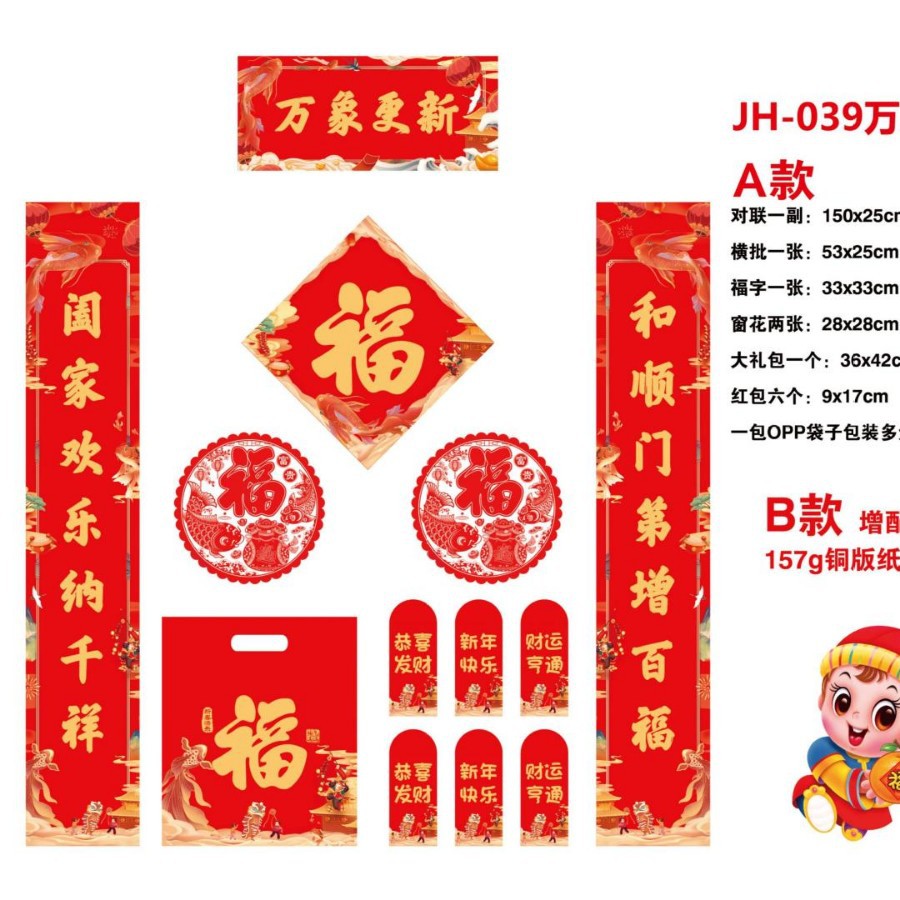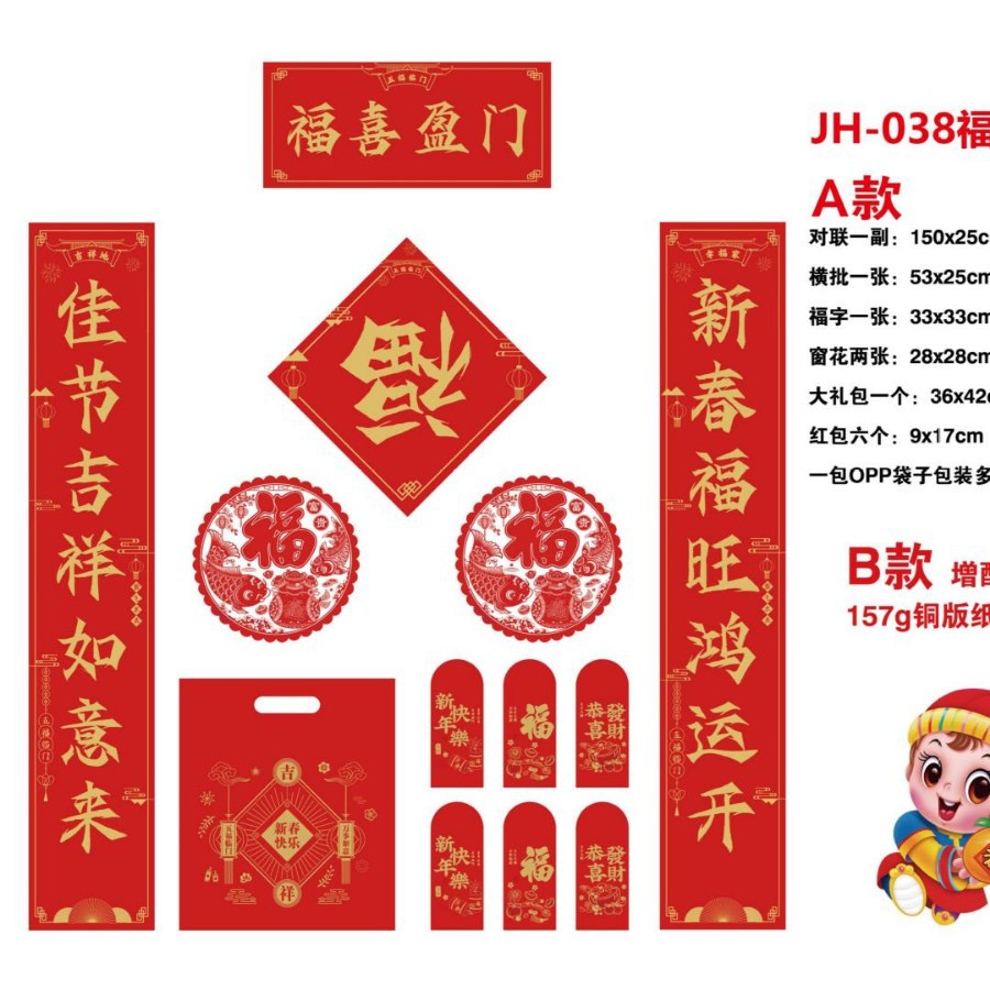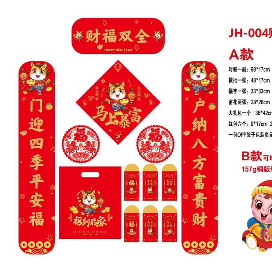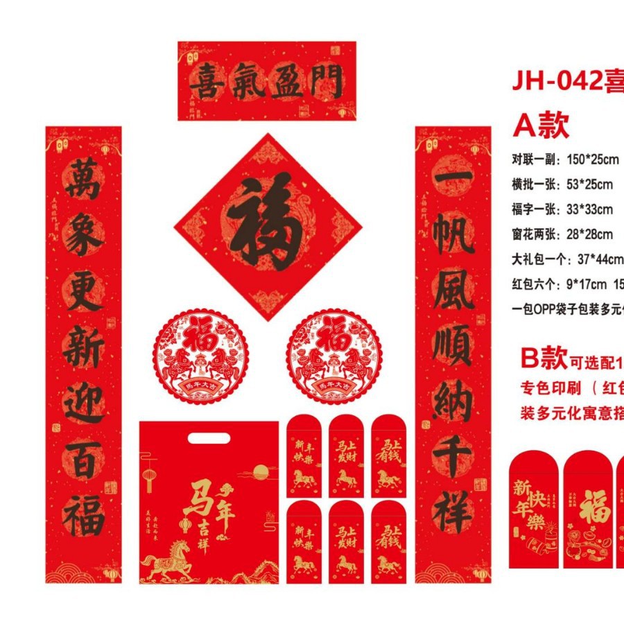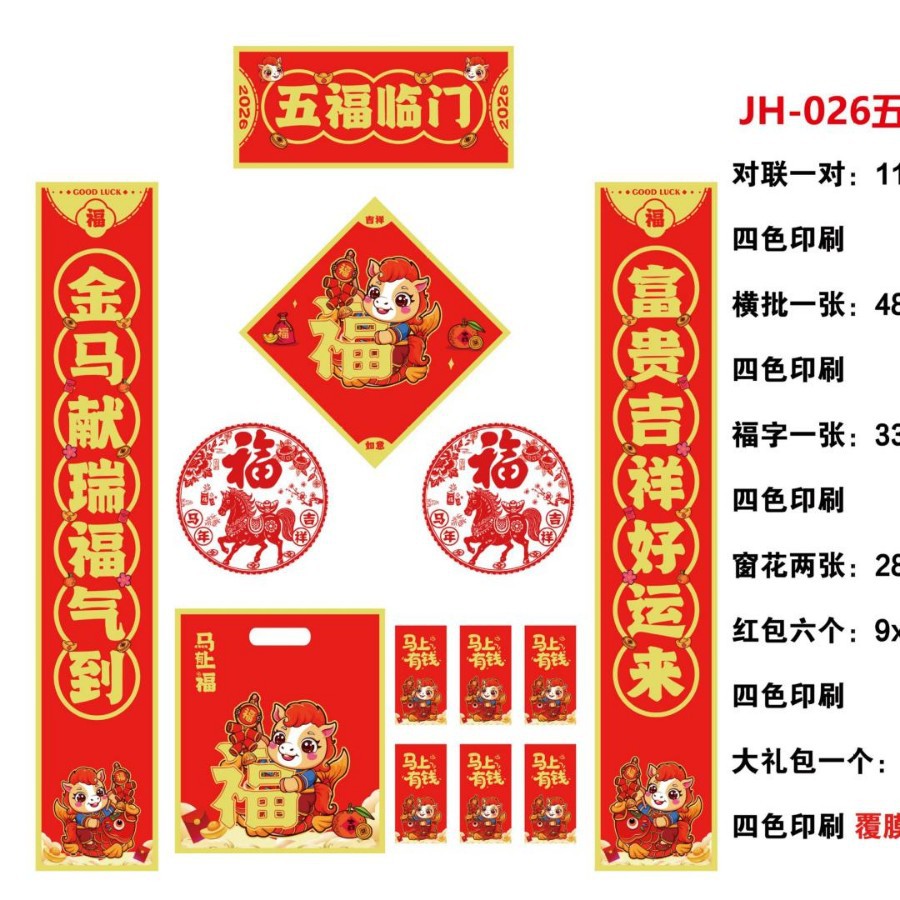 马年2026年全开对联异形春联保险广告烫金新年套装福袋大礼包喜庆