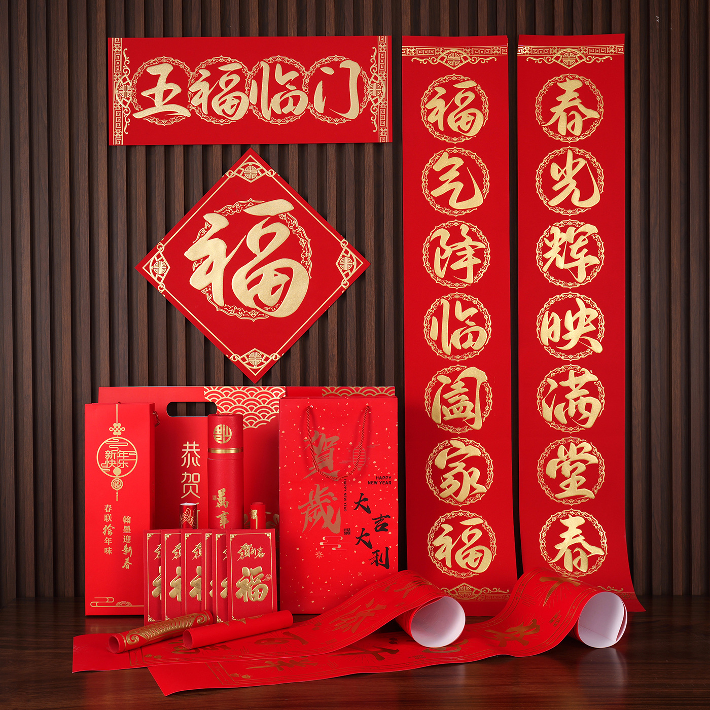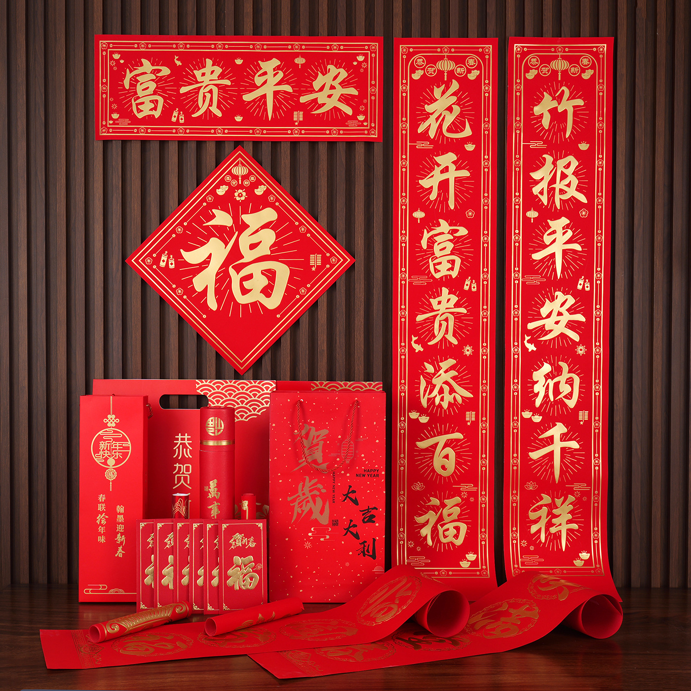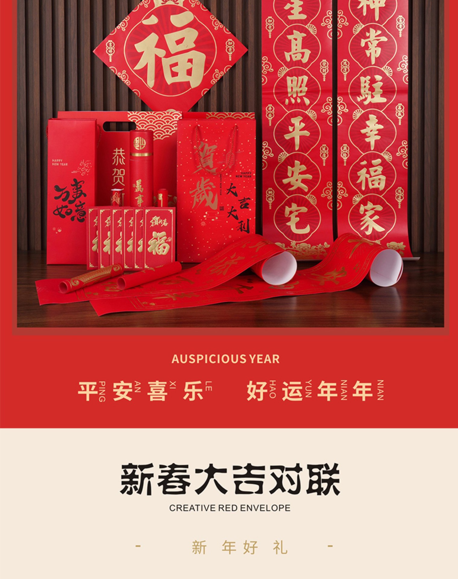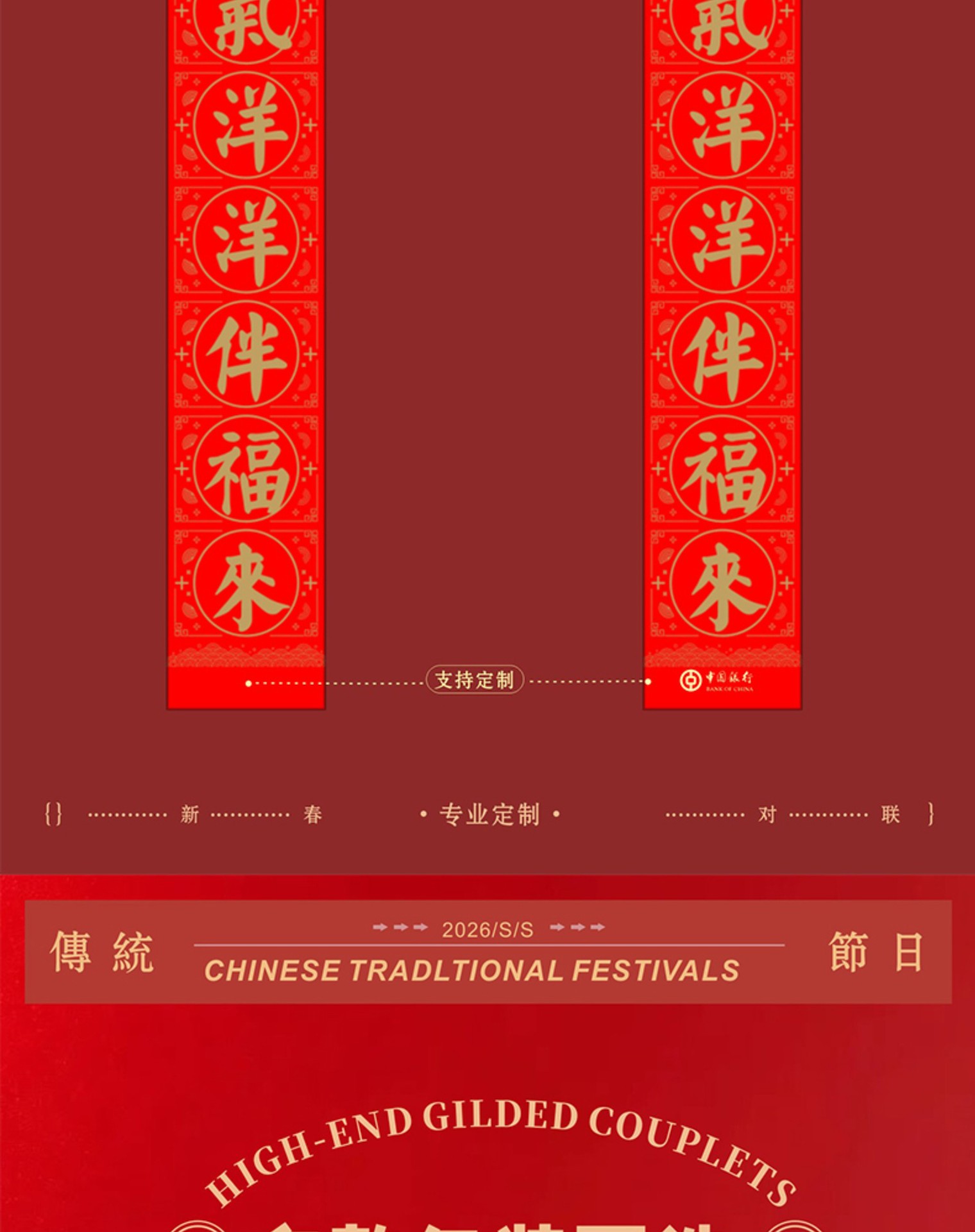 2026马年广告对联定制植绒专版春联定做公司印logo春节福字大礼包