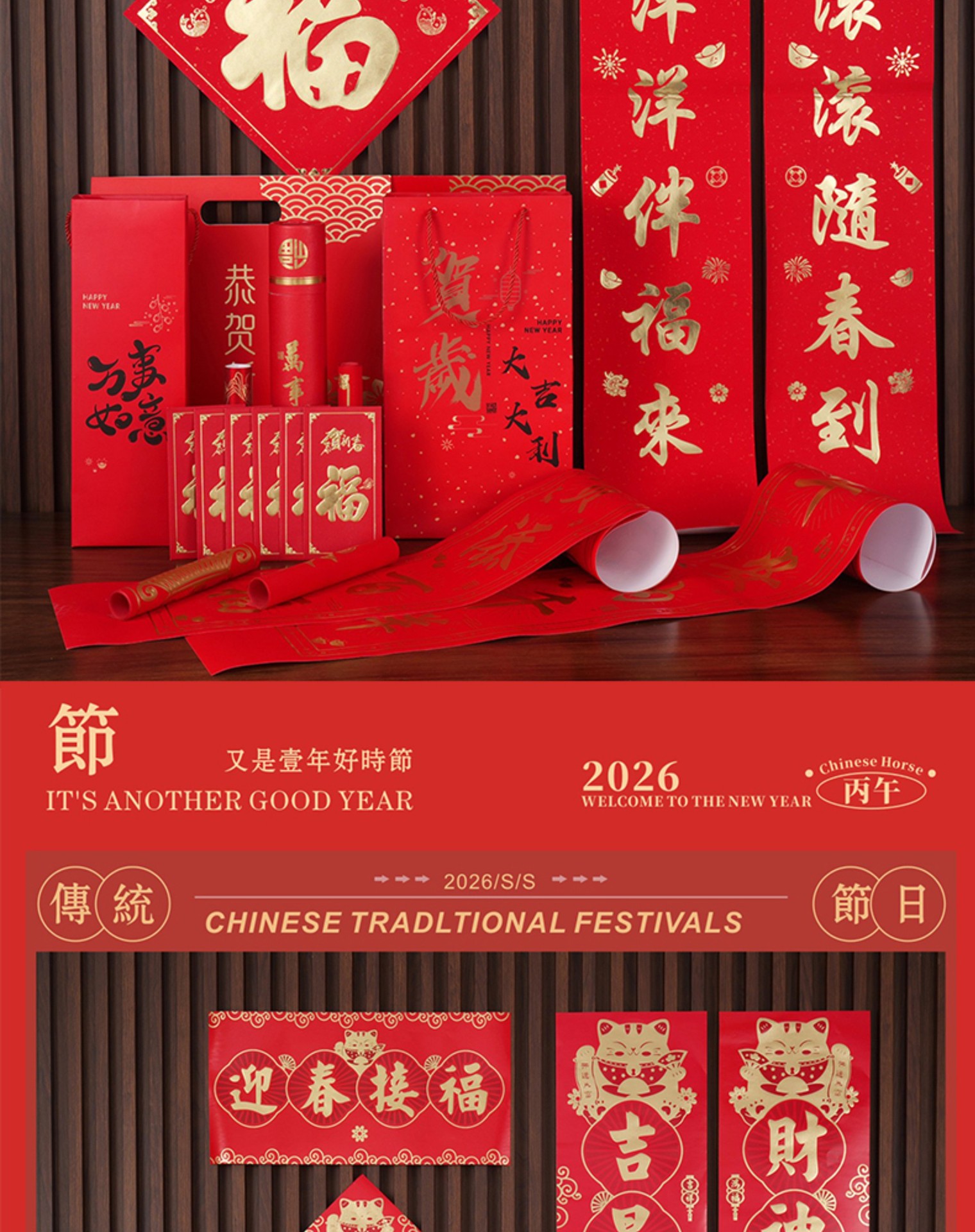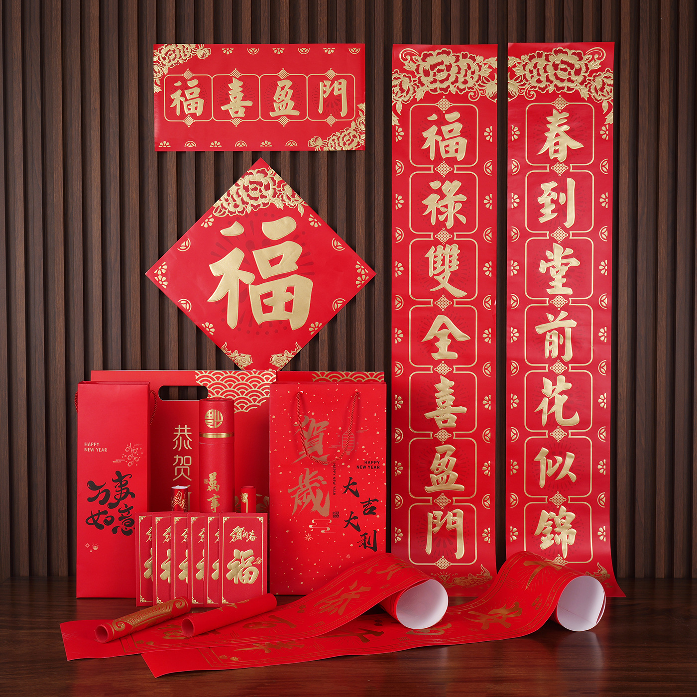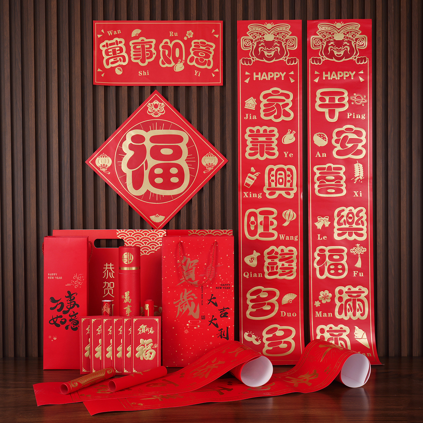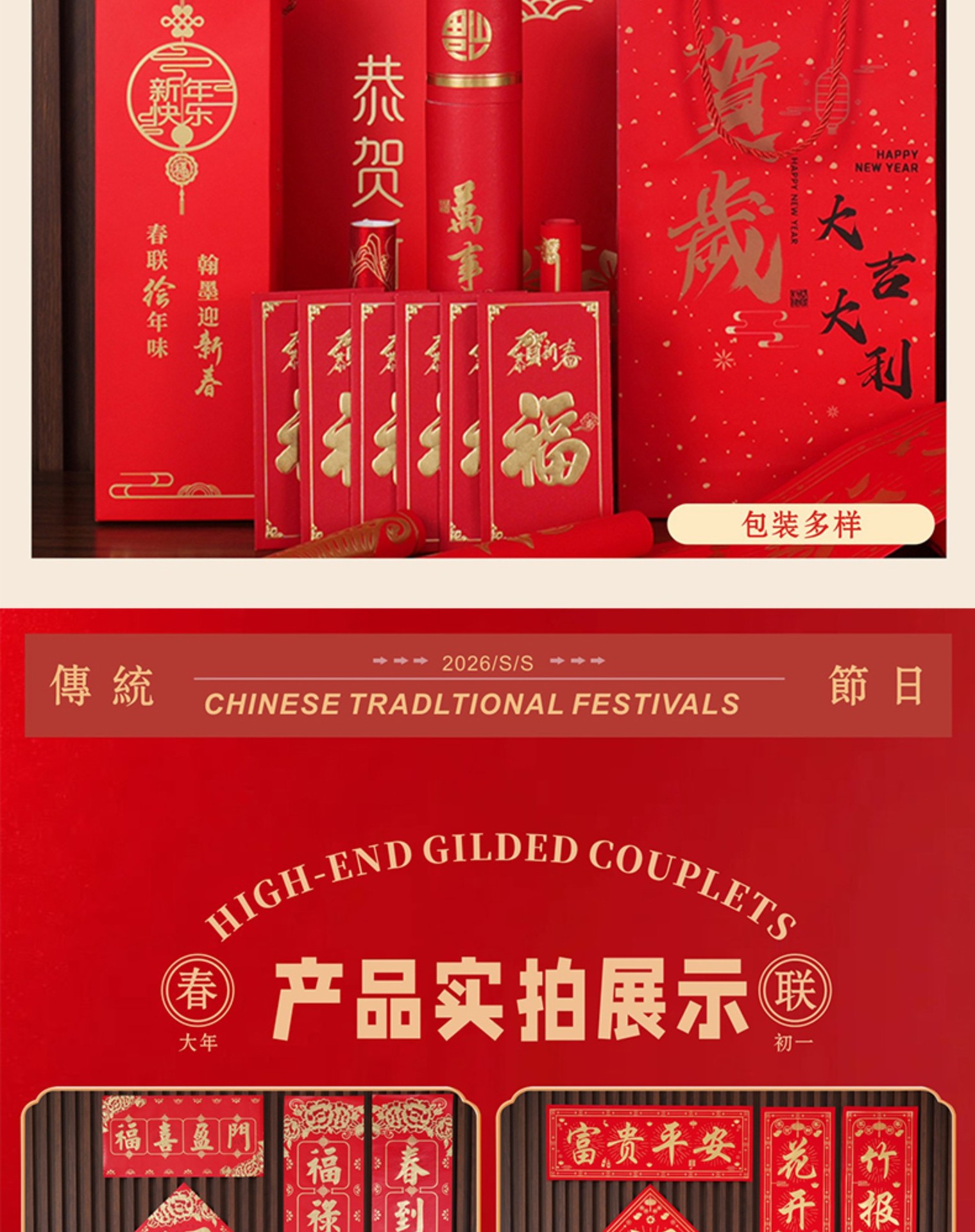 2026马年广告对联定制植绒专版春联定做公司印logo春节福字大礼包