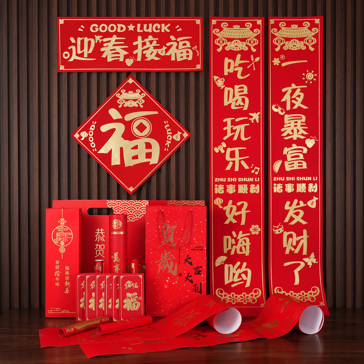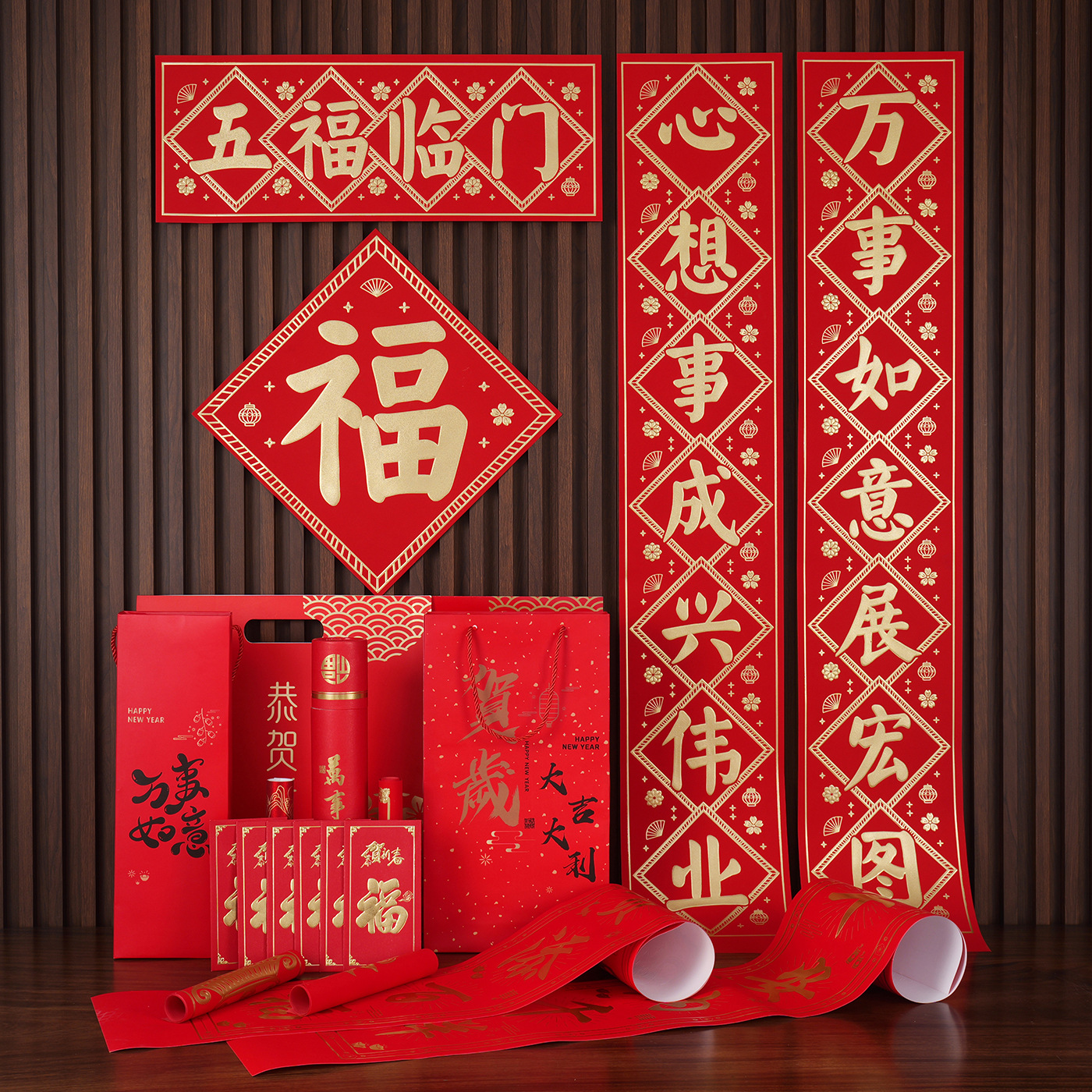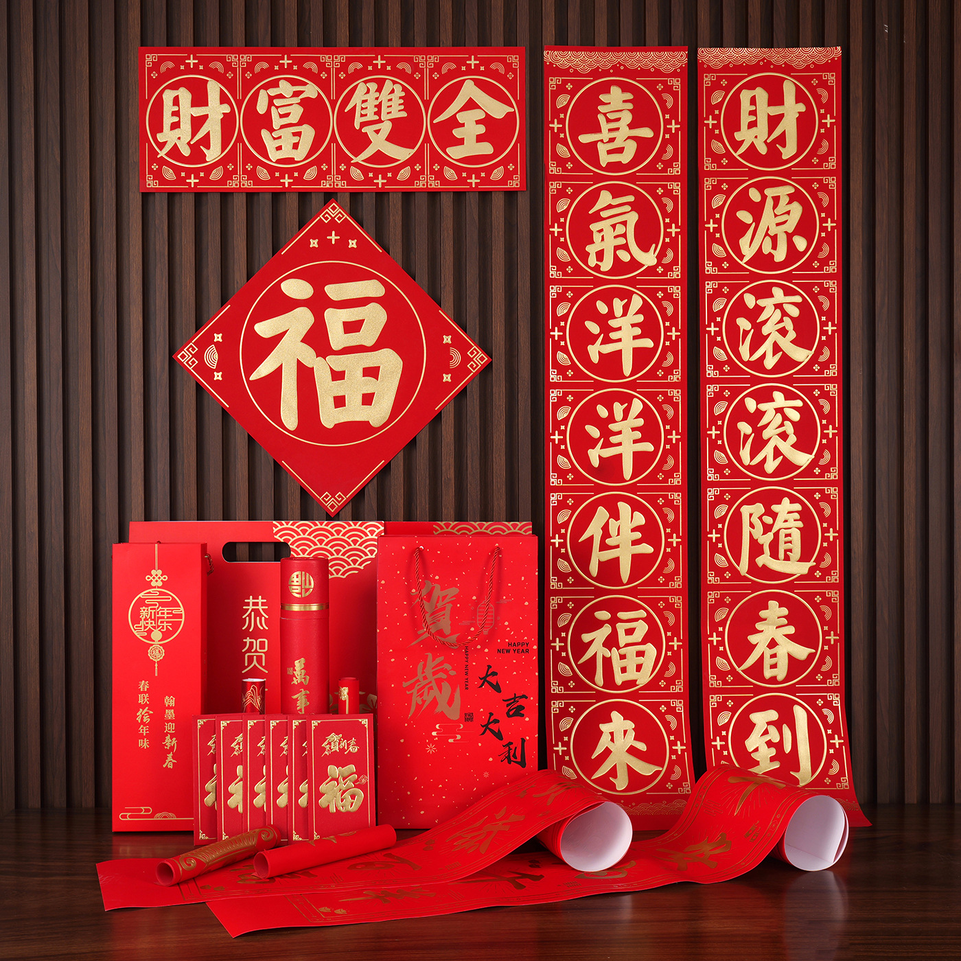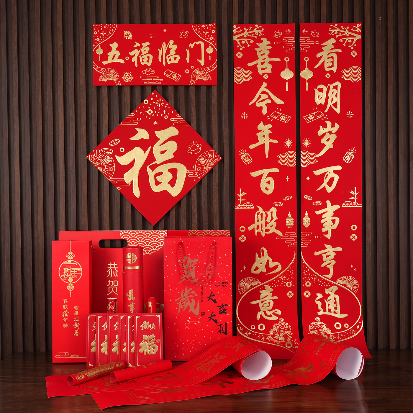 2026马年广告对联定制植绒专版春联定做公司印logo春节福字大礼包