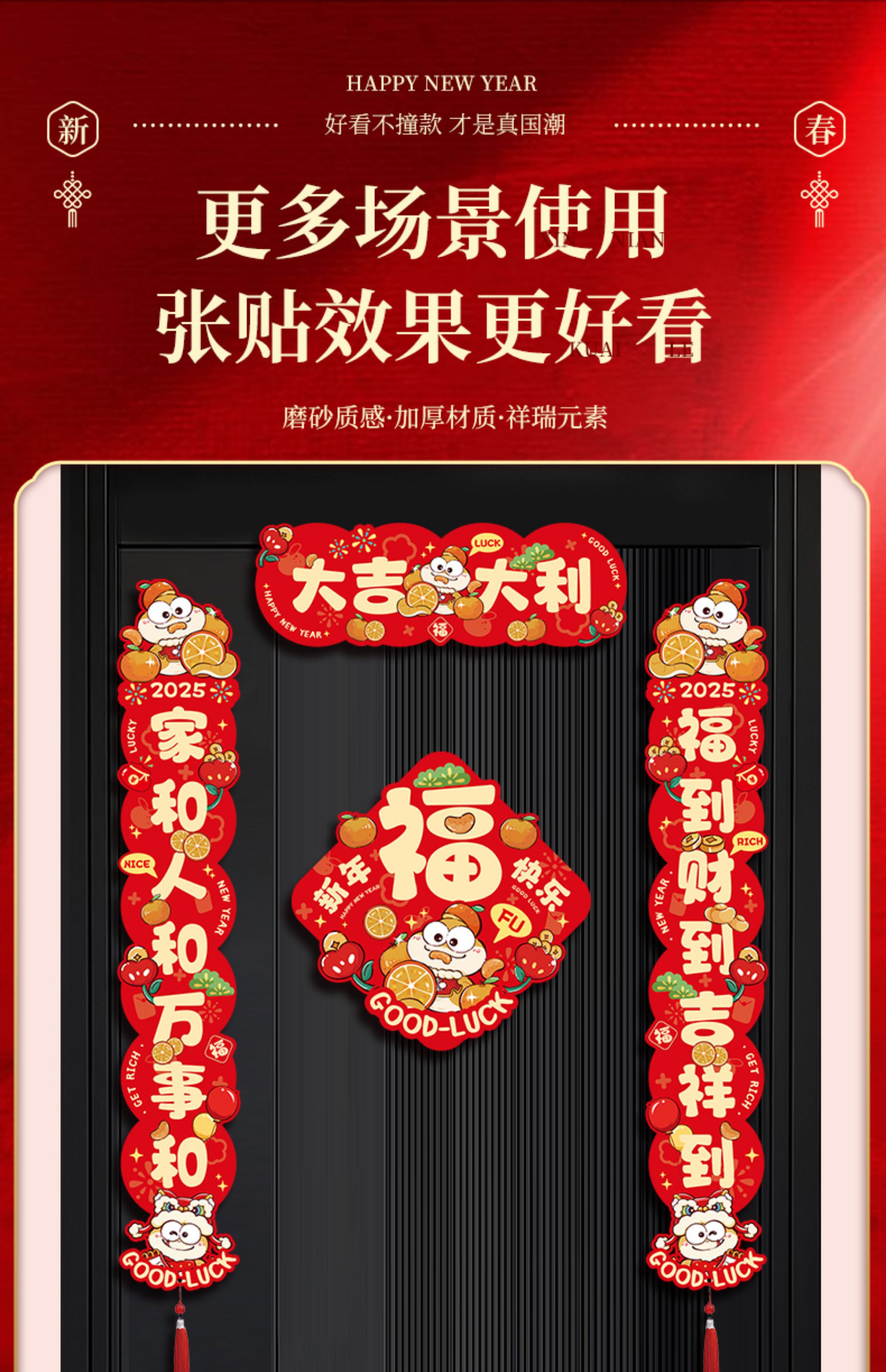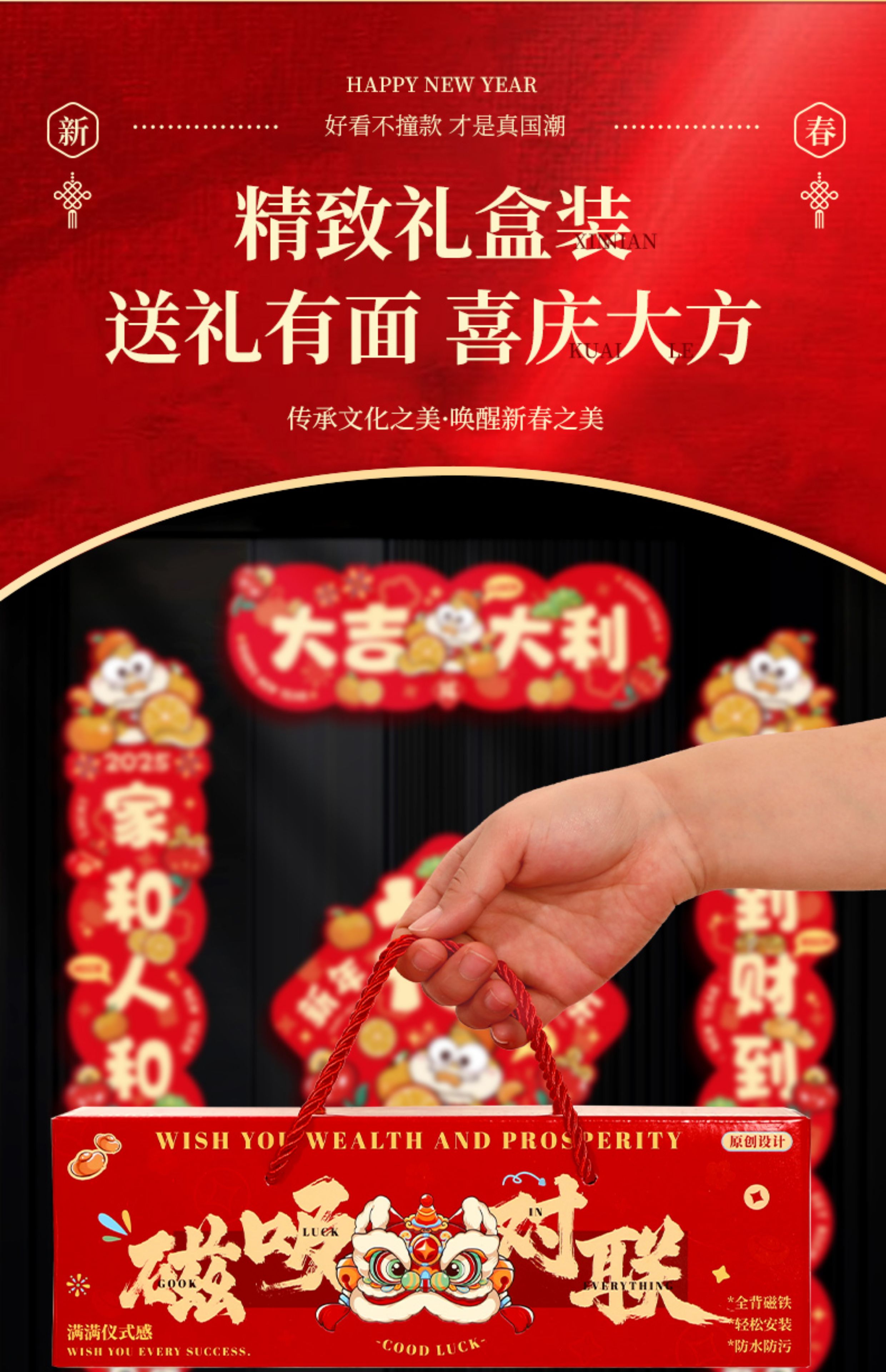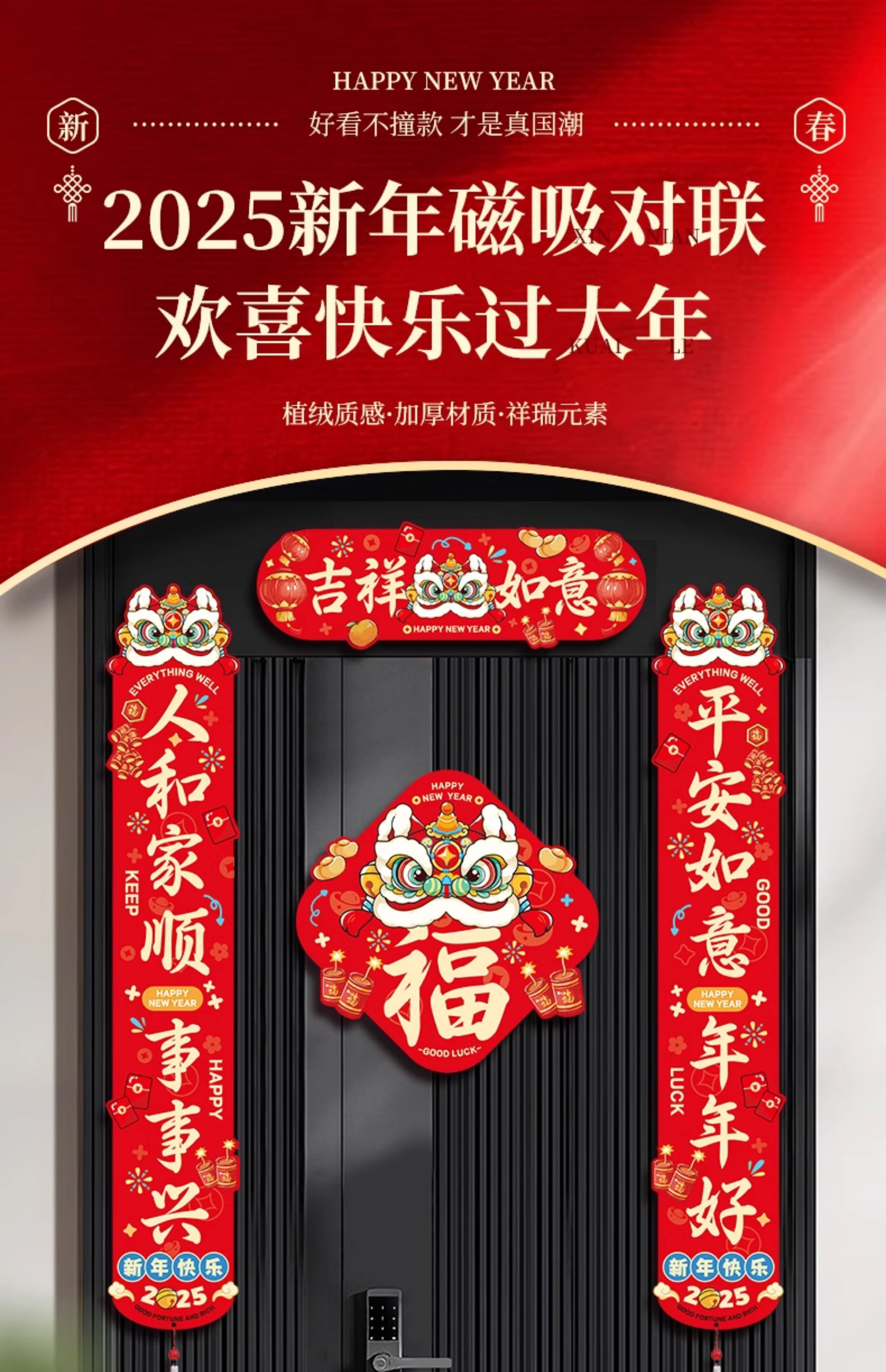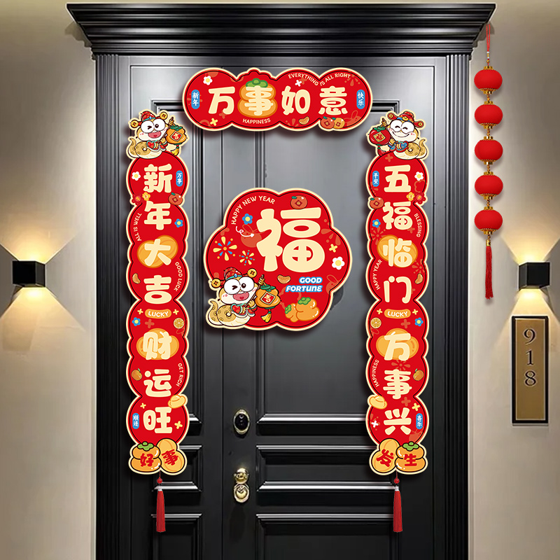 对联春联2025年蛇年新款磁吸大门春节新年入户门过年国潮门贴装饰