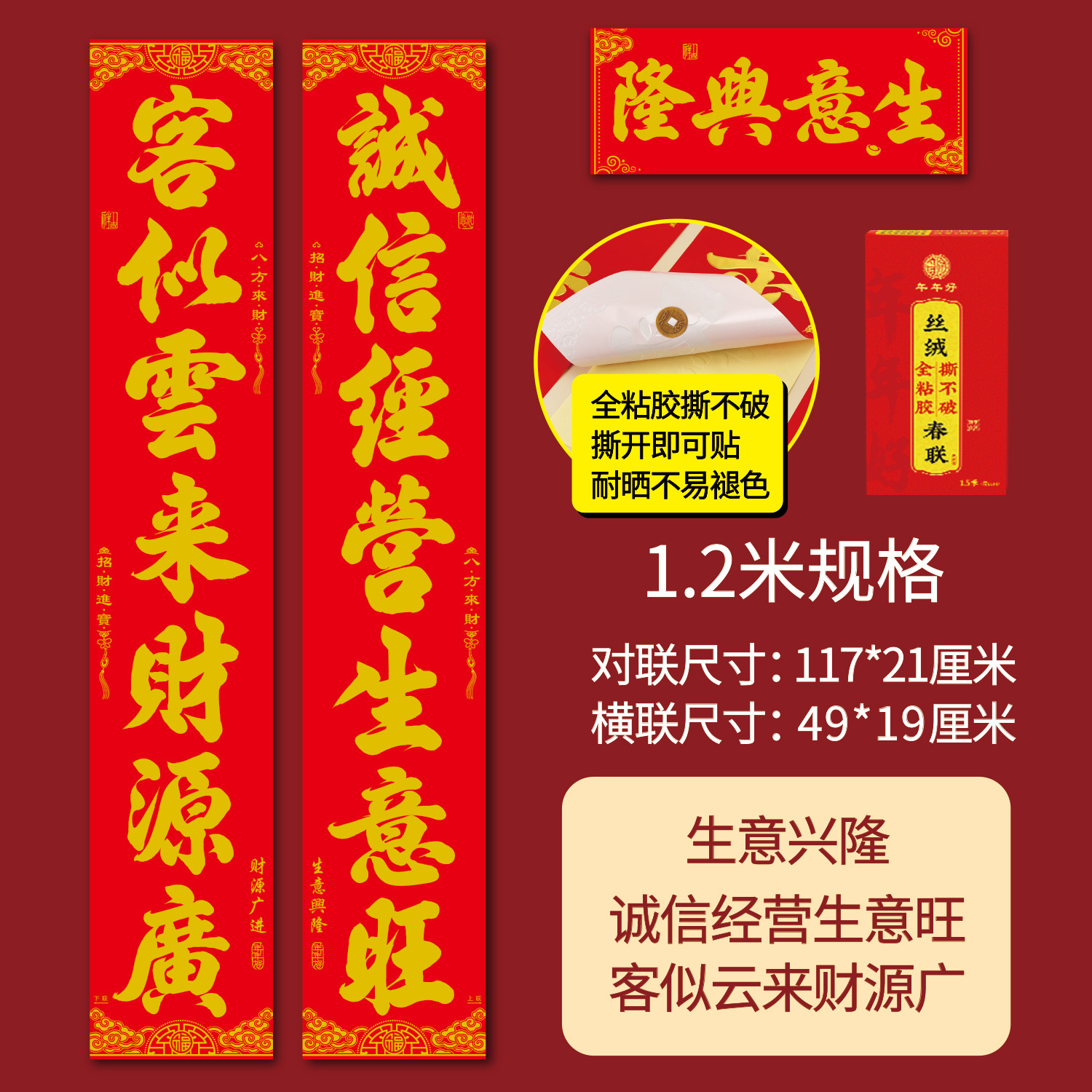 【全带胶】马年生意词丝绒春联耐晒商铺工厂大对联春节生意兴隆