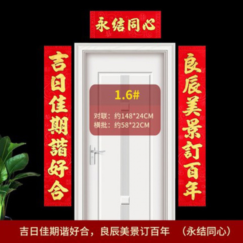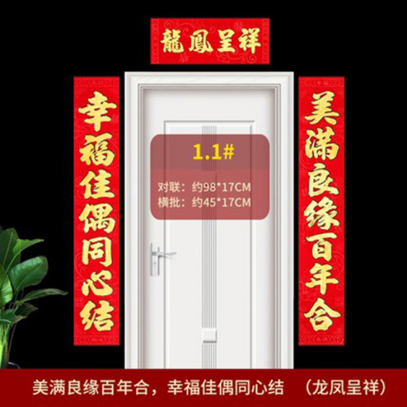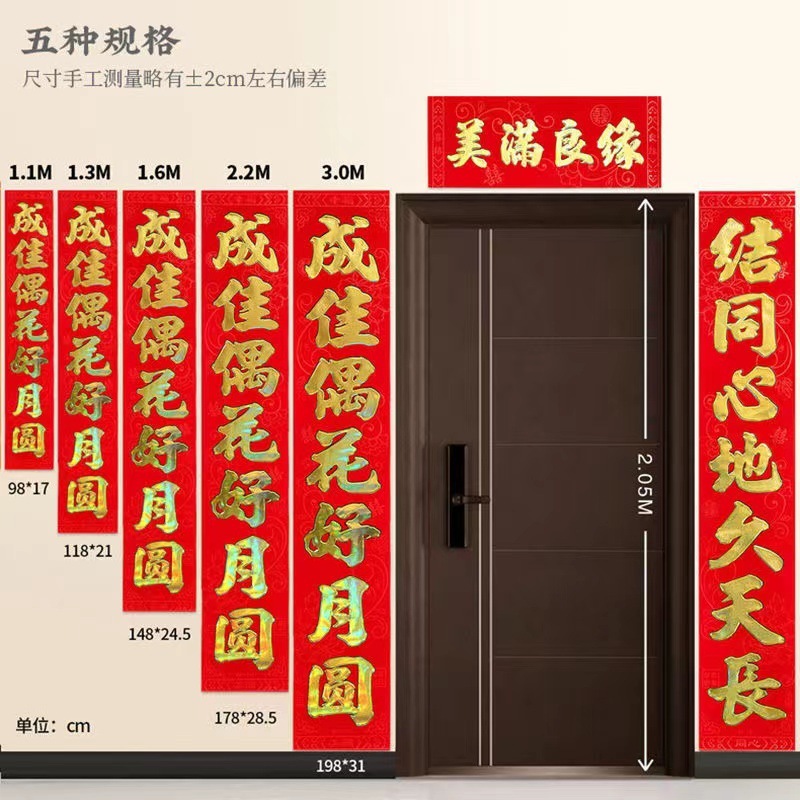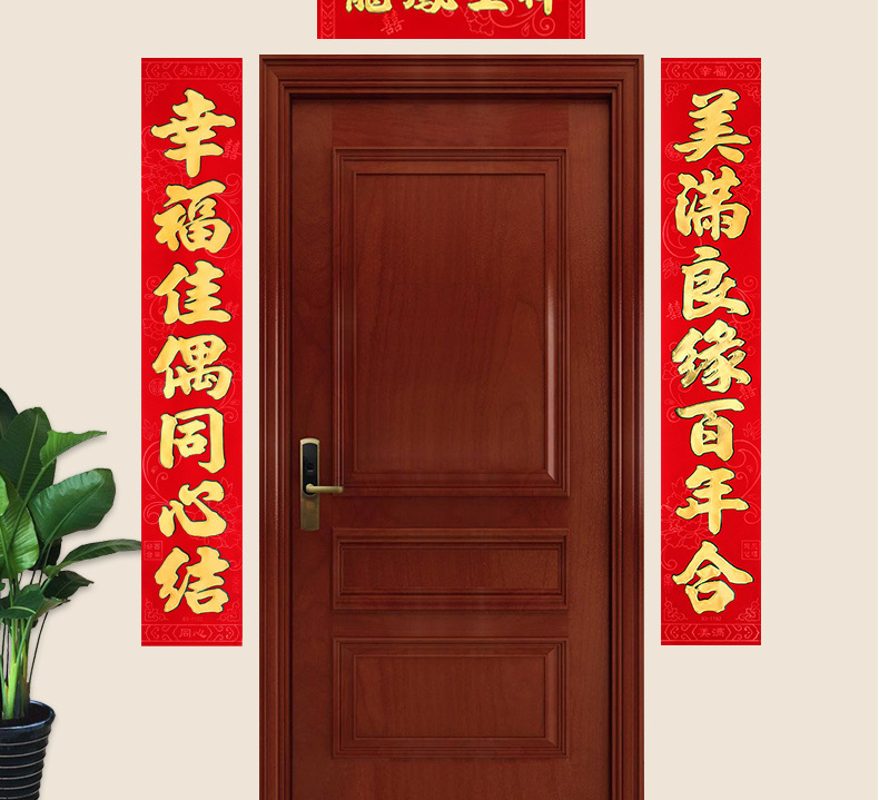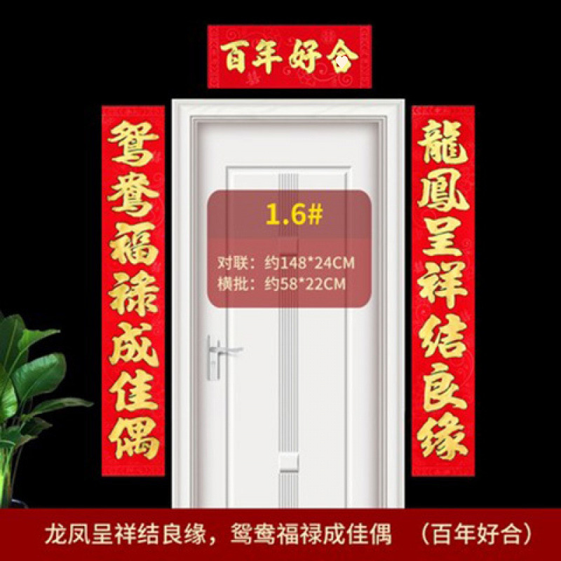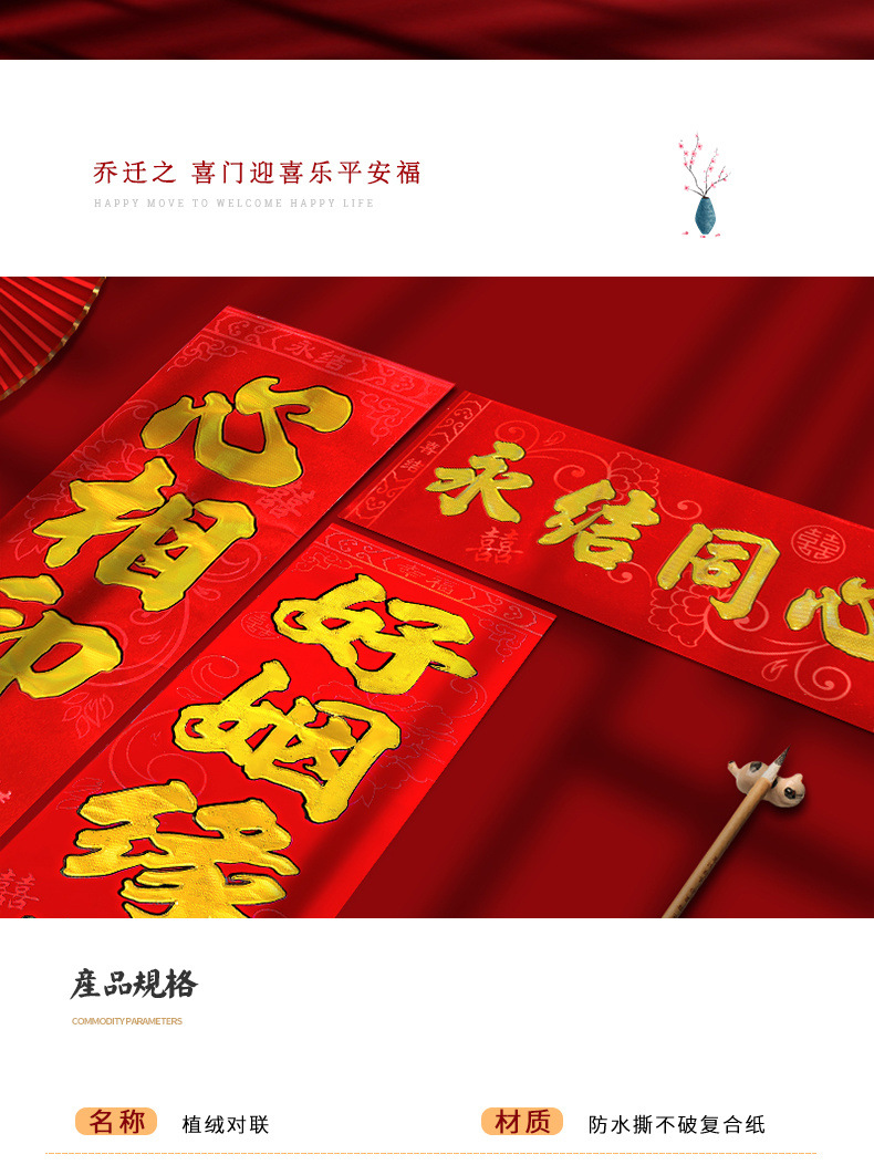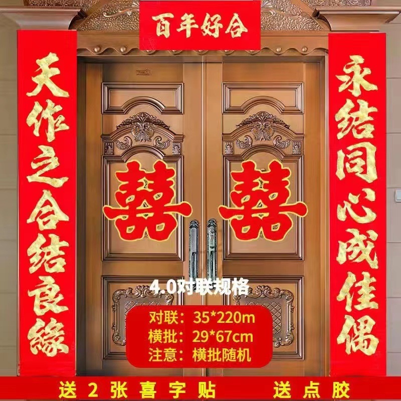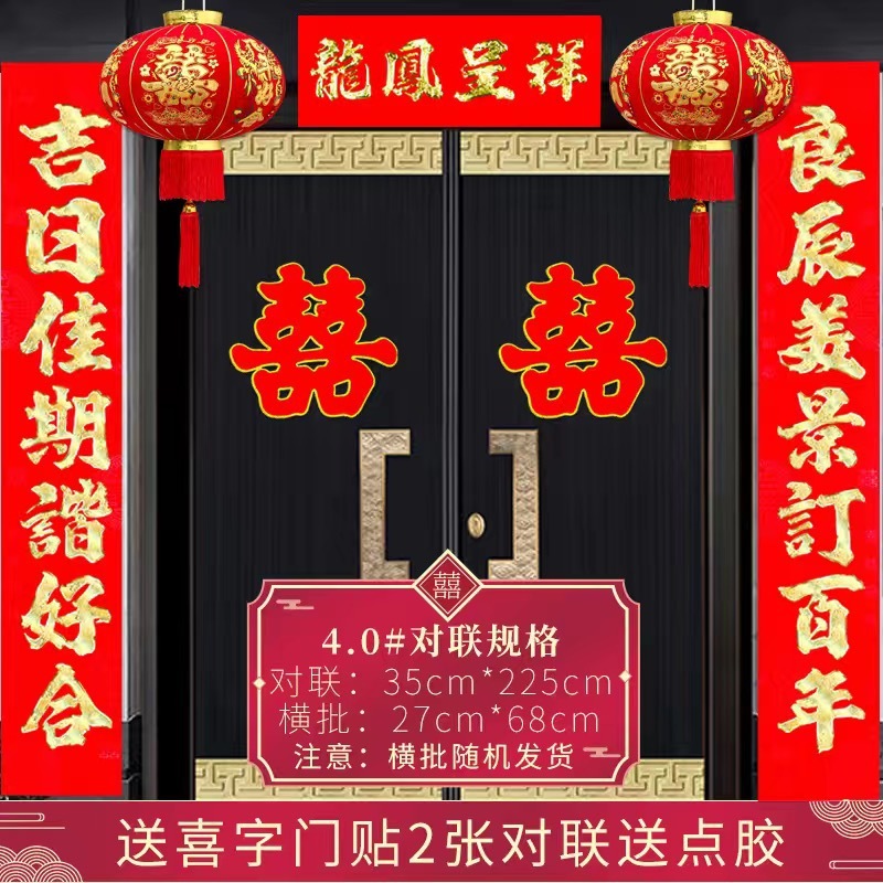 植绒结婚对联男方大门喜事喜联新婚女方出嫁大门出嫁婚房套婚礼