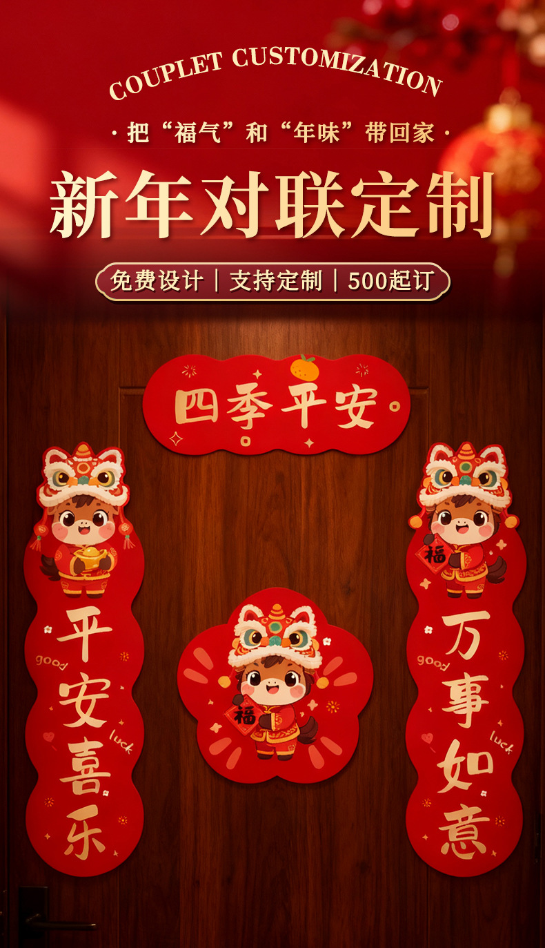 广告烫金对联定制马年卡通挥春礼盒2026生肖书法福字高档对联定制