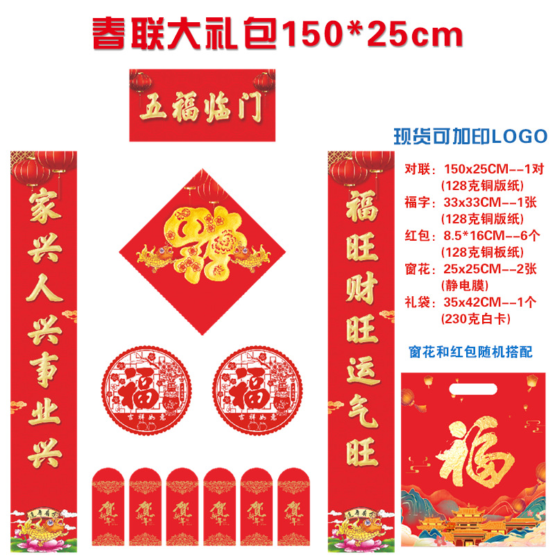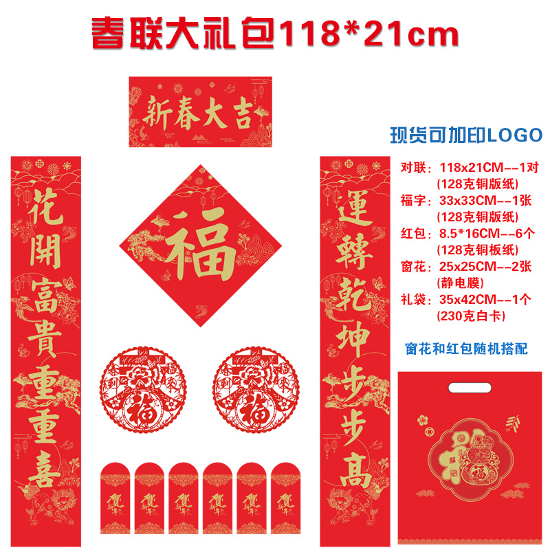 2025蛇年新款春节对联定制logo企业宣传礼品春联套装红包福窗门联