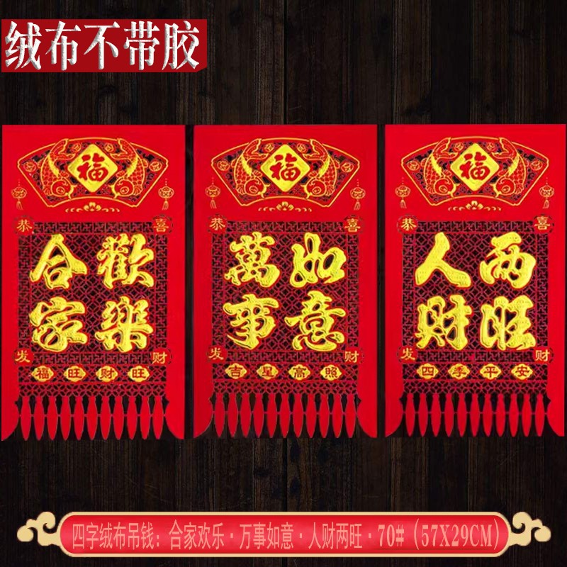 2025蛇年高档新款绒布吊钱门钱利是钱福字门贴带背胶春联对联批发