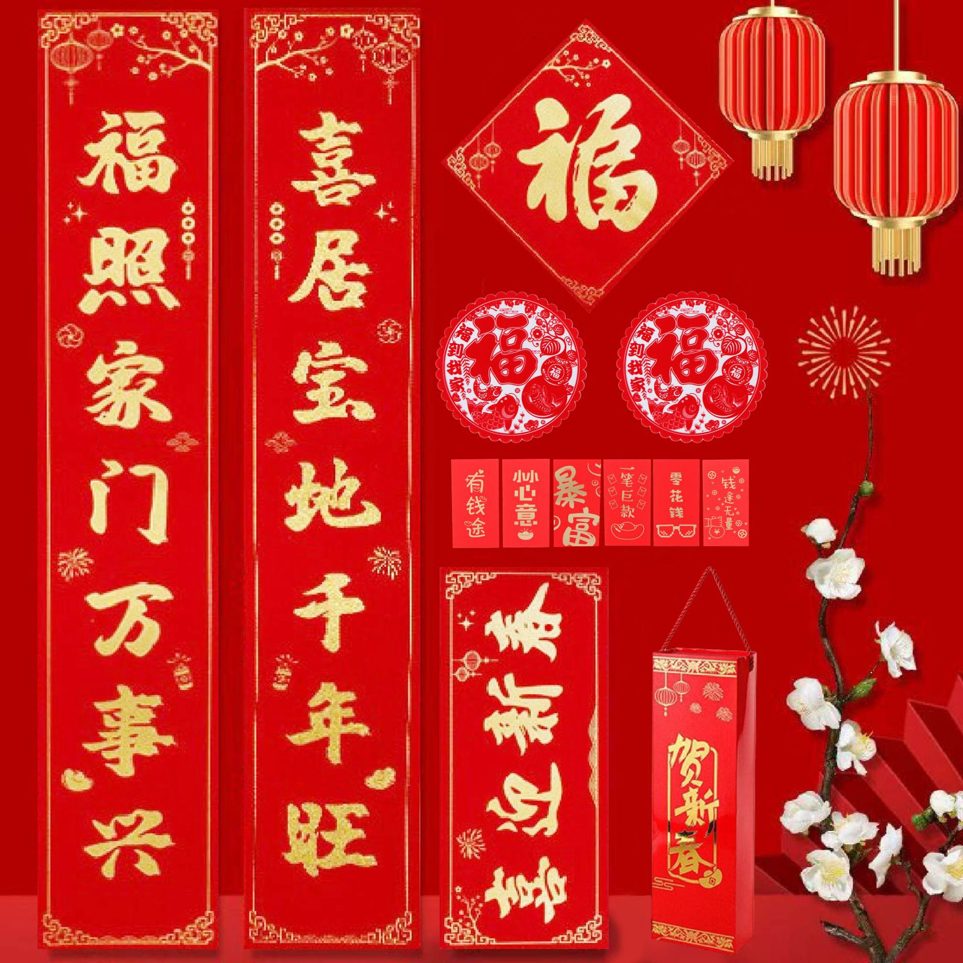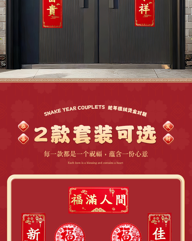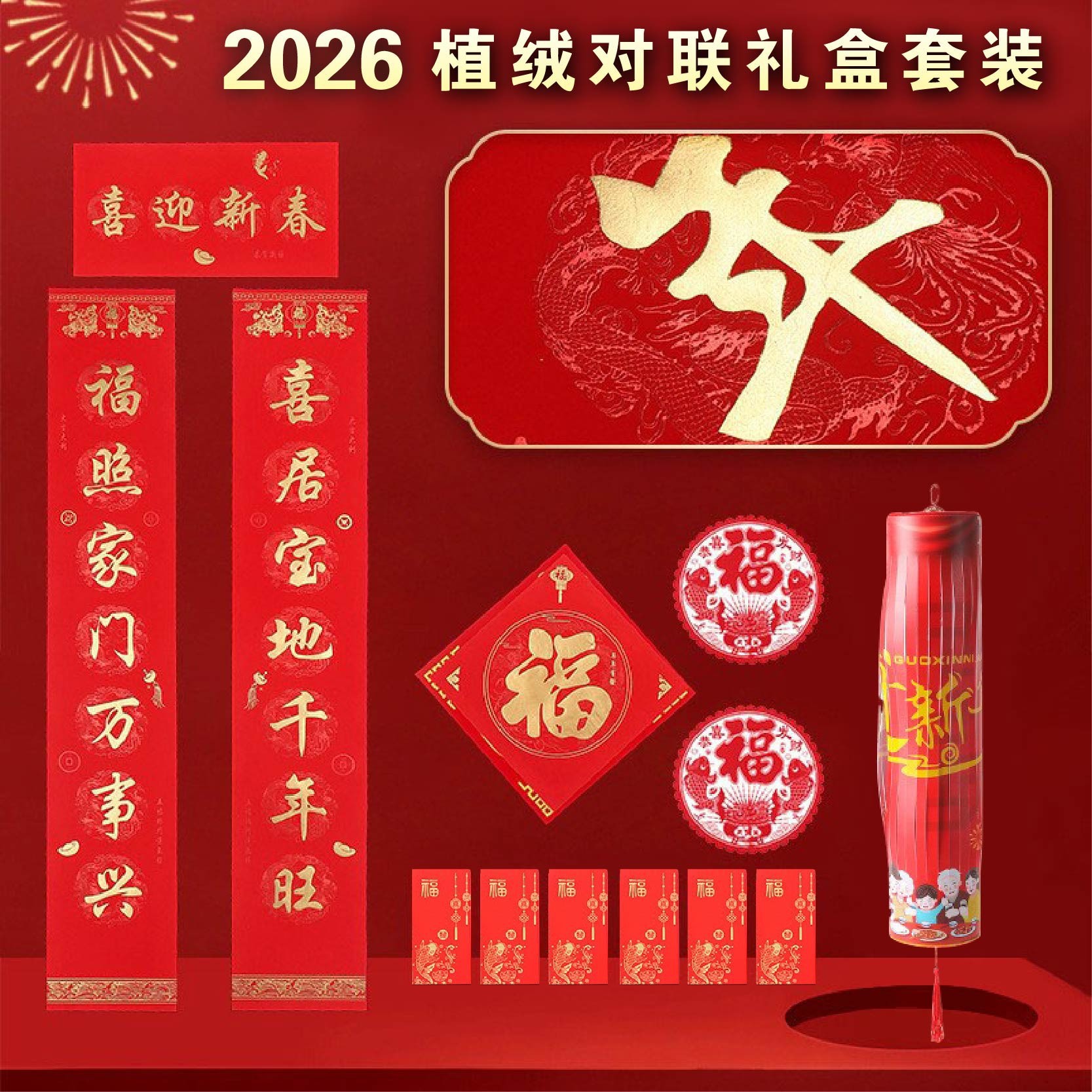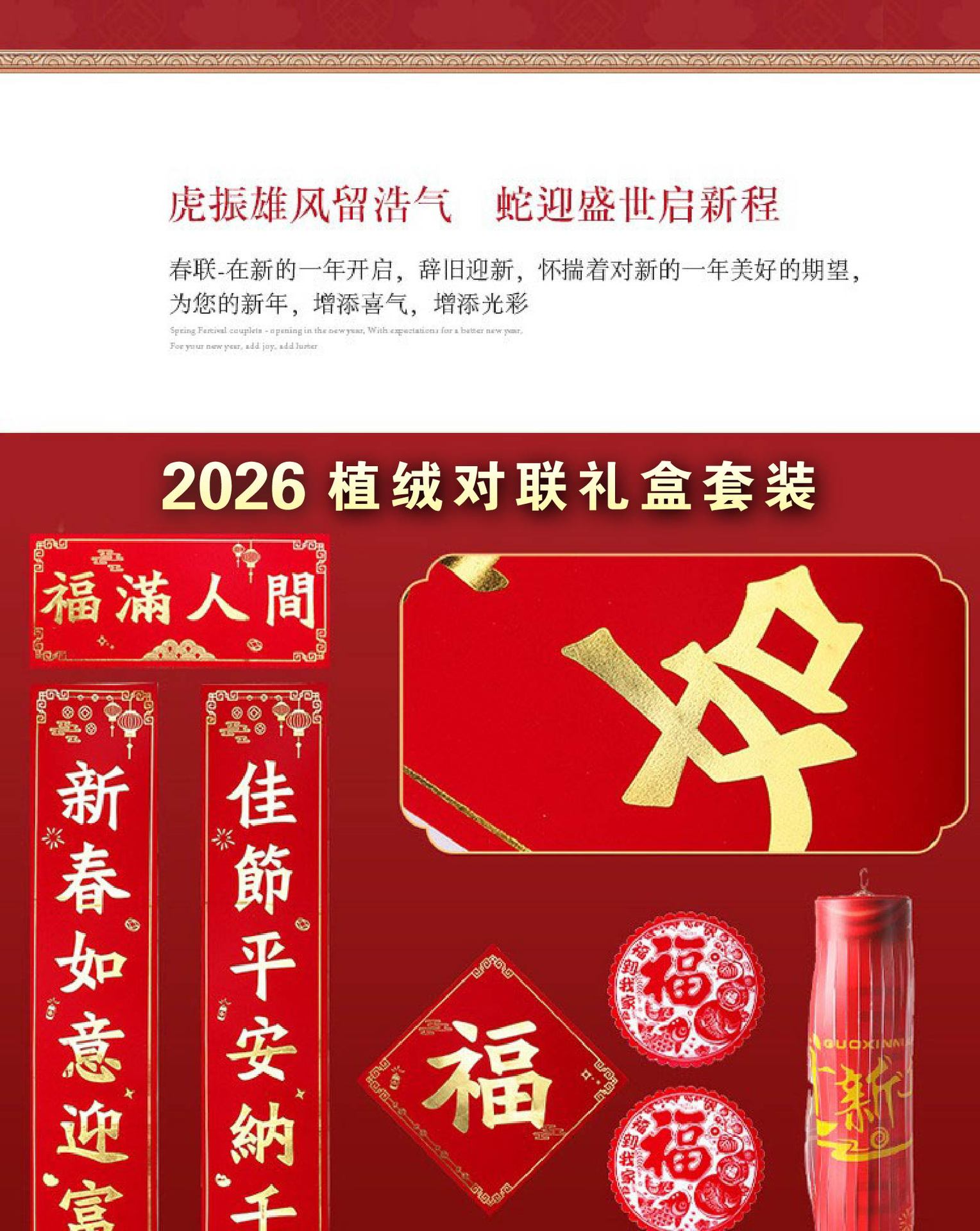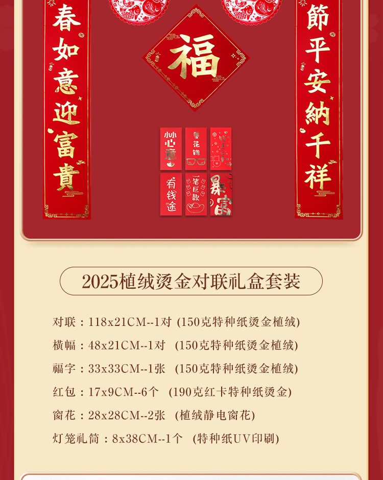 2026年植绒烫金对联大礼包银行保险企业广告宣传红包窗花春联定制