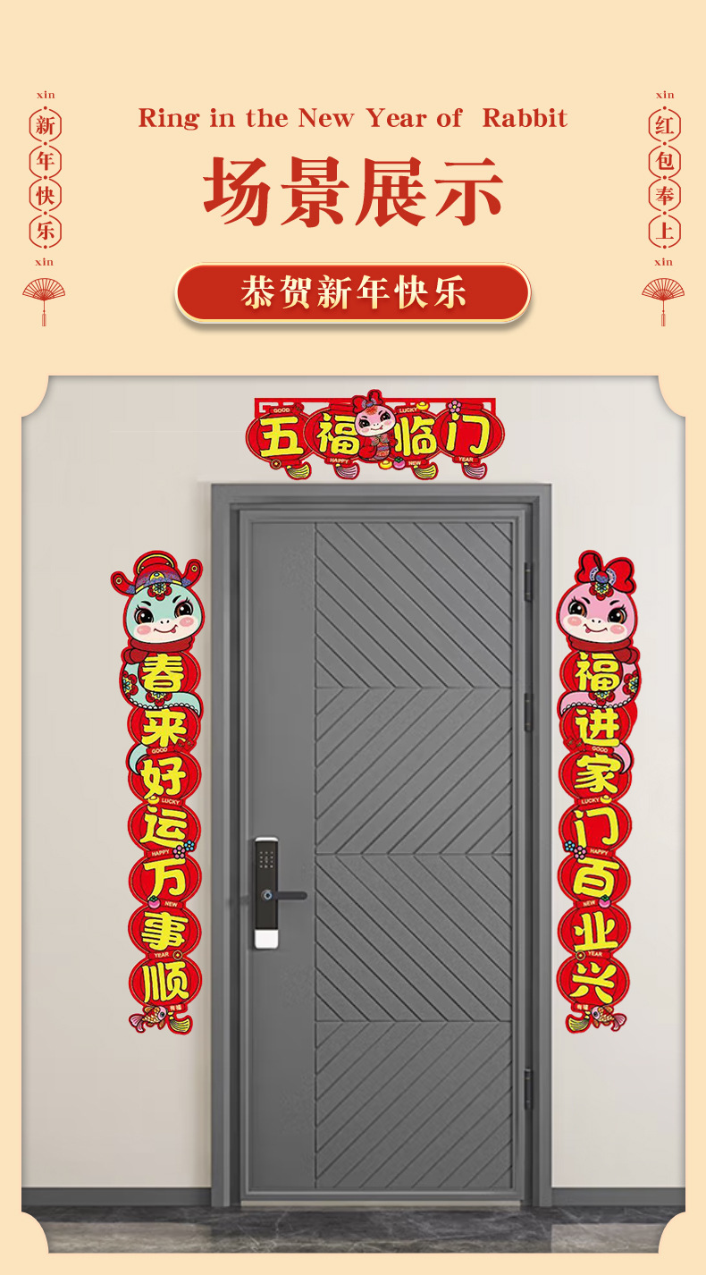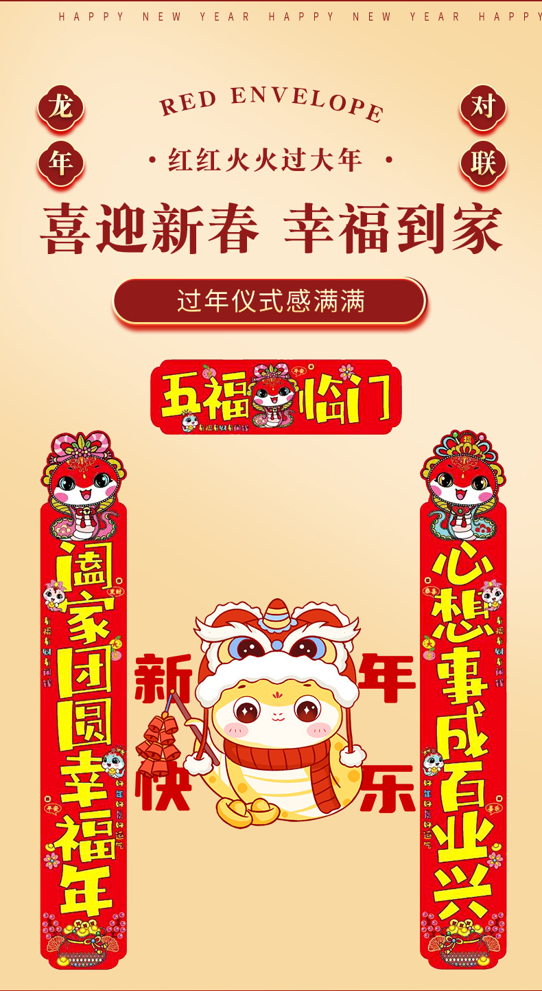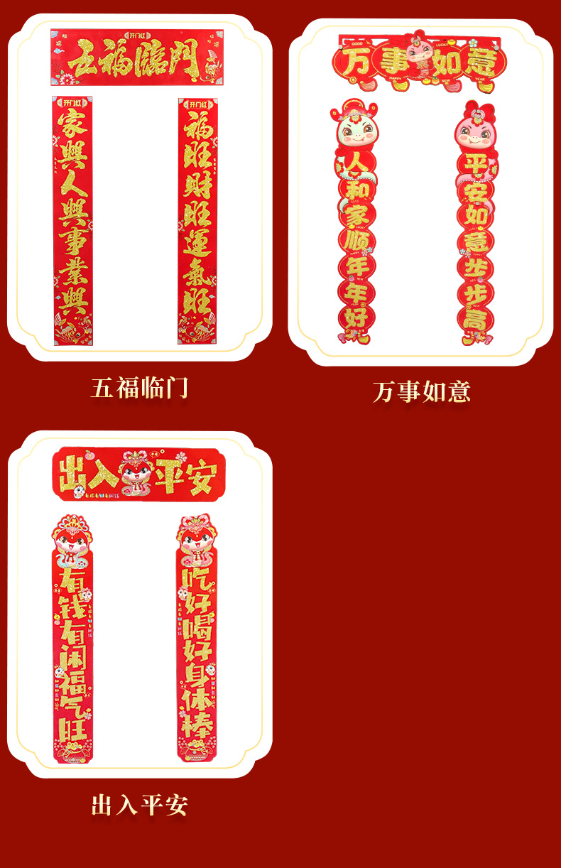 蛇年新款对联新年装饰卡通可爱植绒烫金春节过年创意春联厂家直销