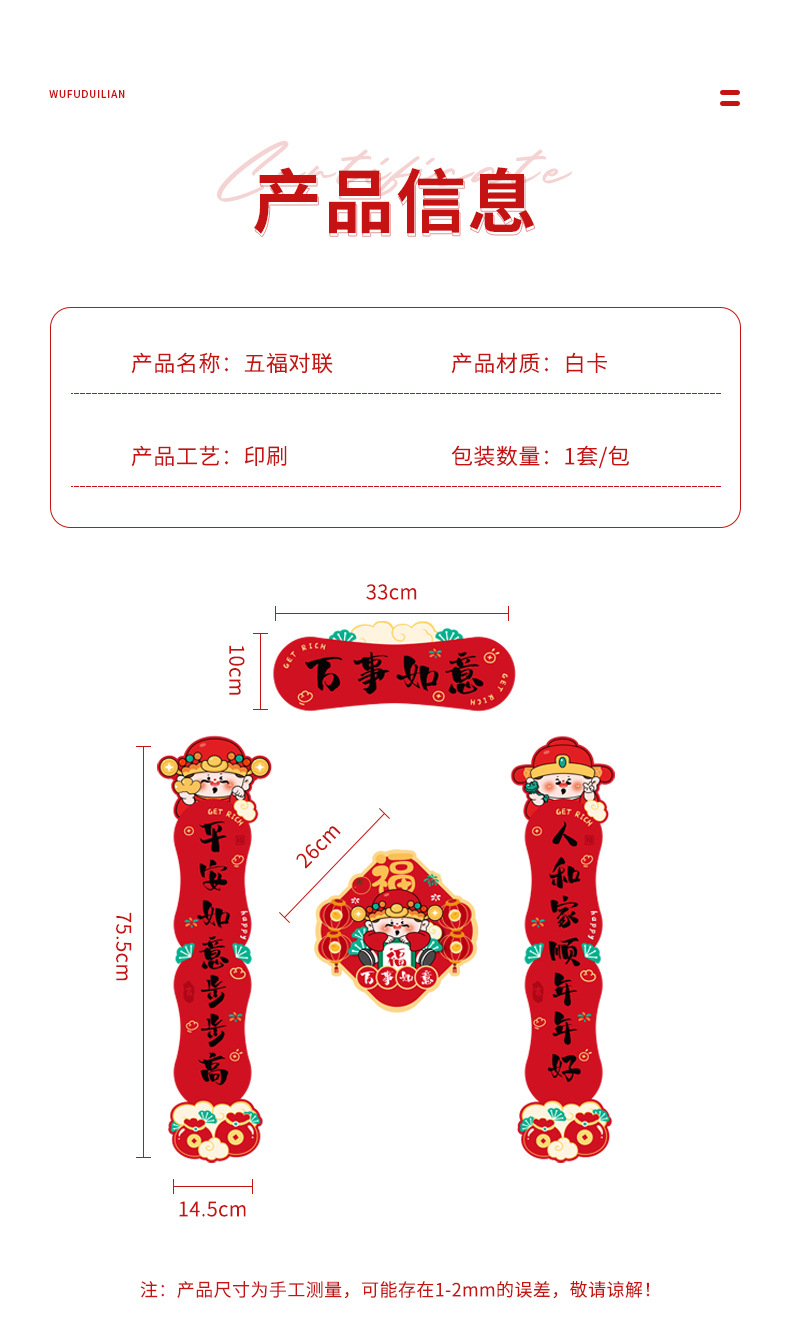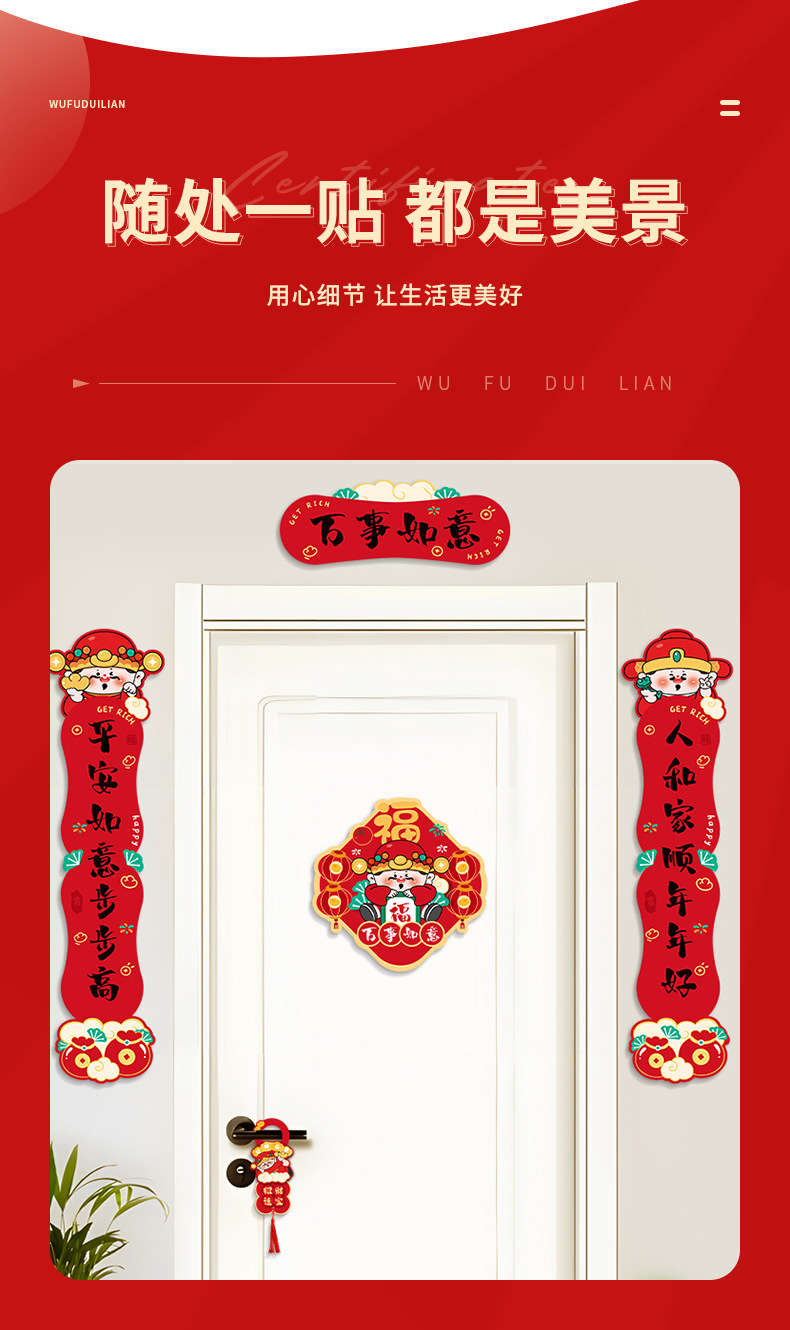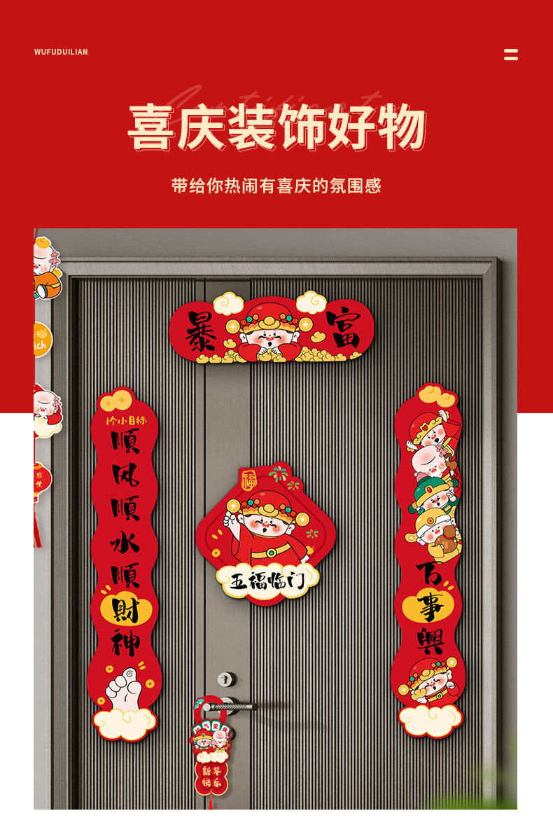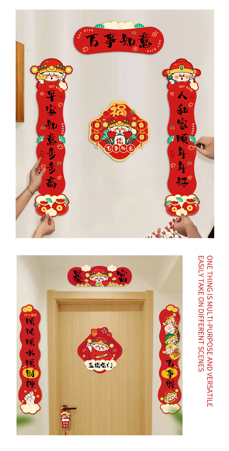 2025新年对联贴纸春节福字门贴 创意家用黑字春联入户门贴纸布置
