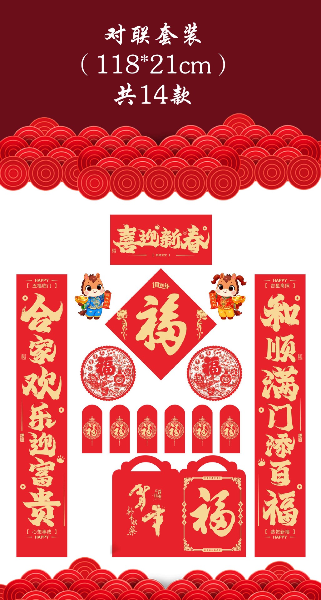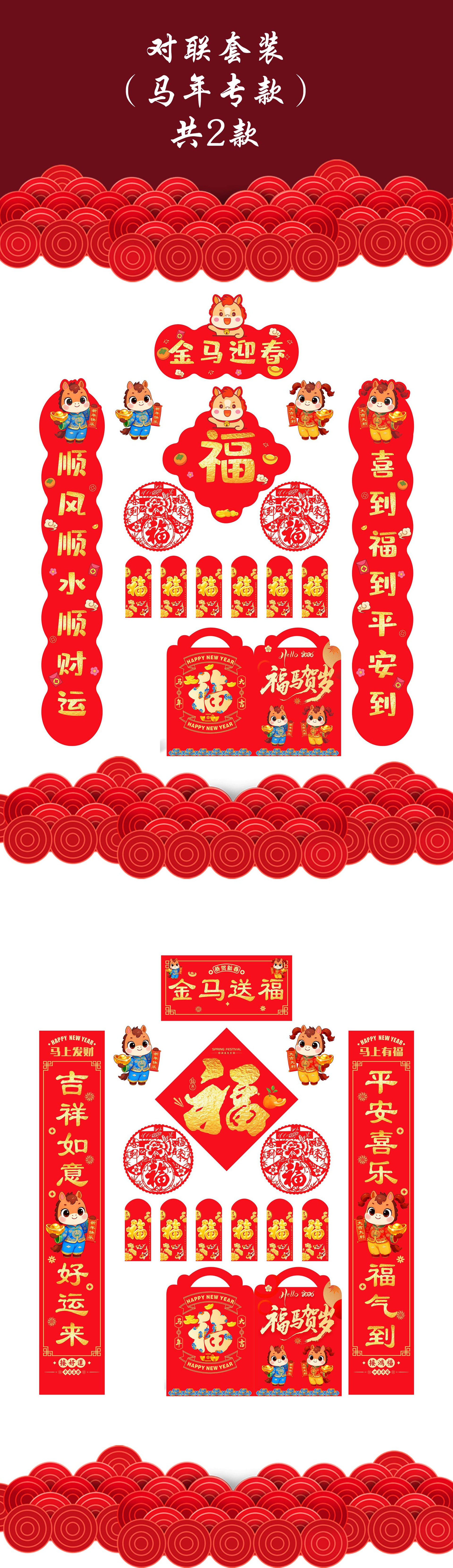 2026马年春节对联套装现货春联大礼包银行广告烫金对联标志加LOGO