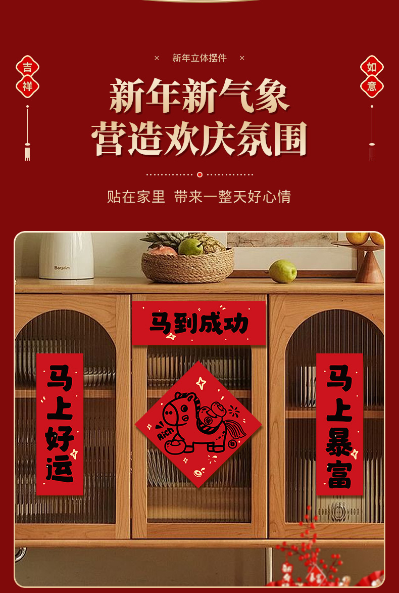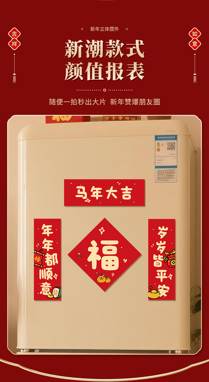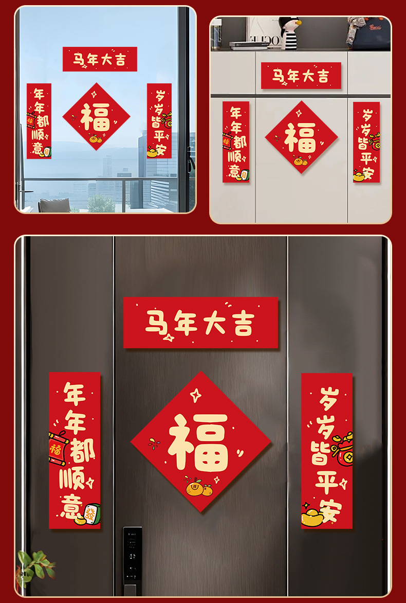 2026新年装饰马年对联春节用品创意生肖春联大门冰箱福字门贴批发