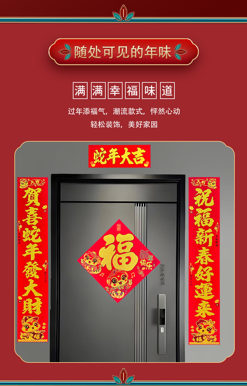 flannel zodiac couplet 2025 snake year high-end new year couplet stickers full adhesive self-adhesive flocking gold powder couplet stickers batch goods