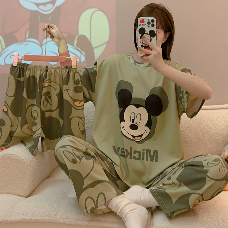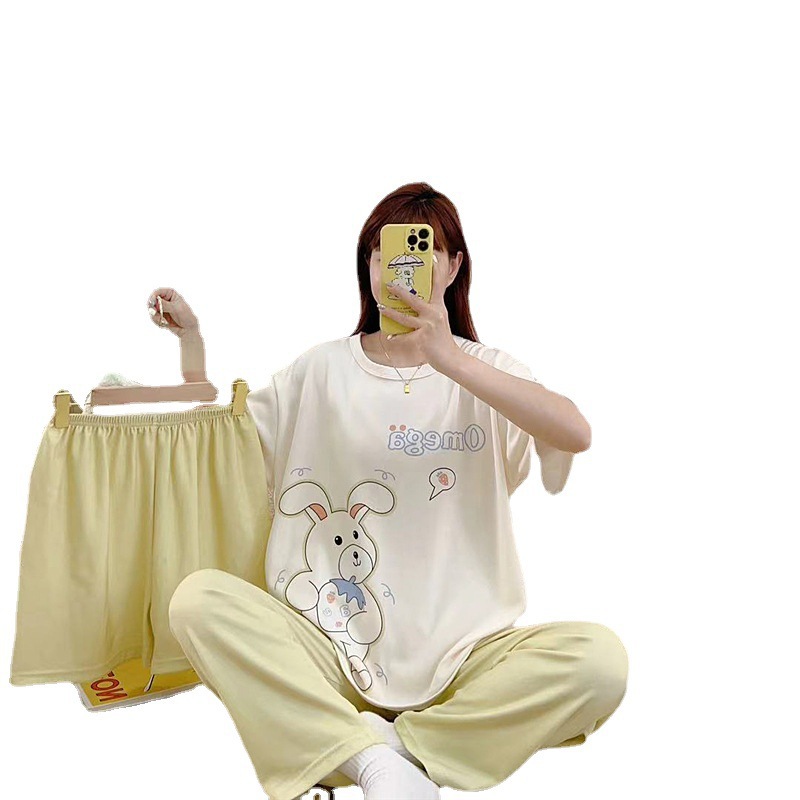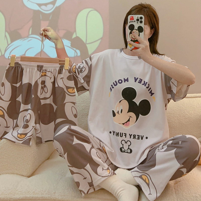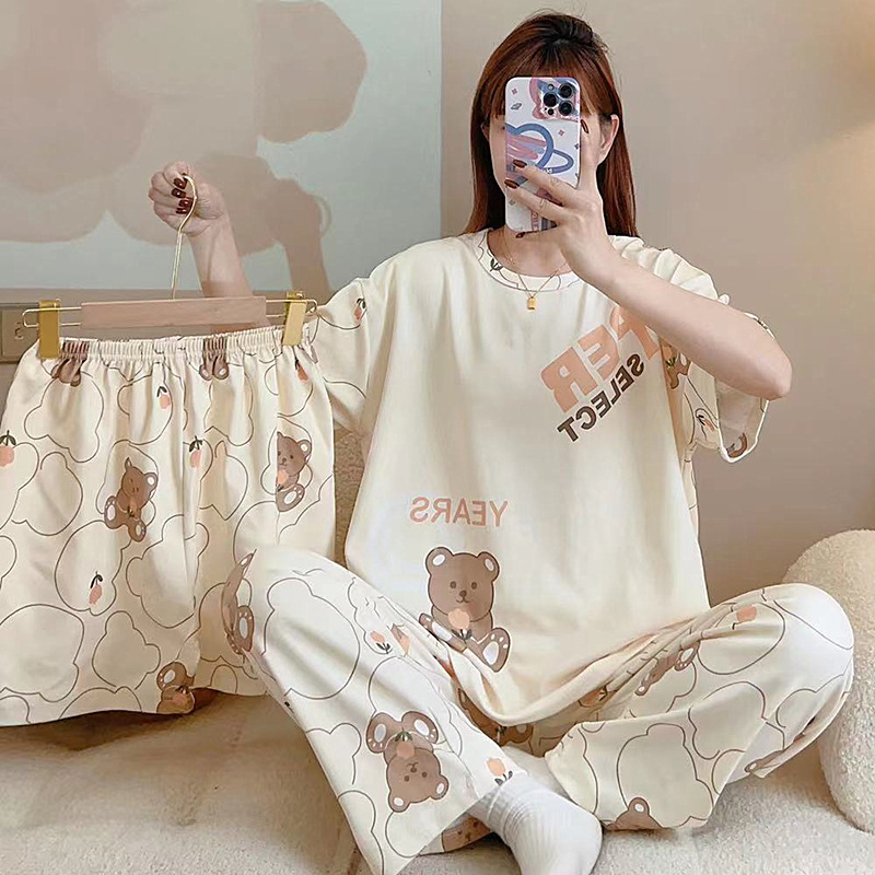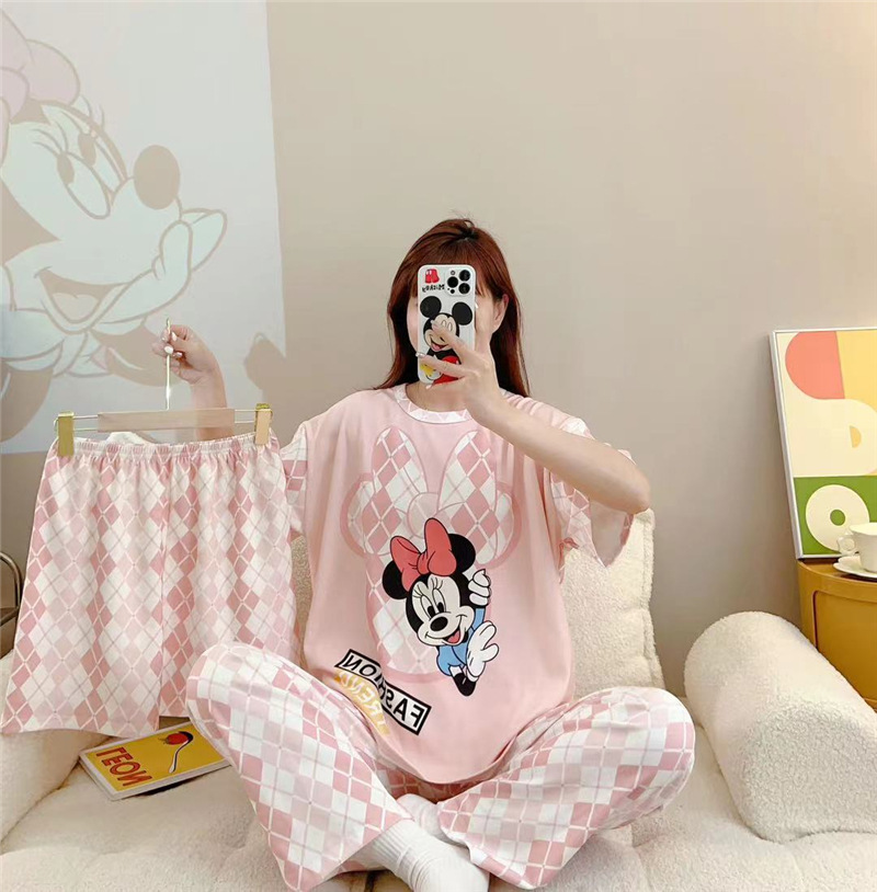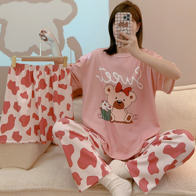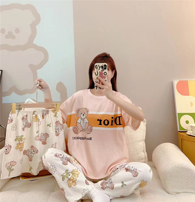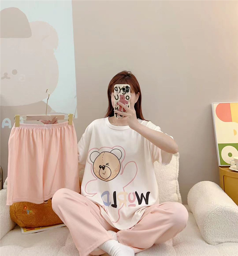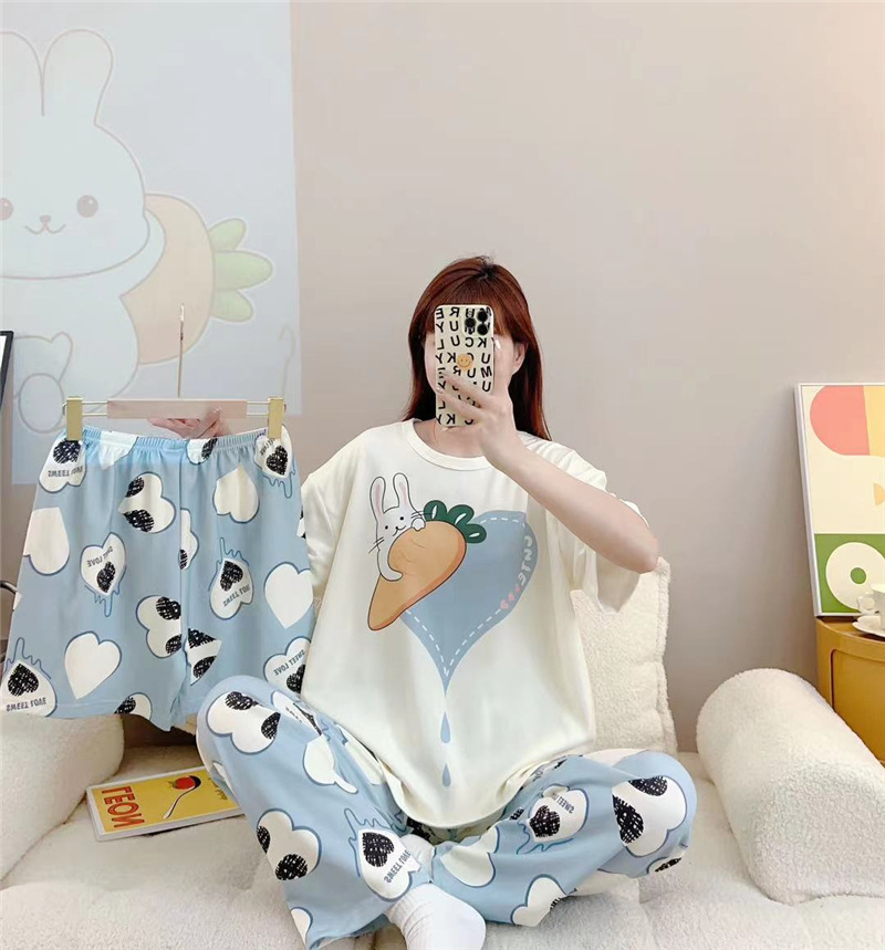 工厂直销睡衣女士三件套可爱卡通短袖套装抖店直播跨境量大优惠