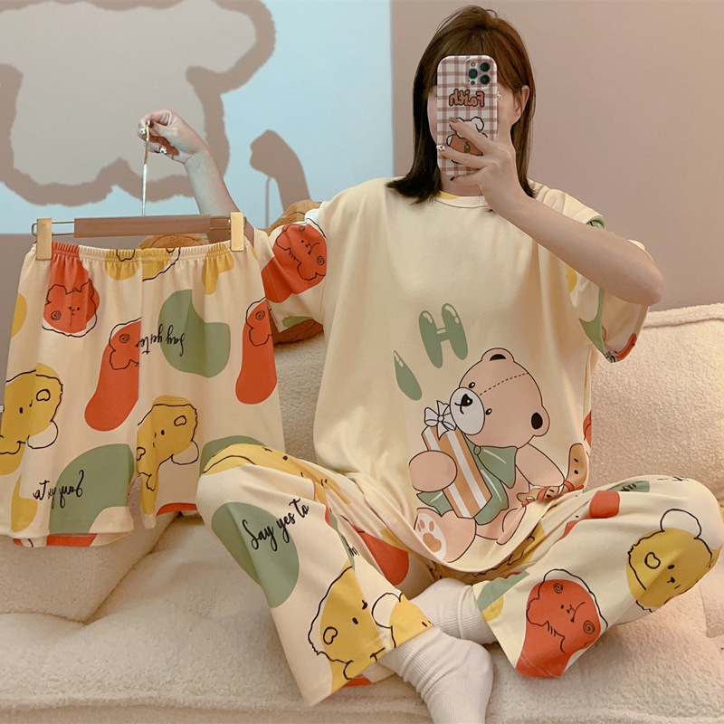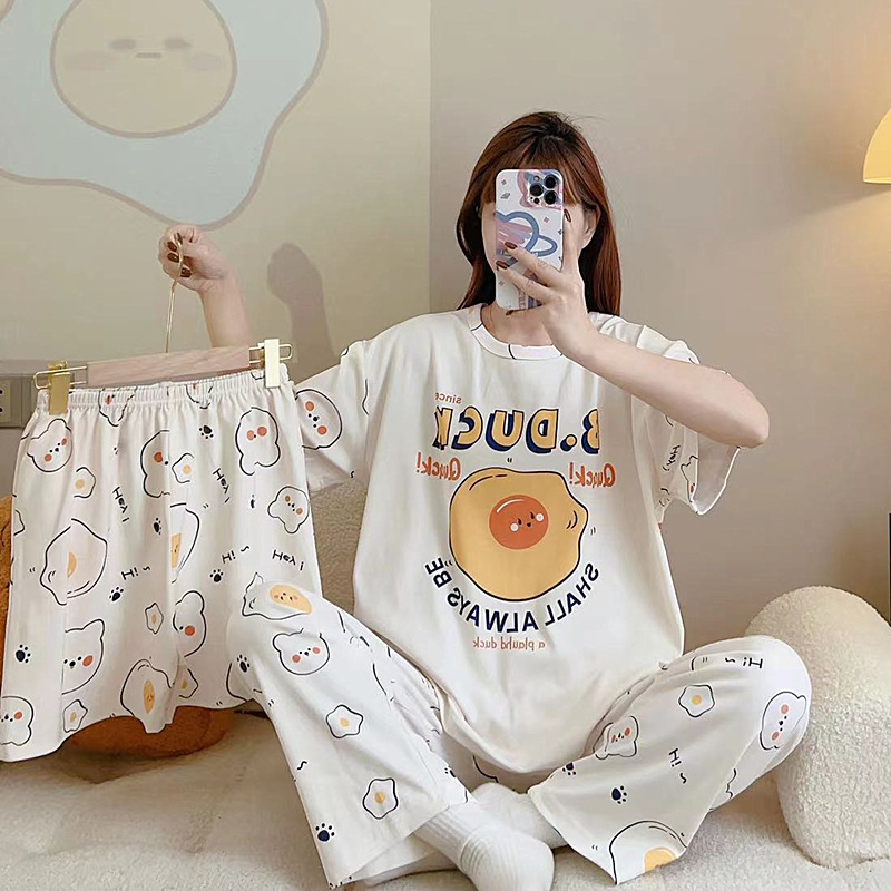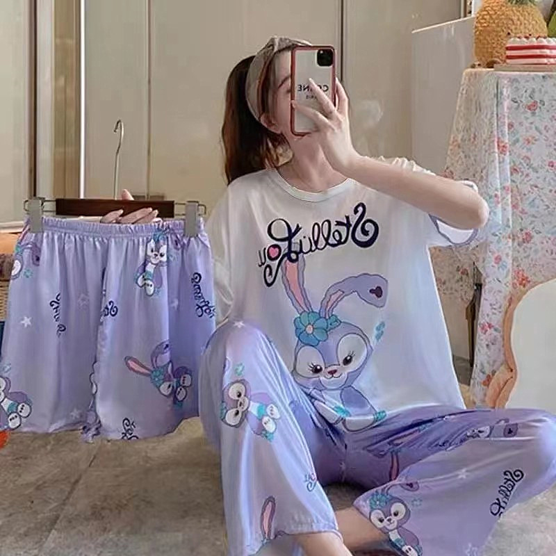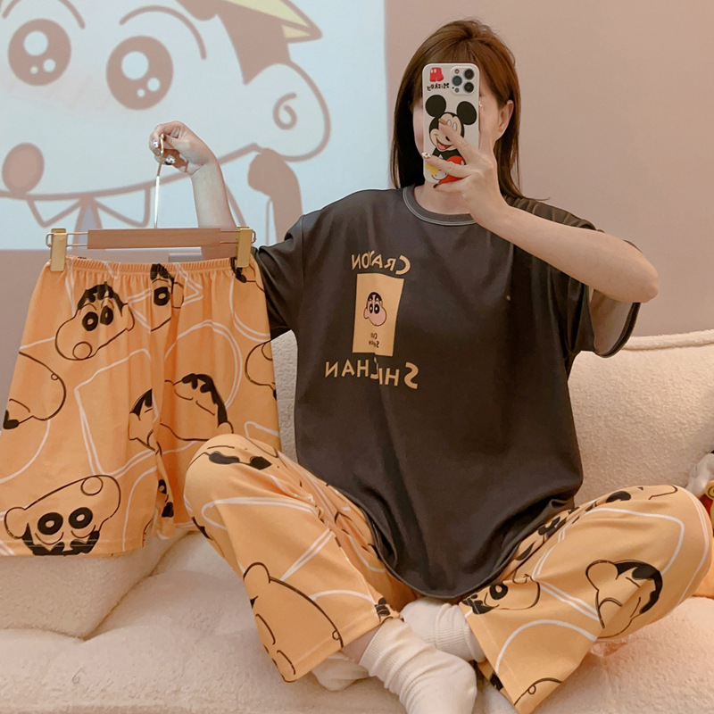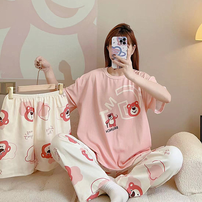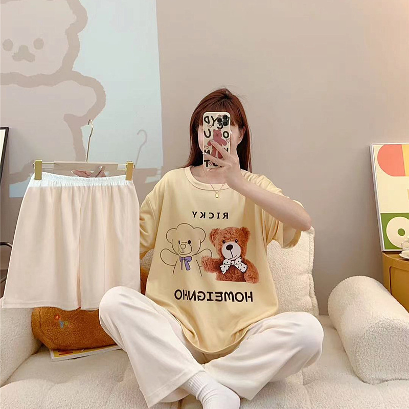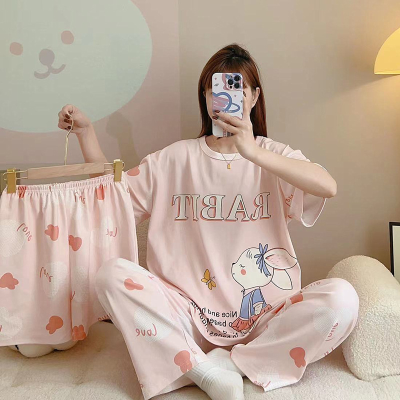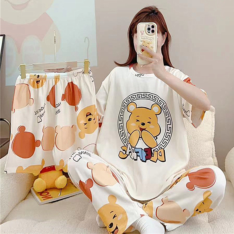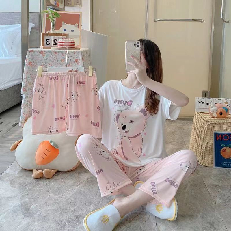 工厂直销睡衣女士三件套可爱卡通短袖套装抖店直播跨境量大优惠