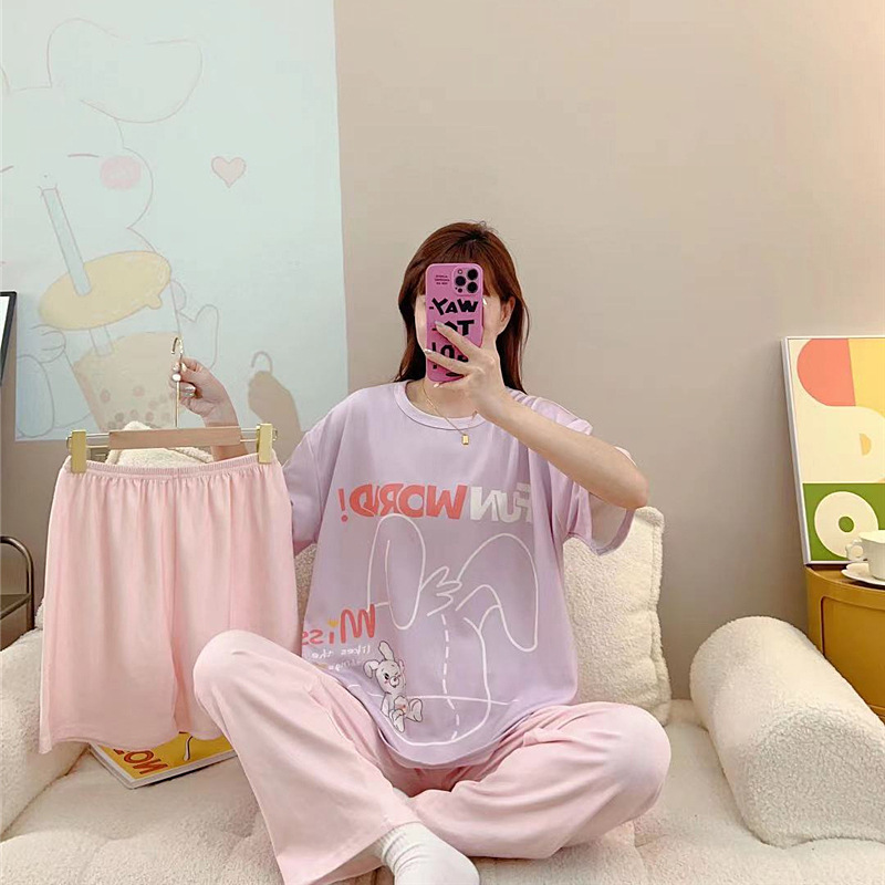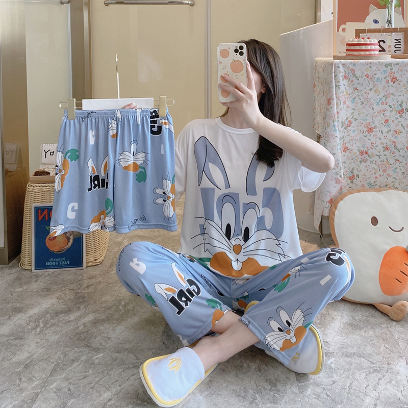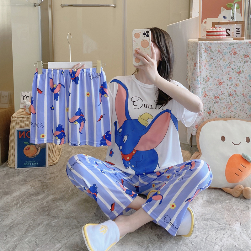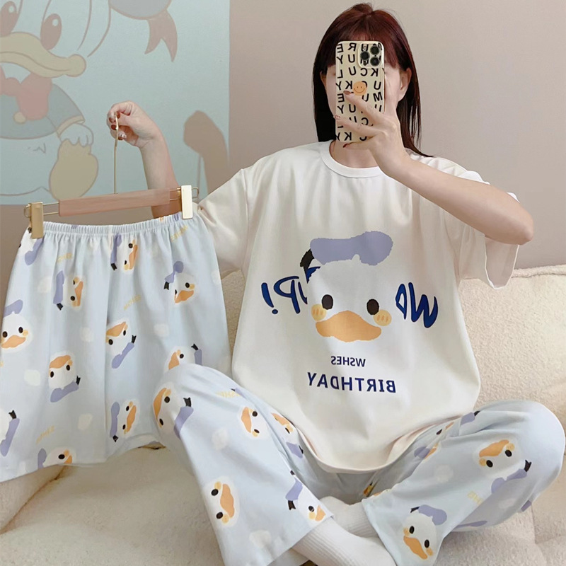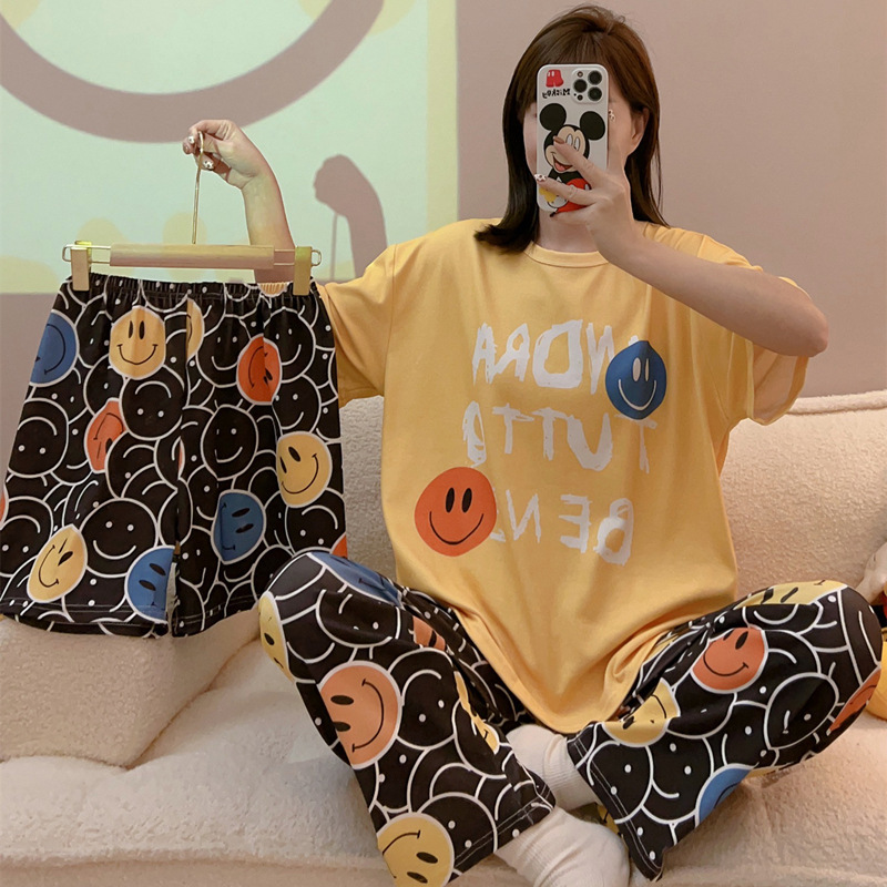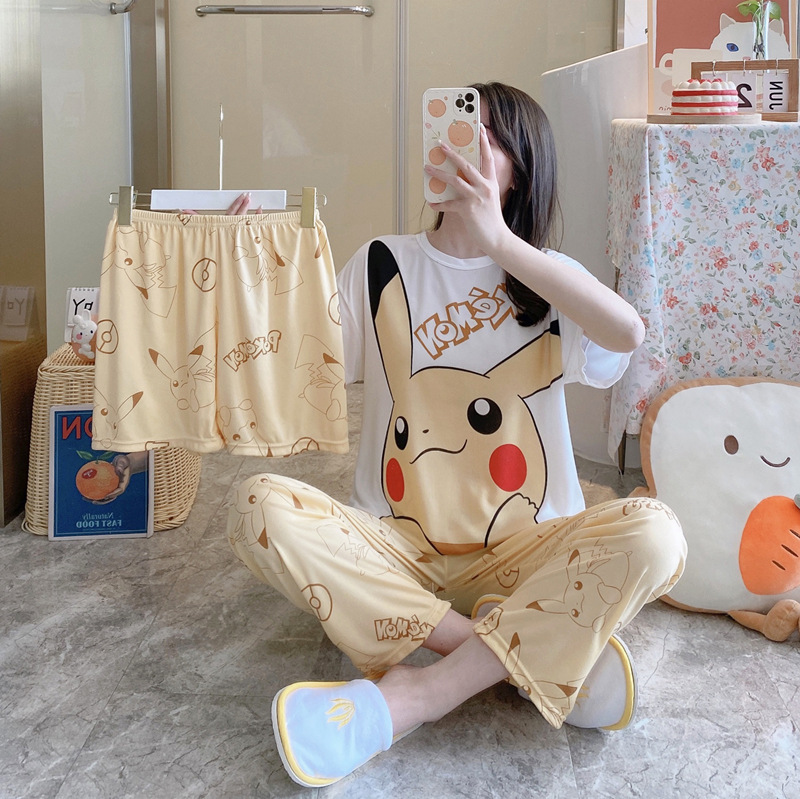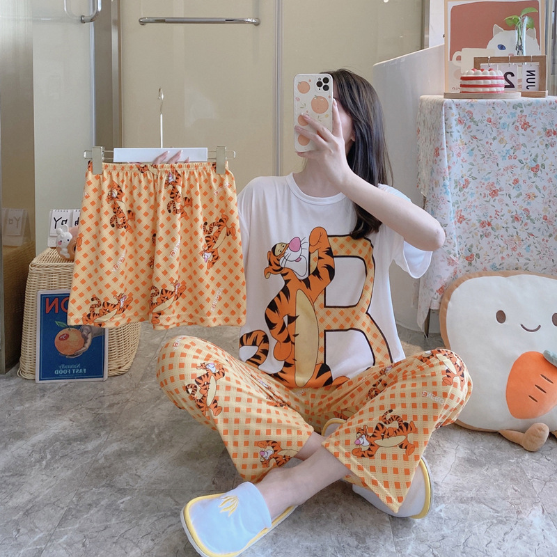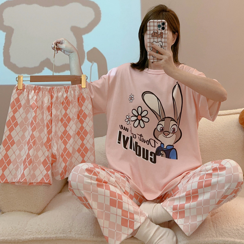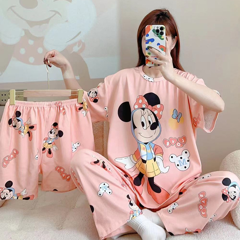 工厂直销睡衣女士三件套可爱卡通短袖套装抖店直播跨境量大优惠