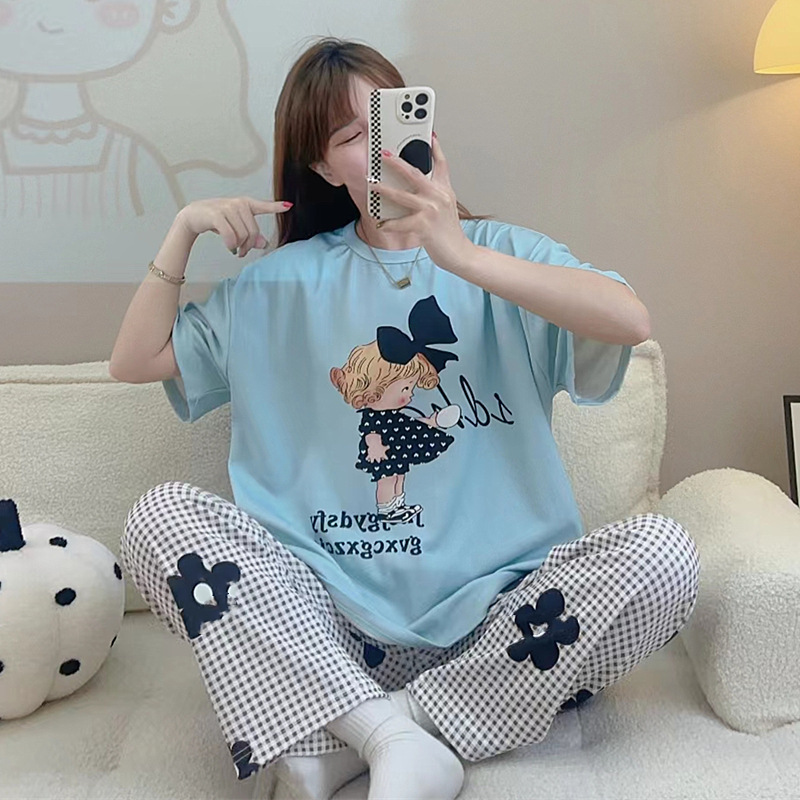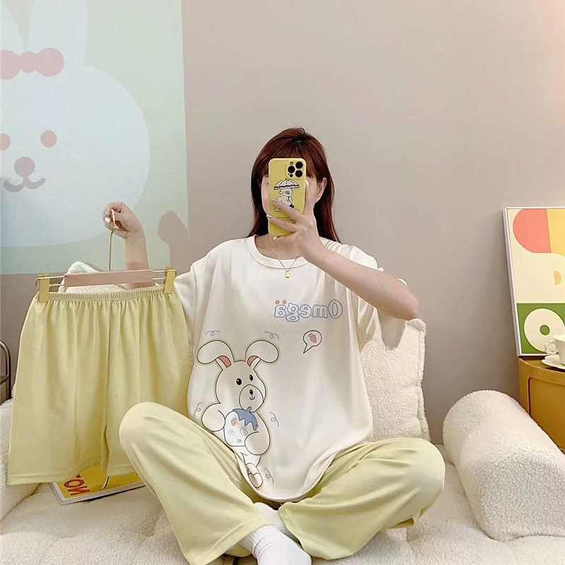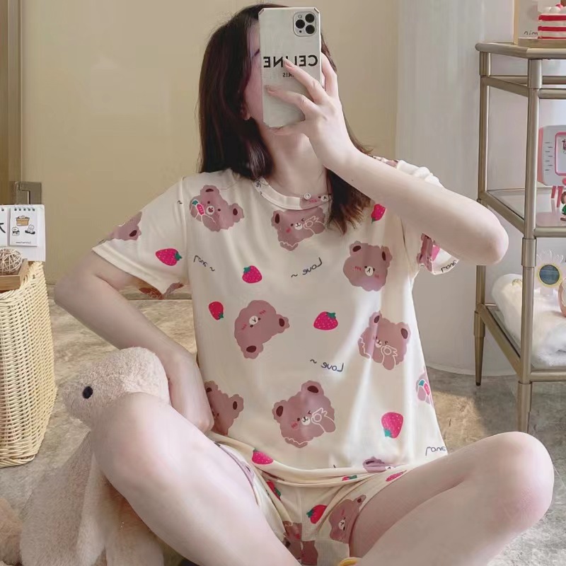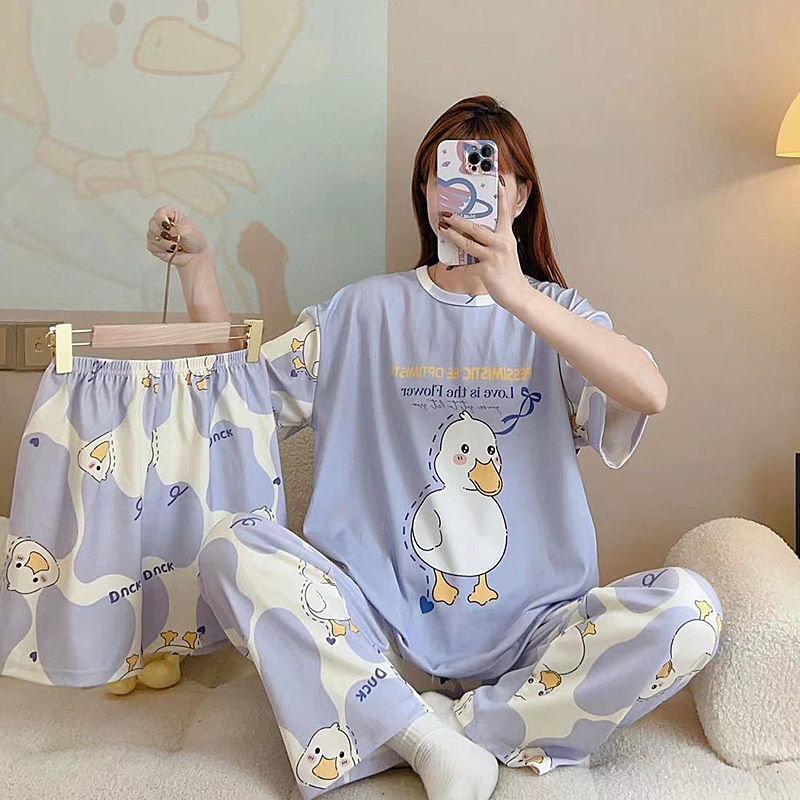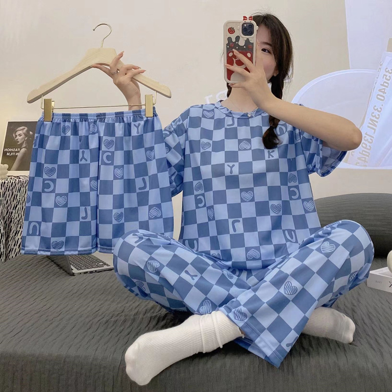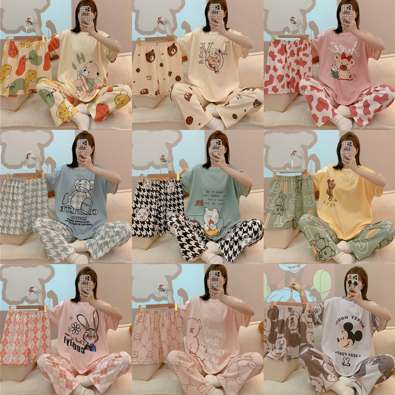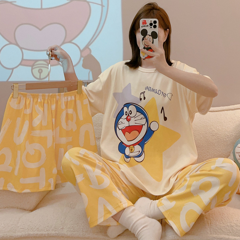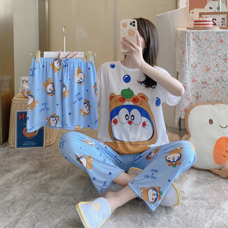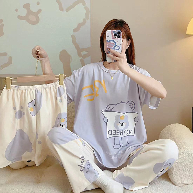 工厂直销睡衣女士三件套可爱卡通短袖套装抖店直播跨境量大优惠