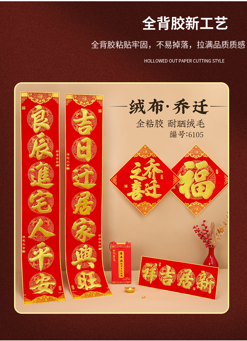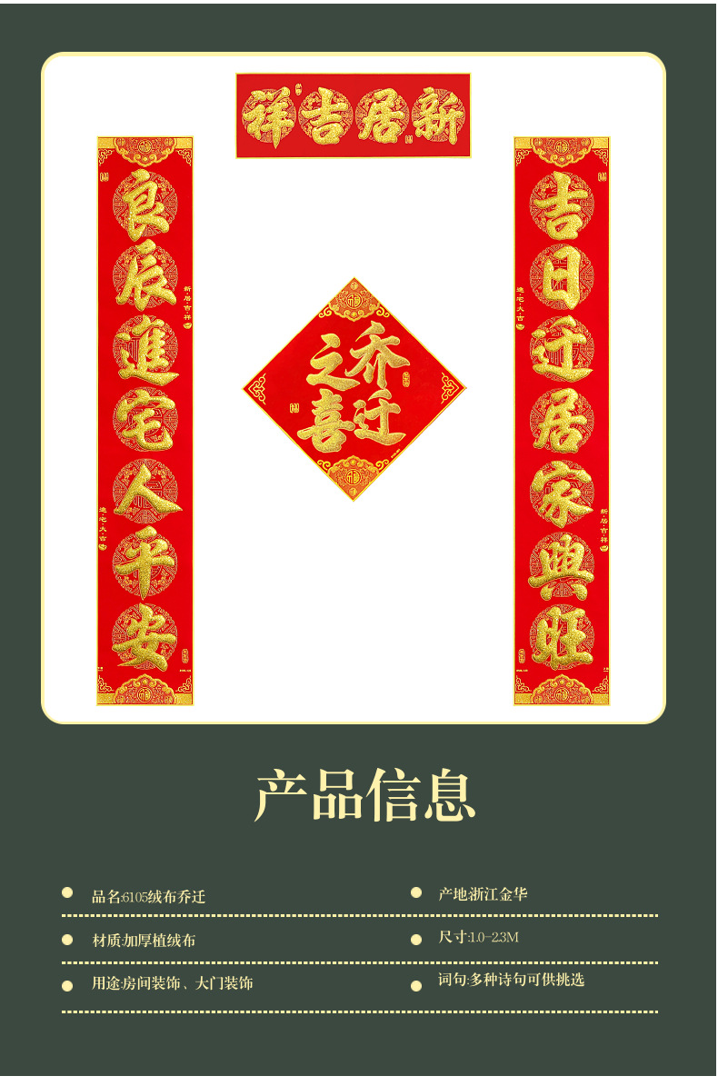 新房搬家对联乔迁之喜门贴绒布喜联烫金入宅大吉入伙新居门联入户