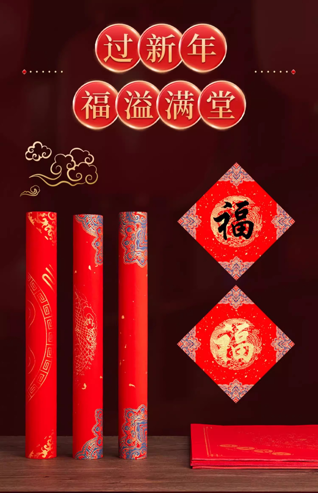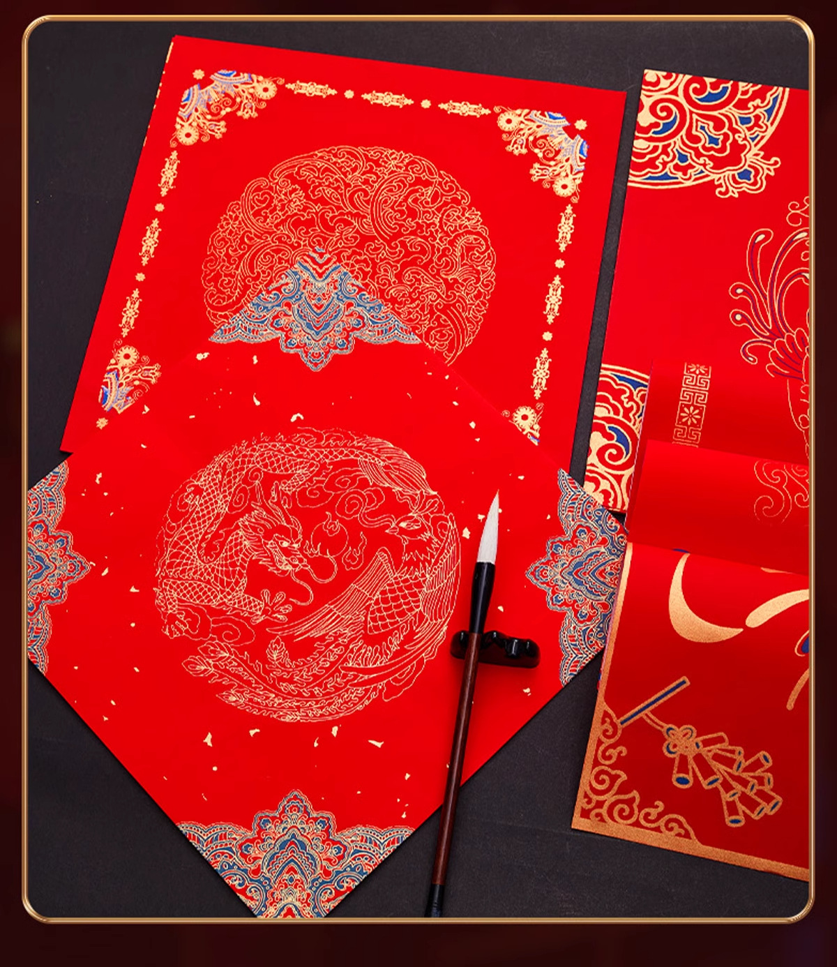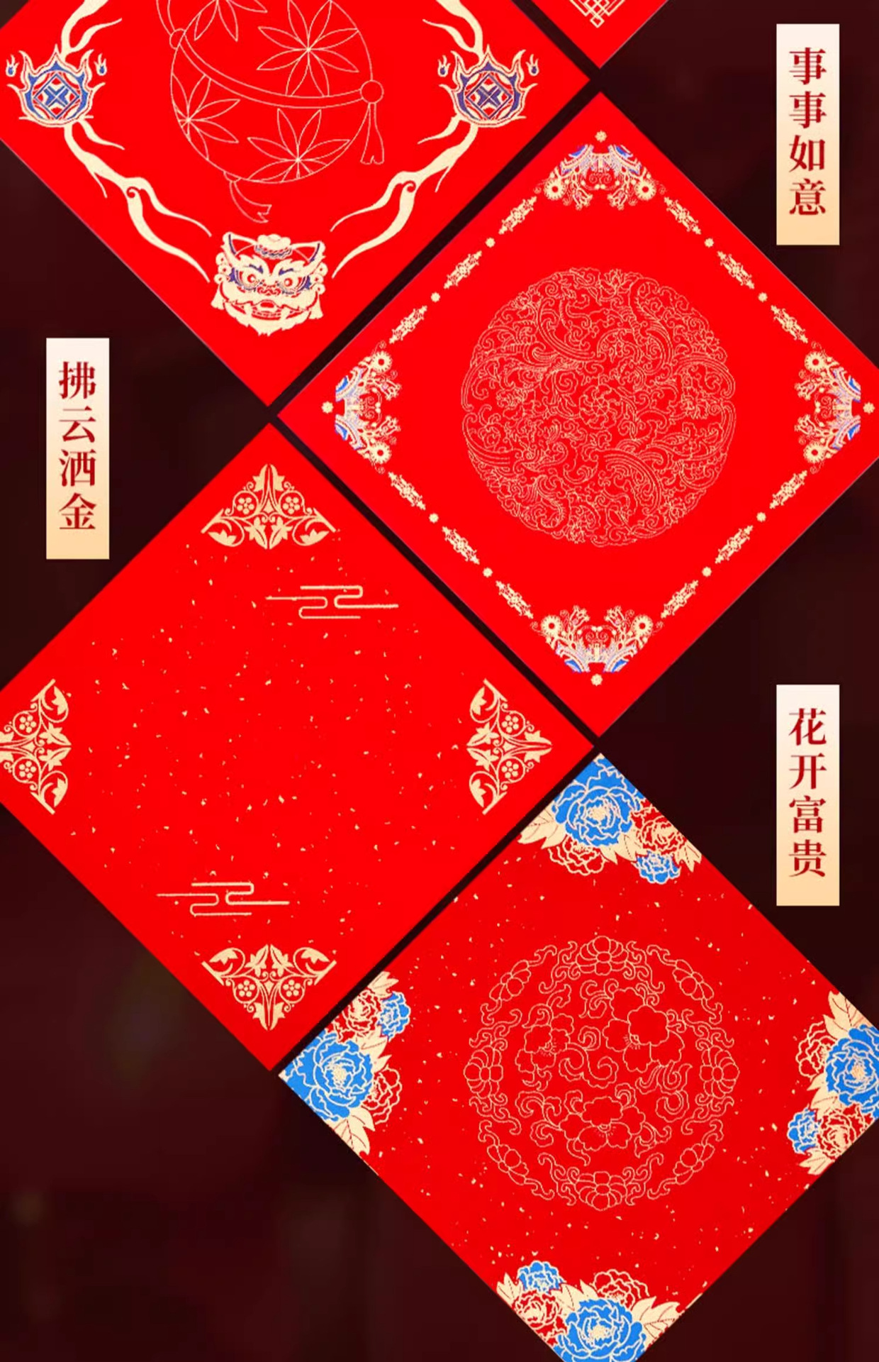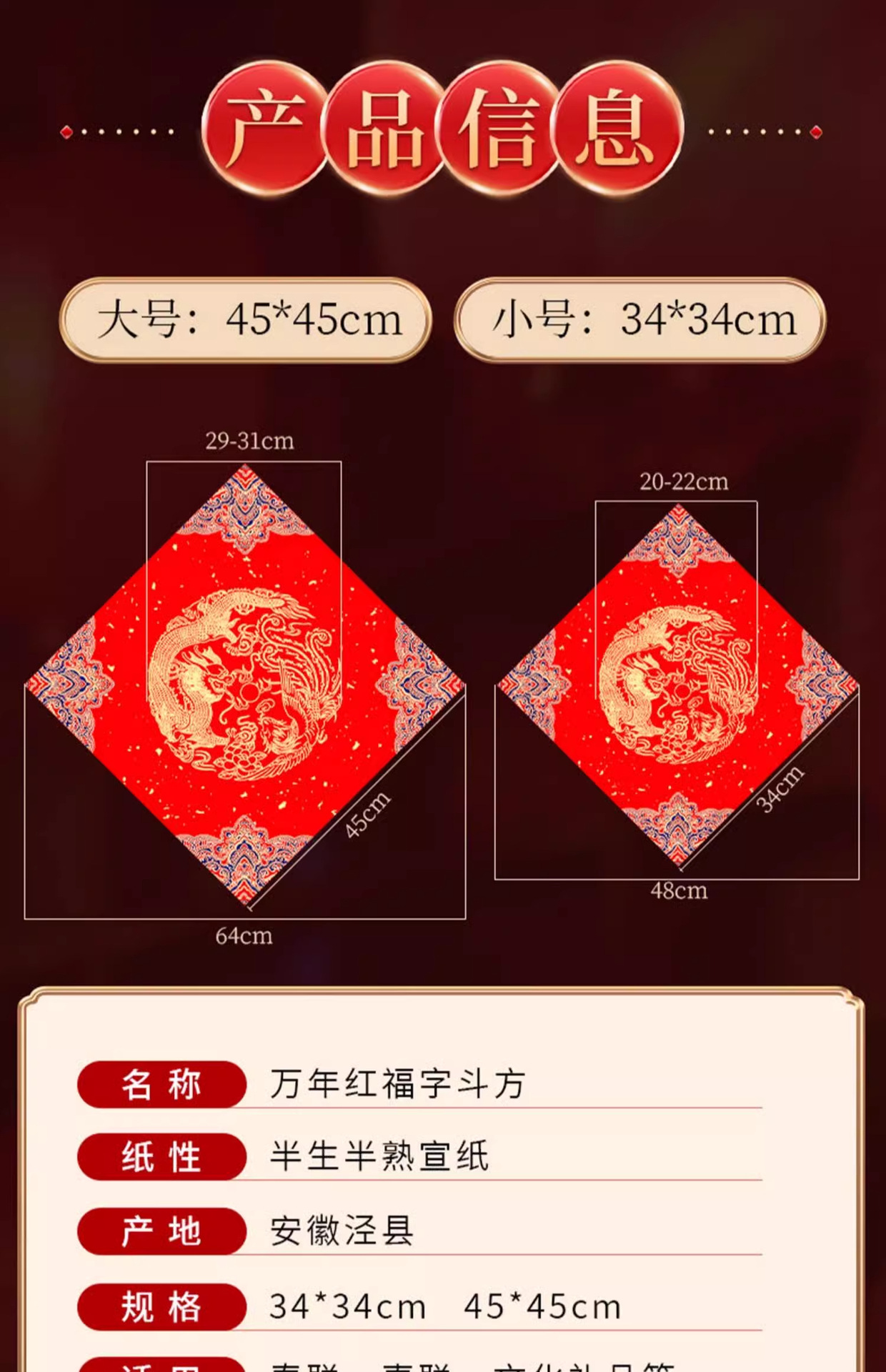 蜡染斗方宣纸龙凤万年红对联春联半生熟手写福字空白万年红批发