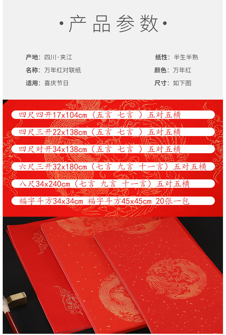 万年红 2024年春节对联龙年手写大门春联 宣纸洒金对联纸批发年货