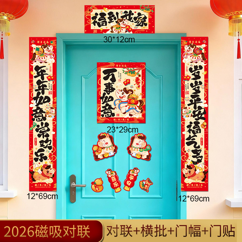 马年磁吸对联2026年春节创意卡通福字春联过新年入户门铁门装饰