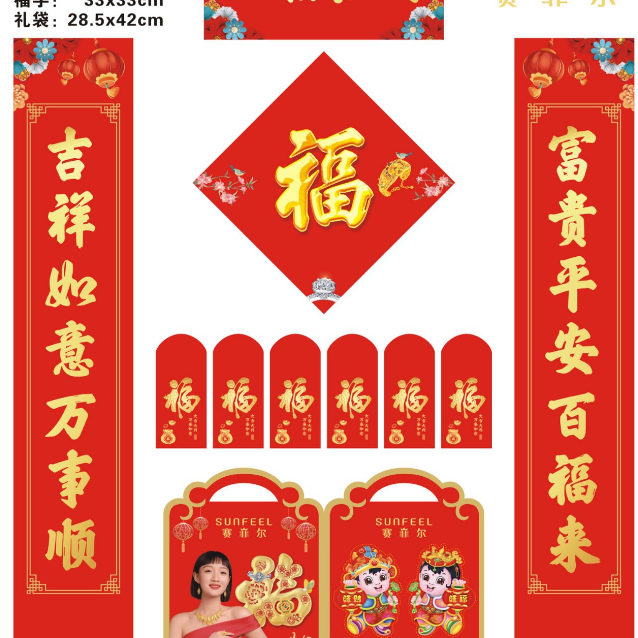 马年广告对联批发梦金园福字对制定专版珠宝大礼包春联送金童玉女