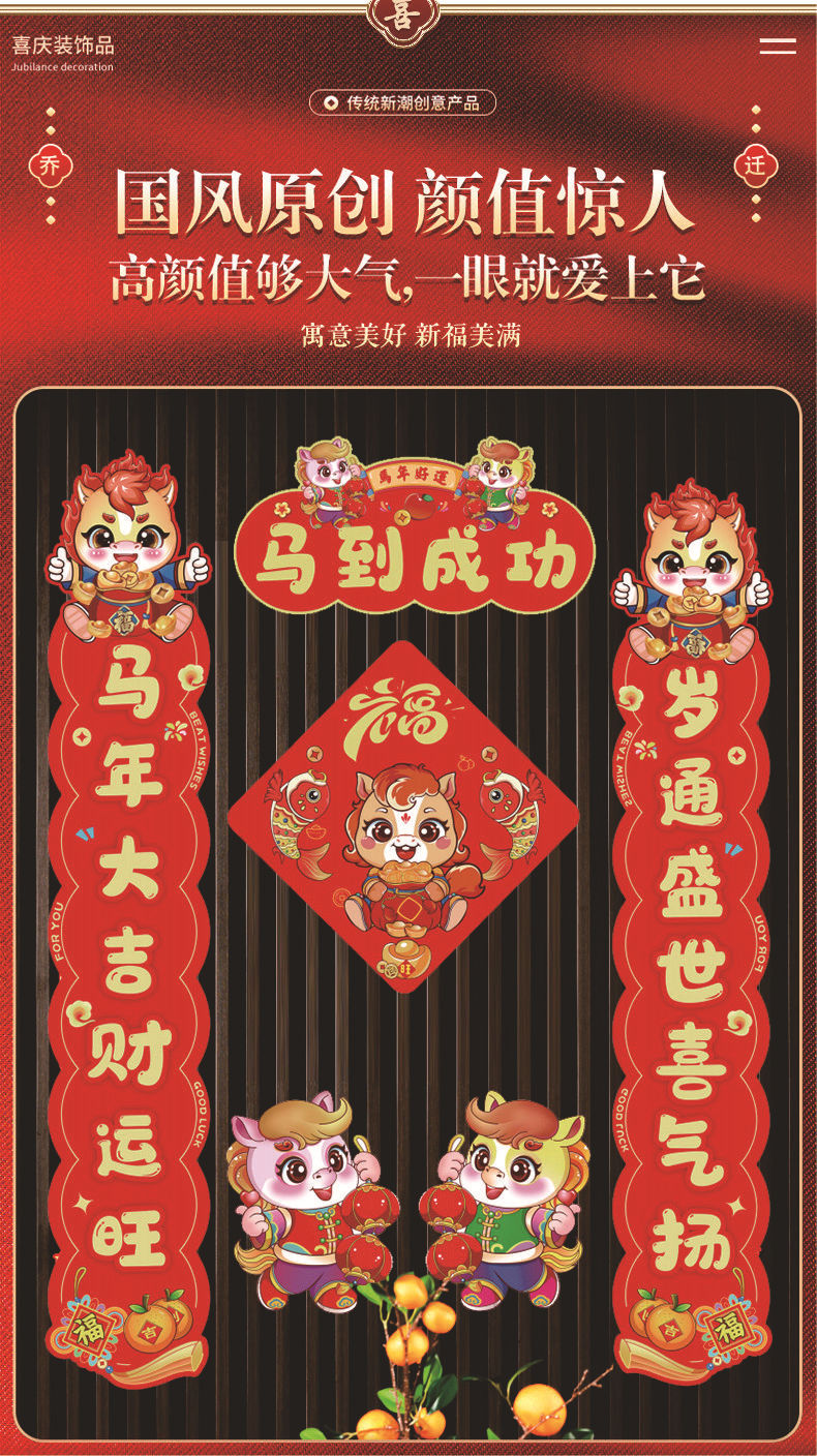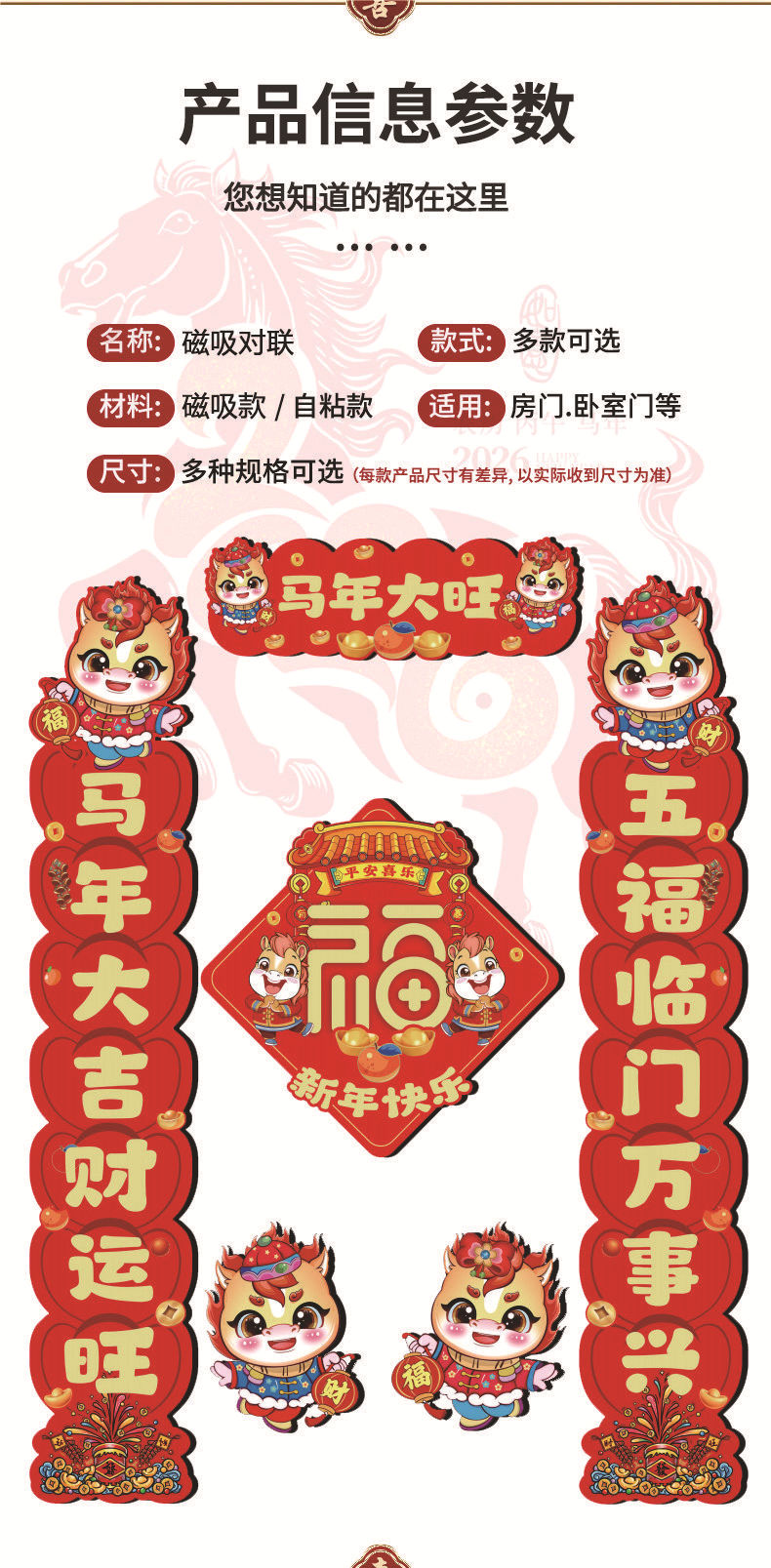磁吸对联 2026马年新款新年春联无痕入户门套装福字装饰创意门贴