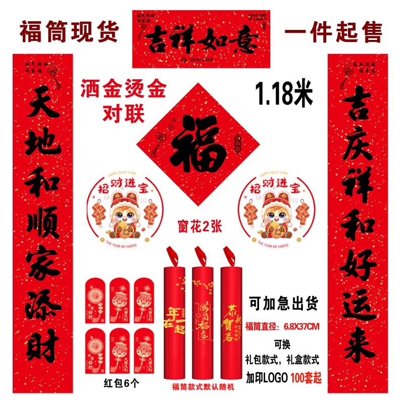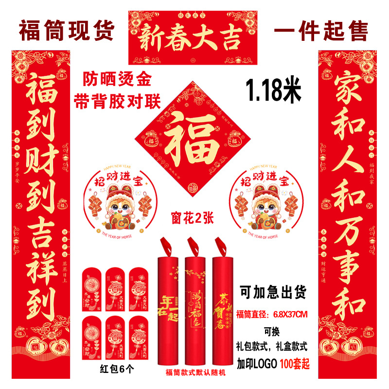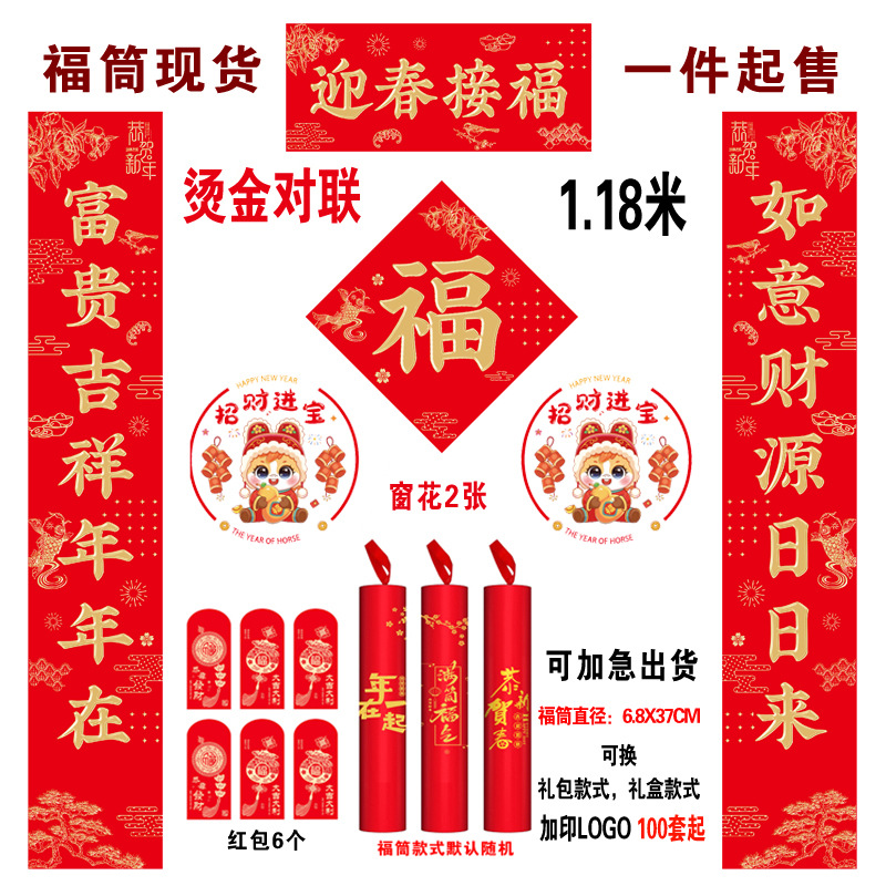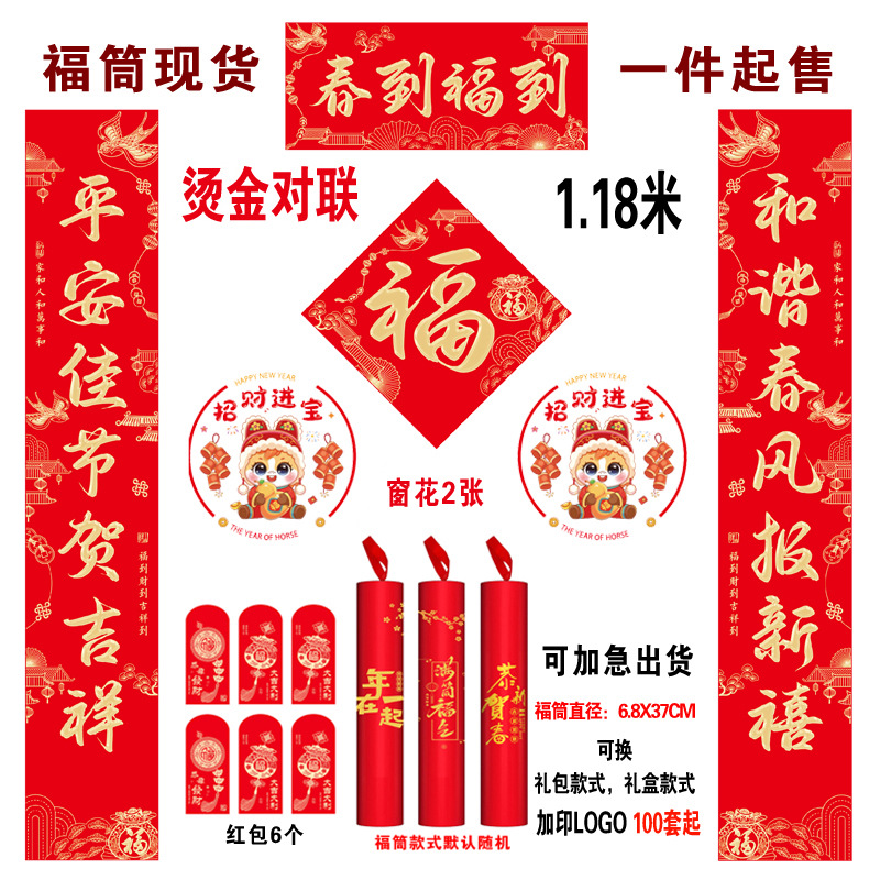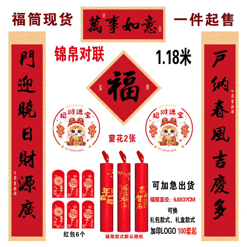 2026广告对联定制马年烫金高档礼盒现货春联福字大礼包定做印logo