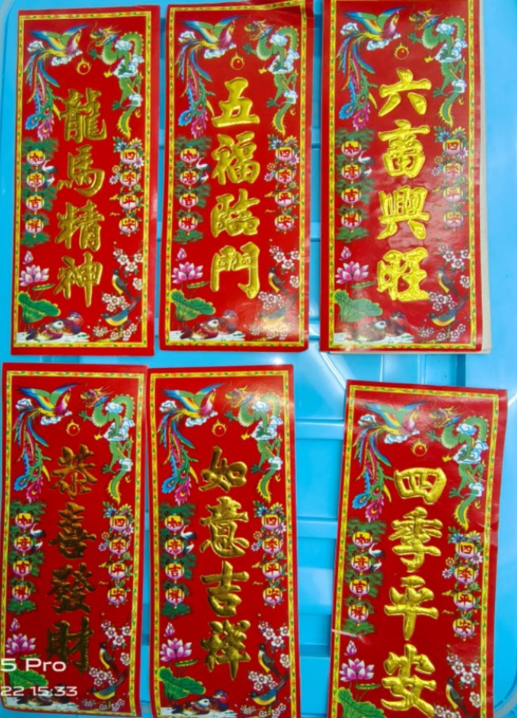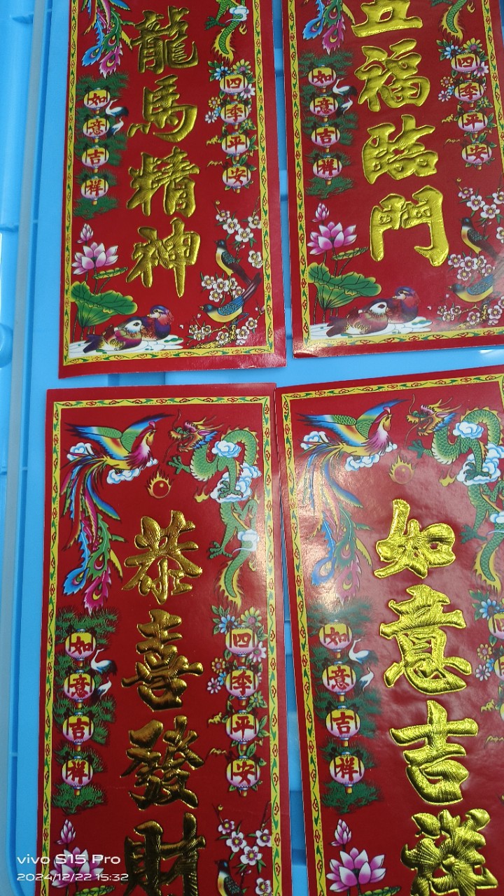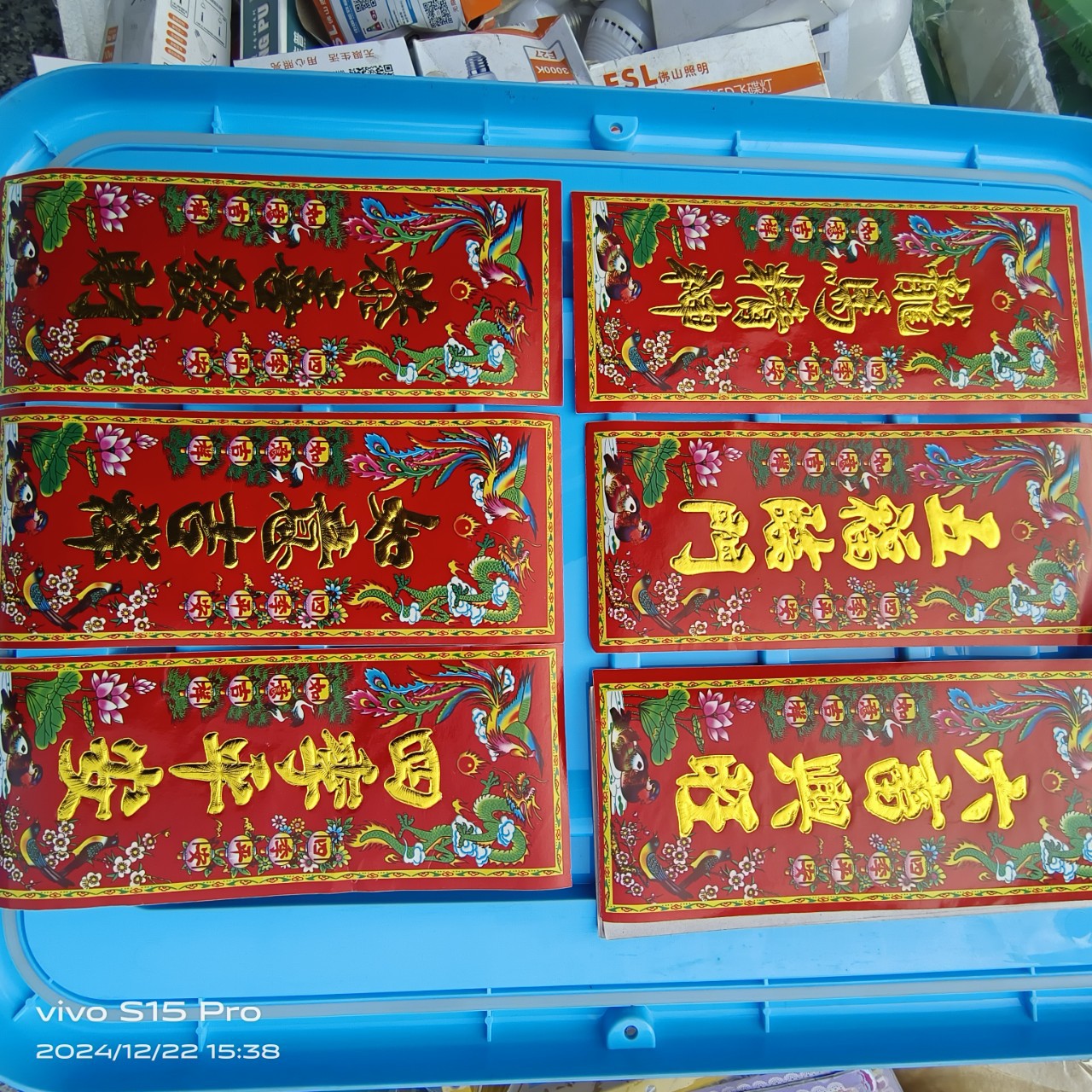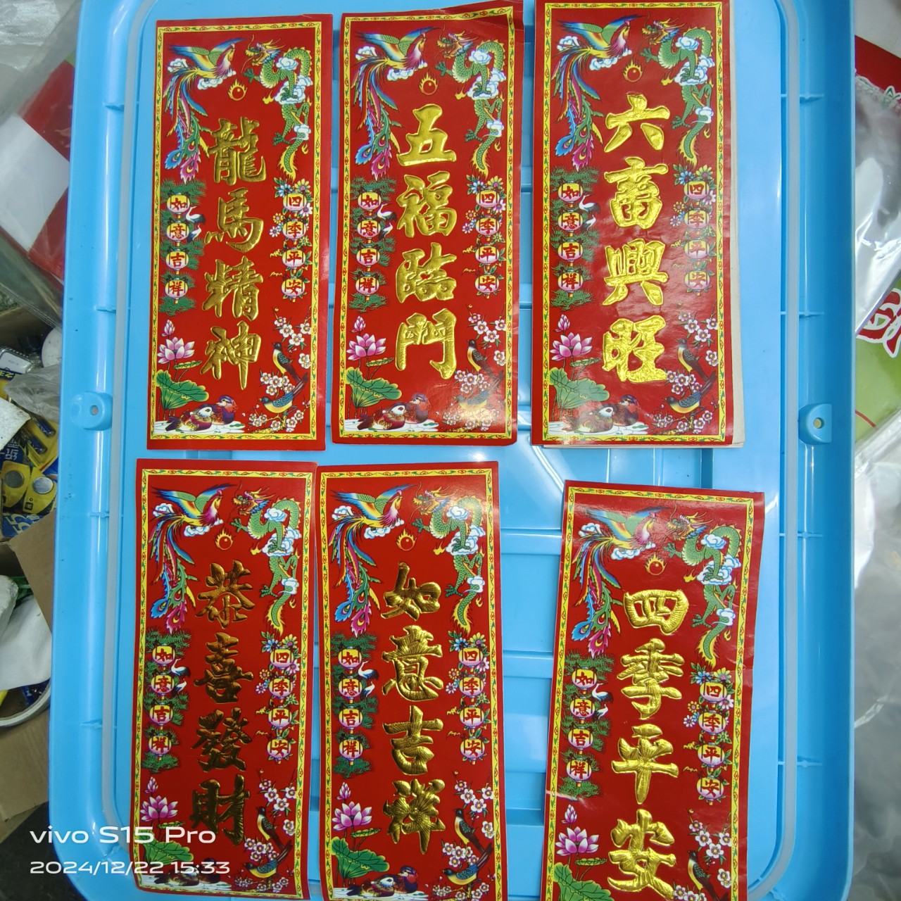 2025年挥春条春节珲春利是新款门贴四字竖款花边对子对联彩色春联