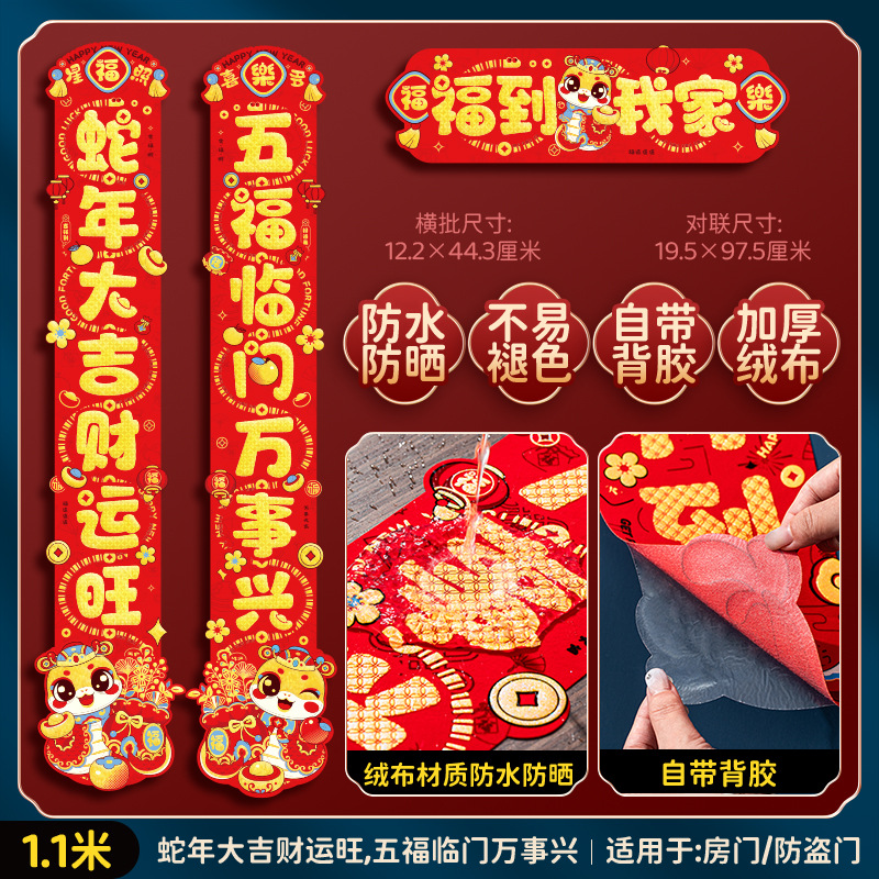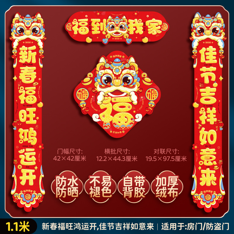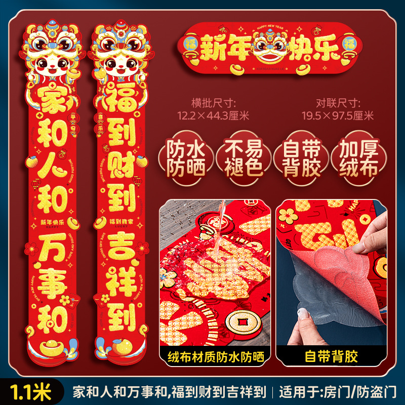 马年对联春节家用高档卡通绒布春联2026新款过年新年福字大门装饰