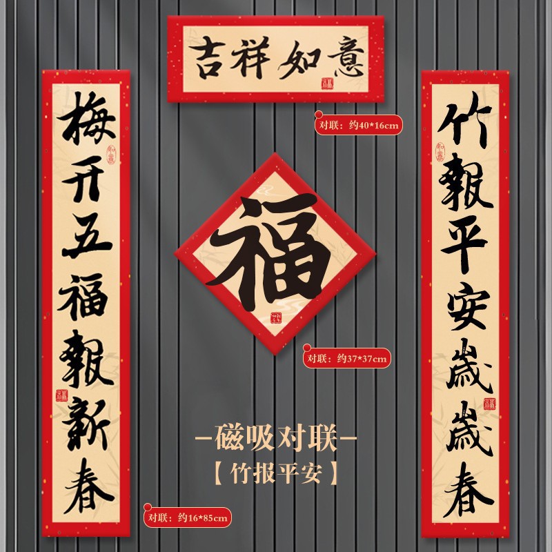 2026中式马年磁吸对联春节过年入户防盗门贴书法福字装饰新年春联
