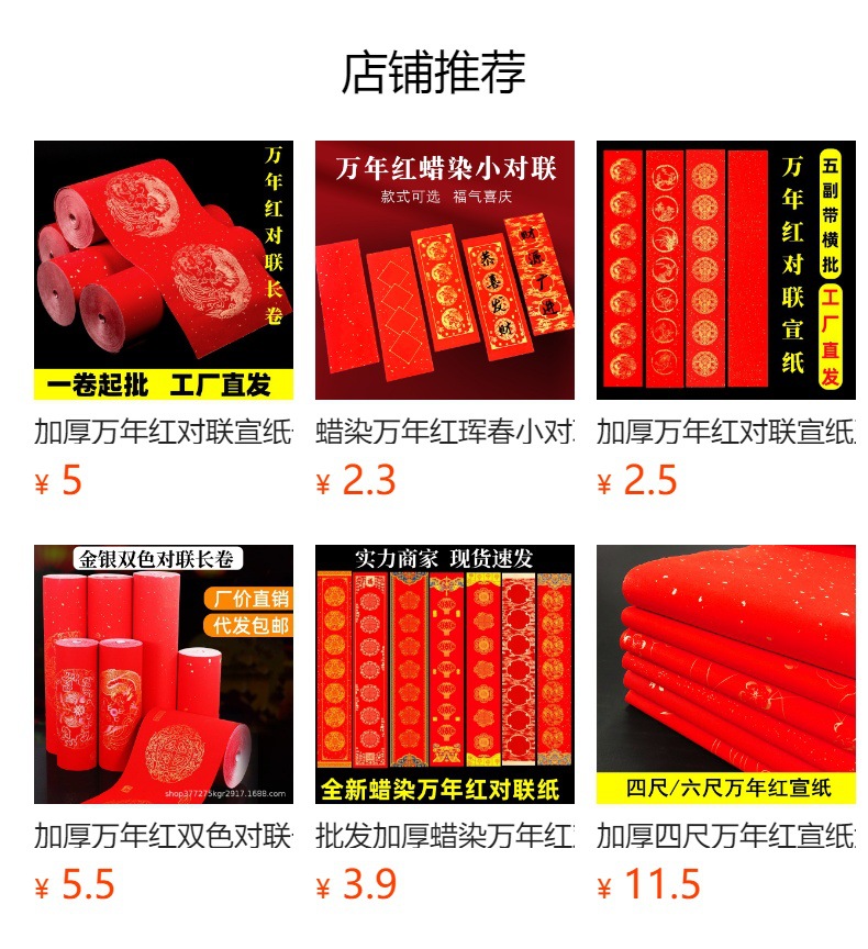 加厚蜡染万年红福字斗方对联纸空白春联红纸手写福字宣纸洒金门贴